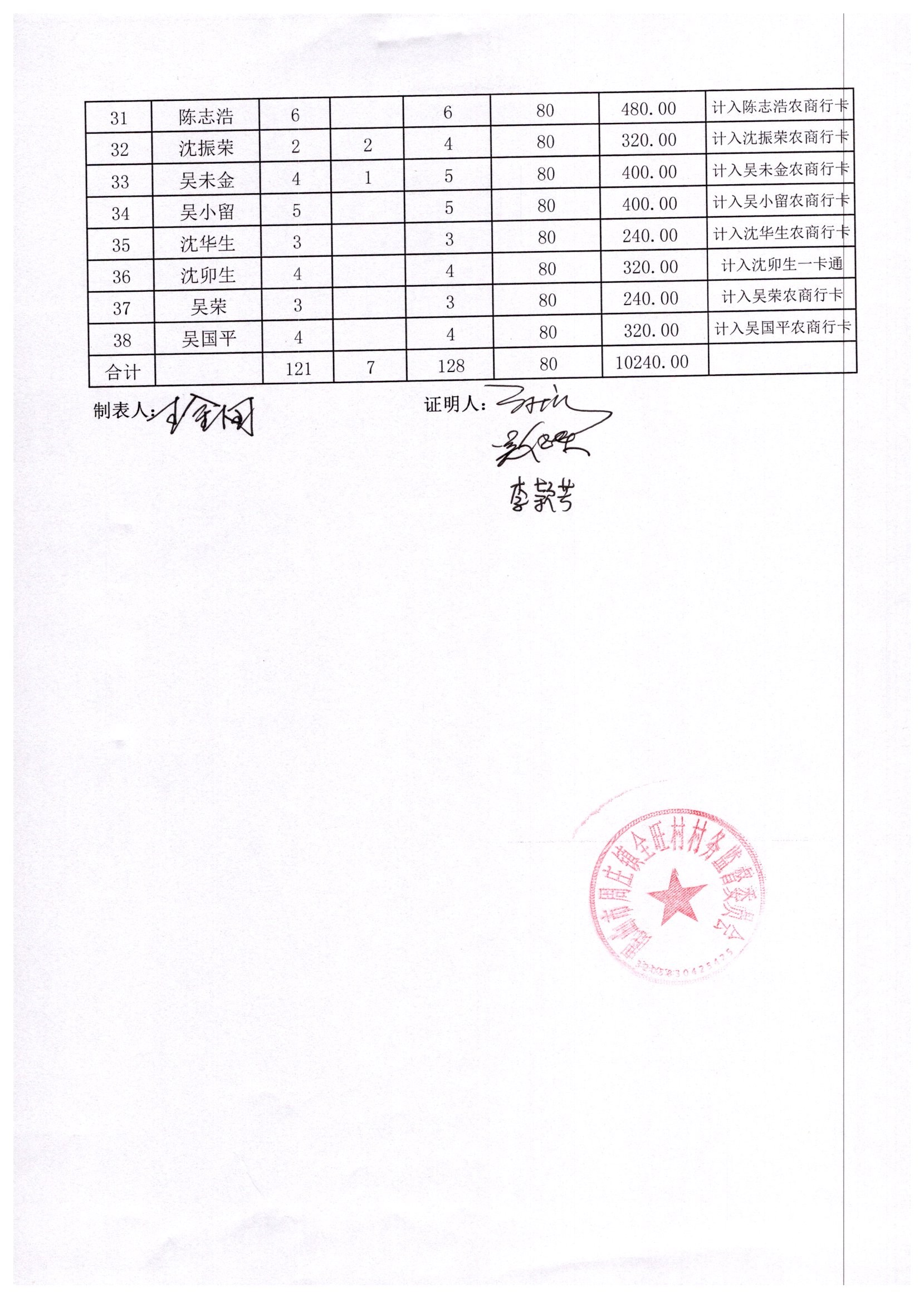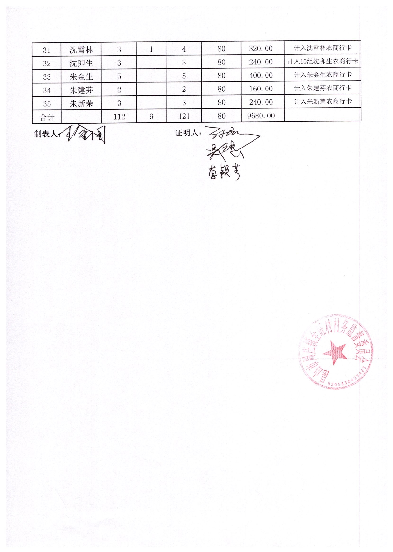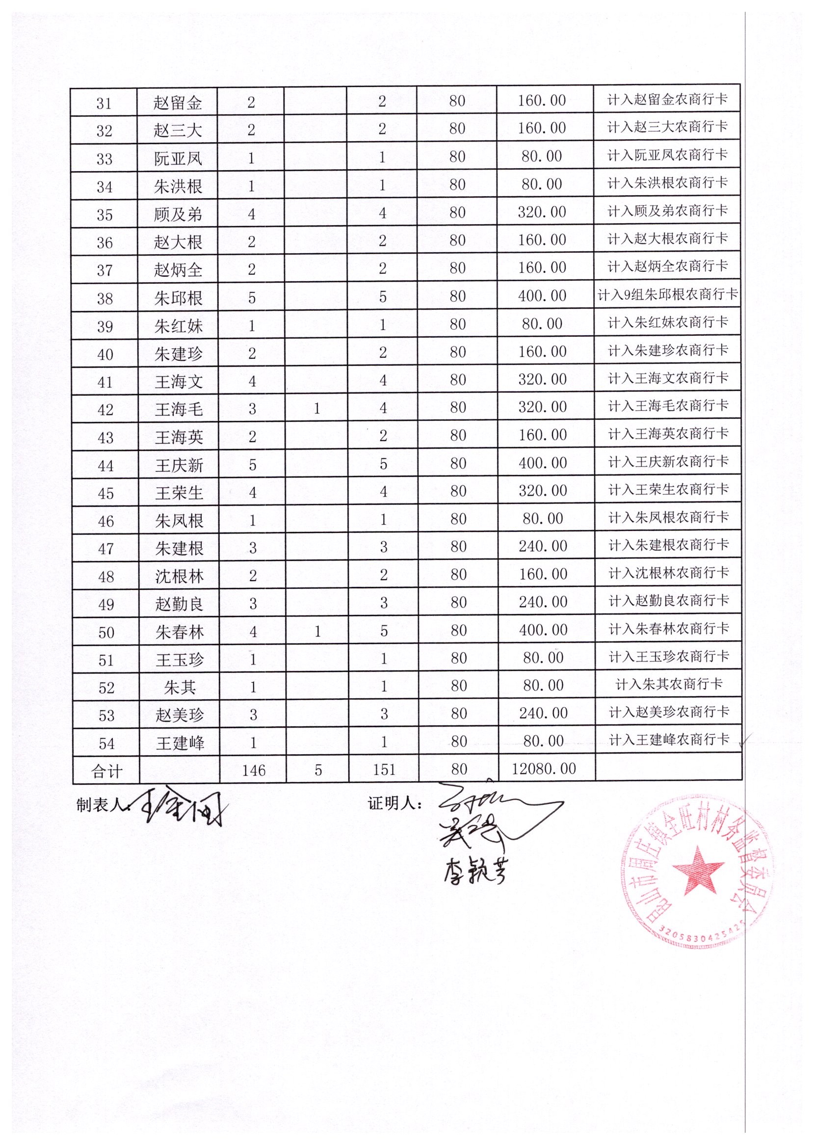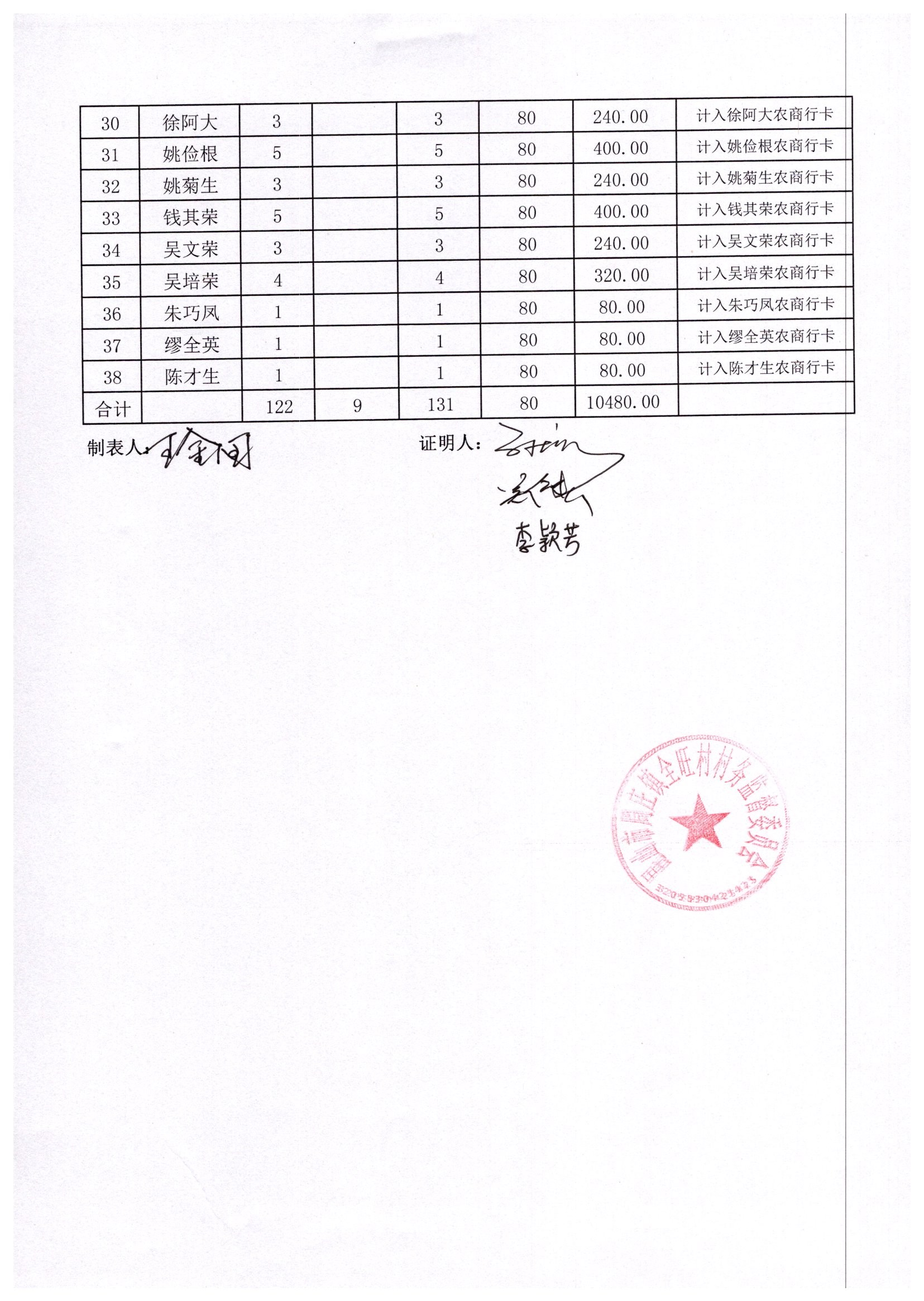 村盖章事项名录