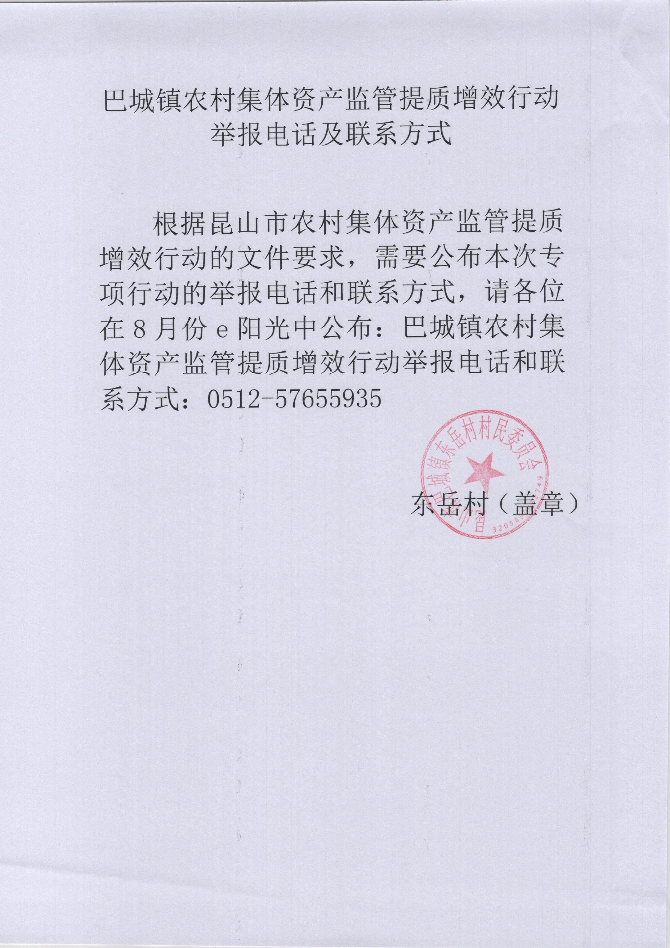 巴城镇农村集体资产监管提质增效行动举报电话及联系方式