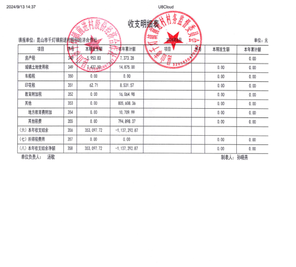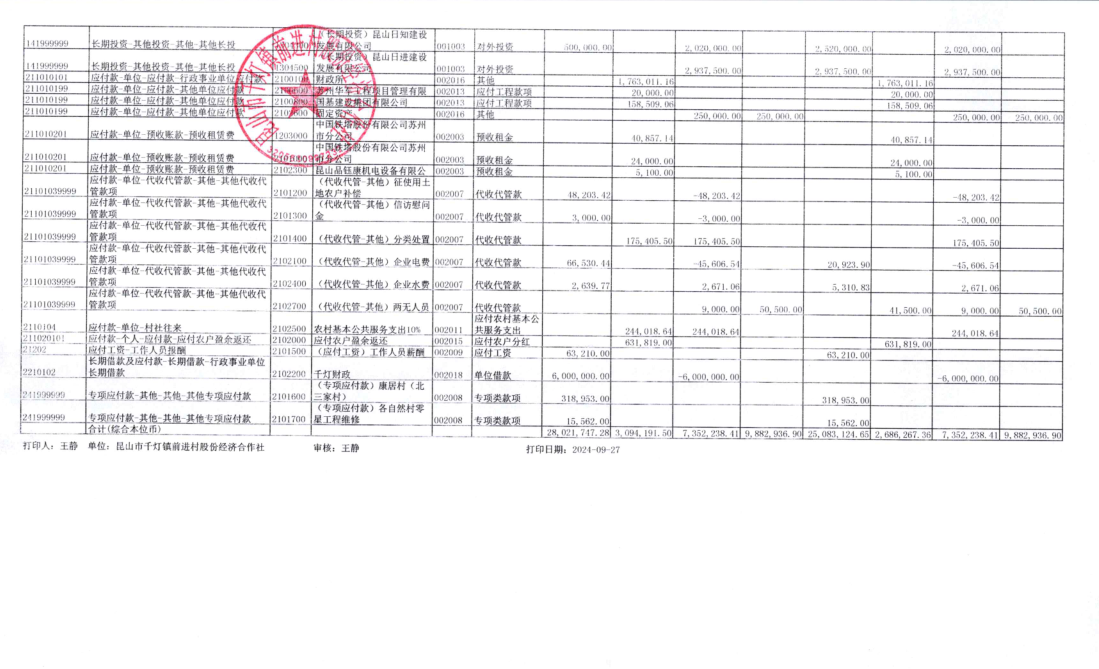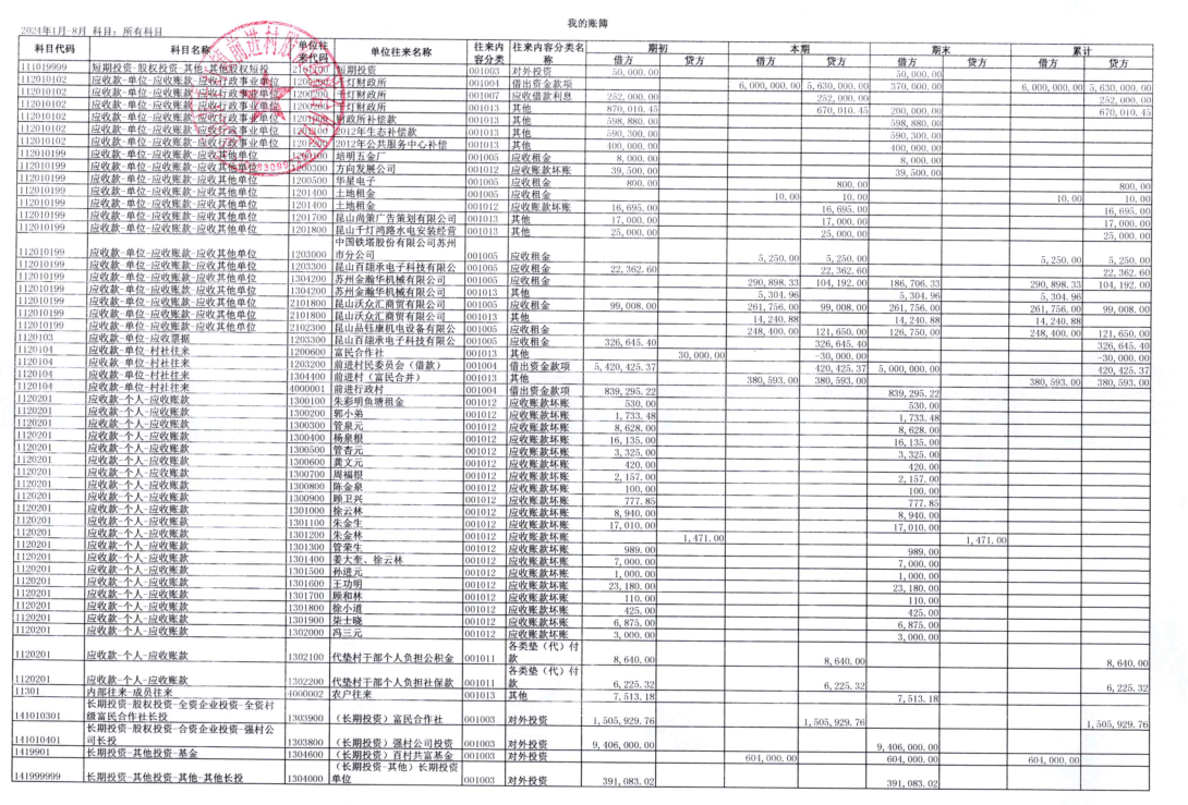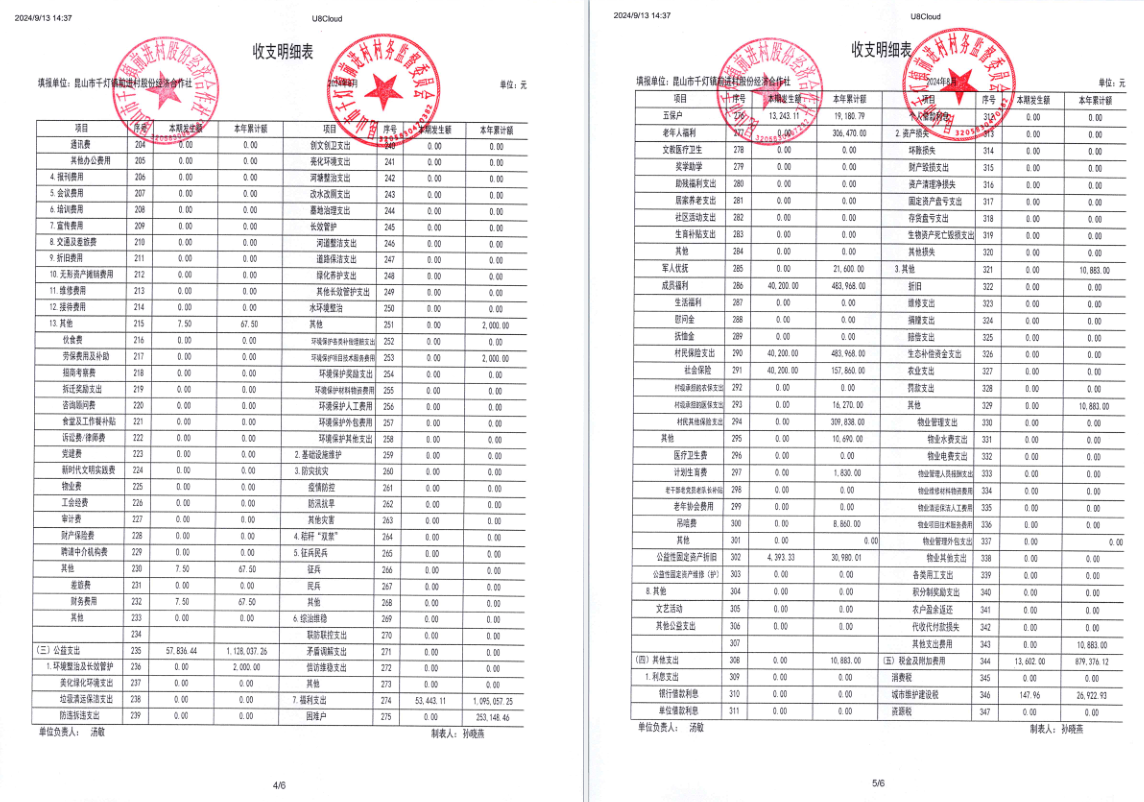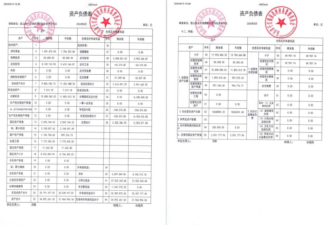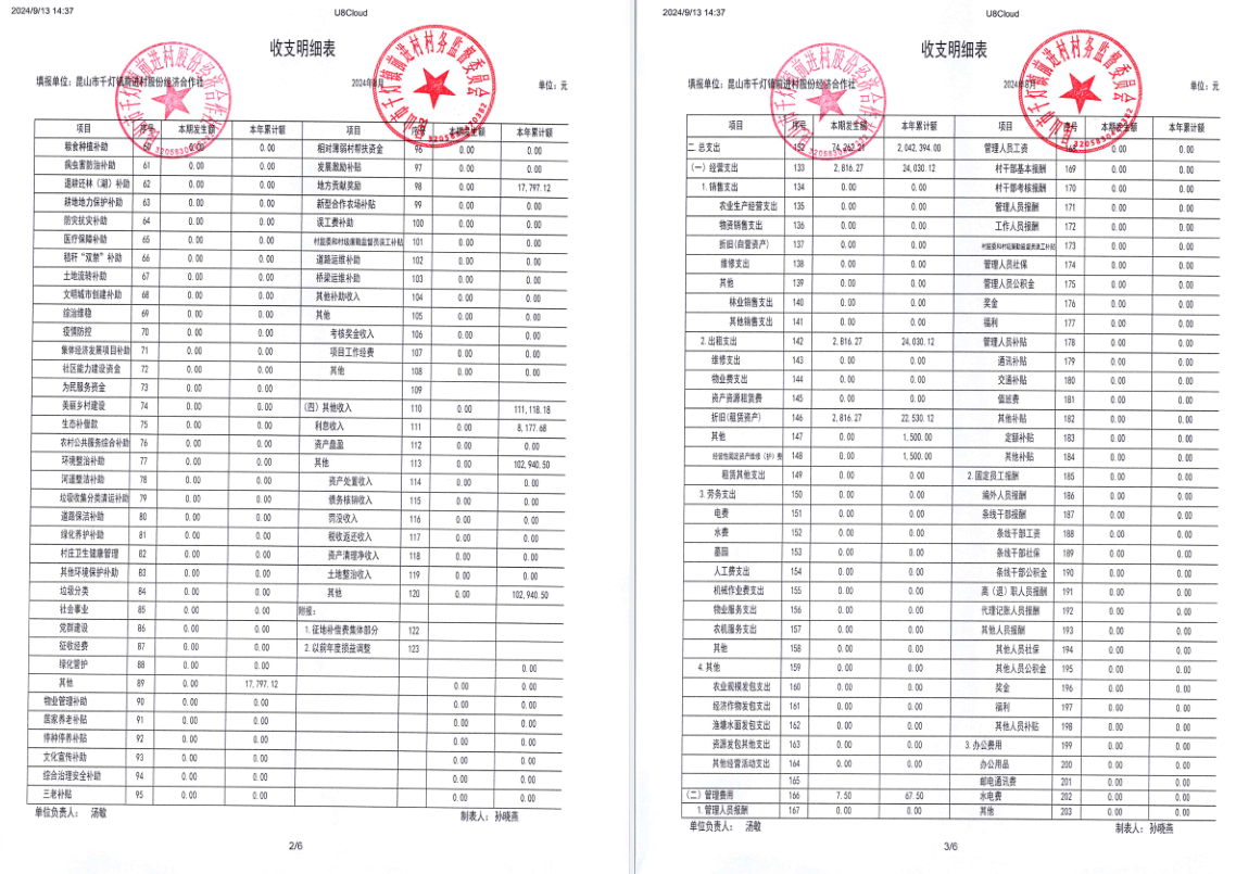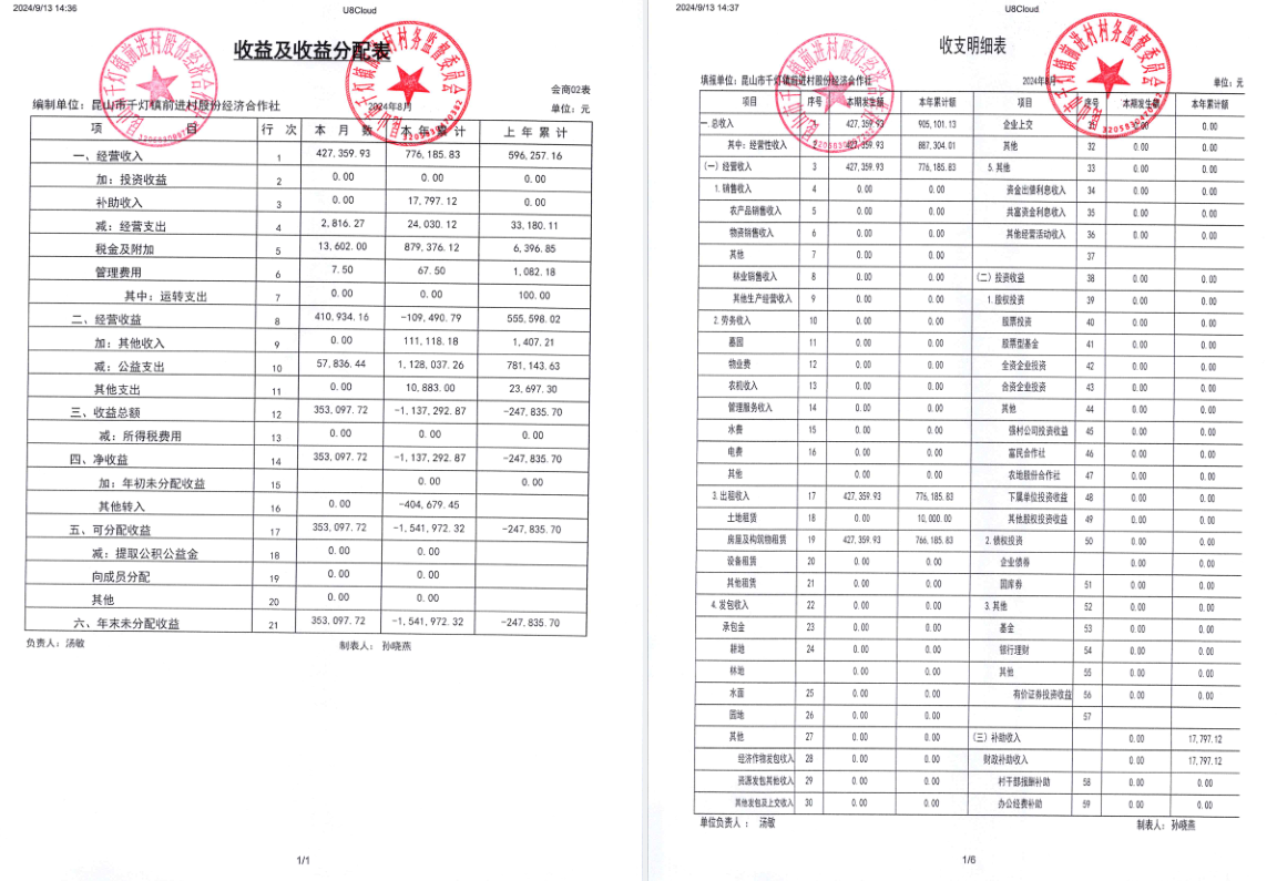 2024年8月经济合作社财务公开