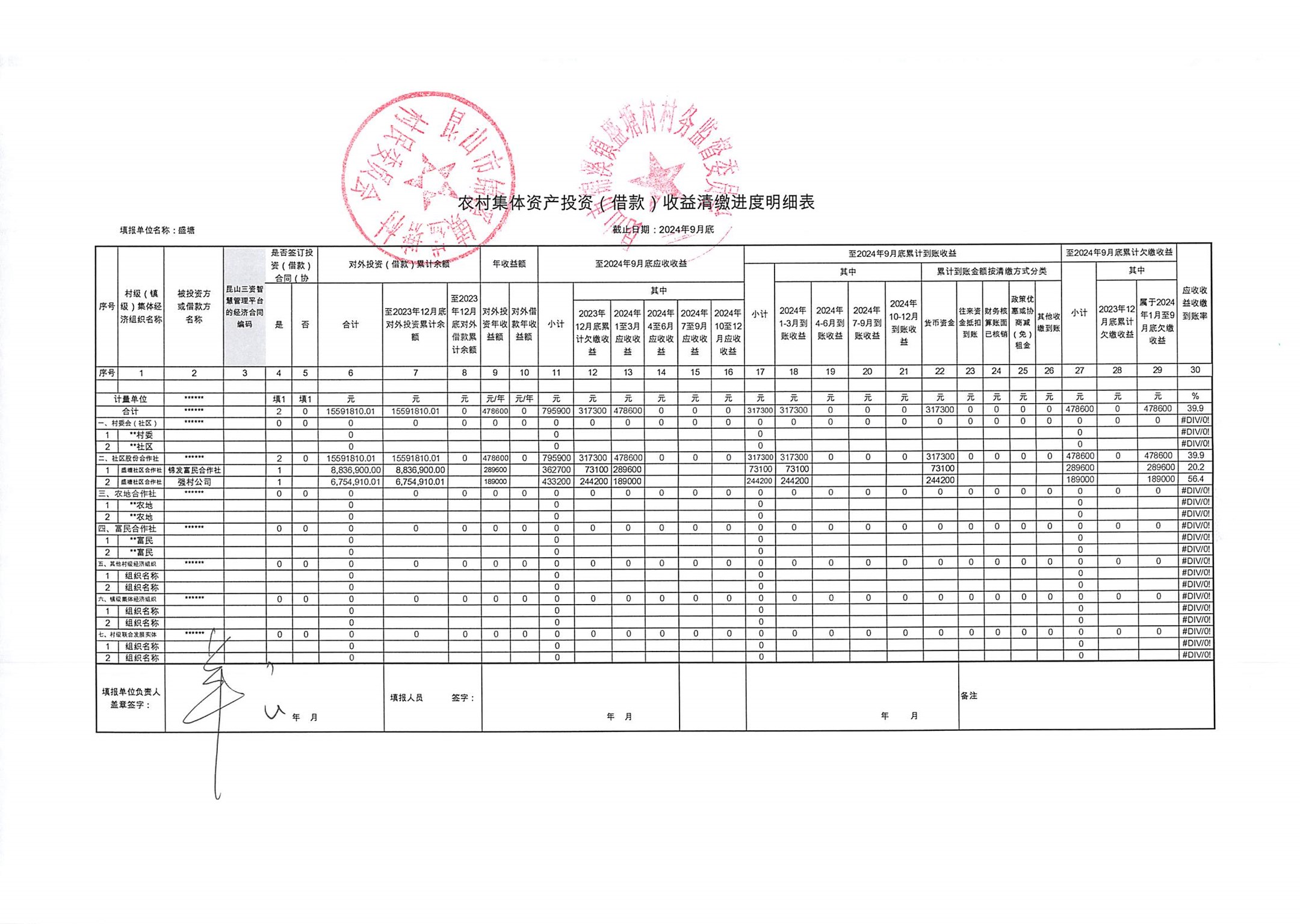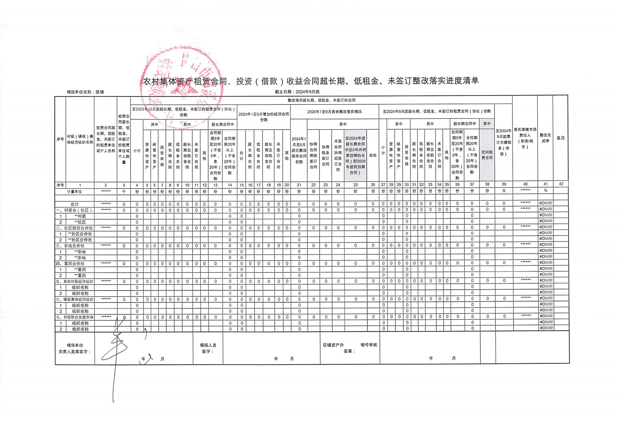 2024年9月盛塘村农村集体资产经济合同执行情况统计表