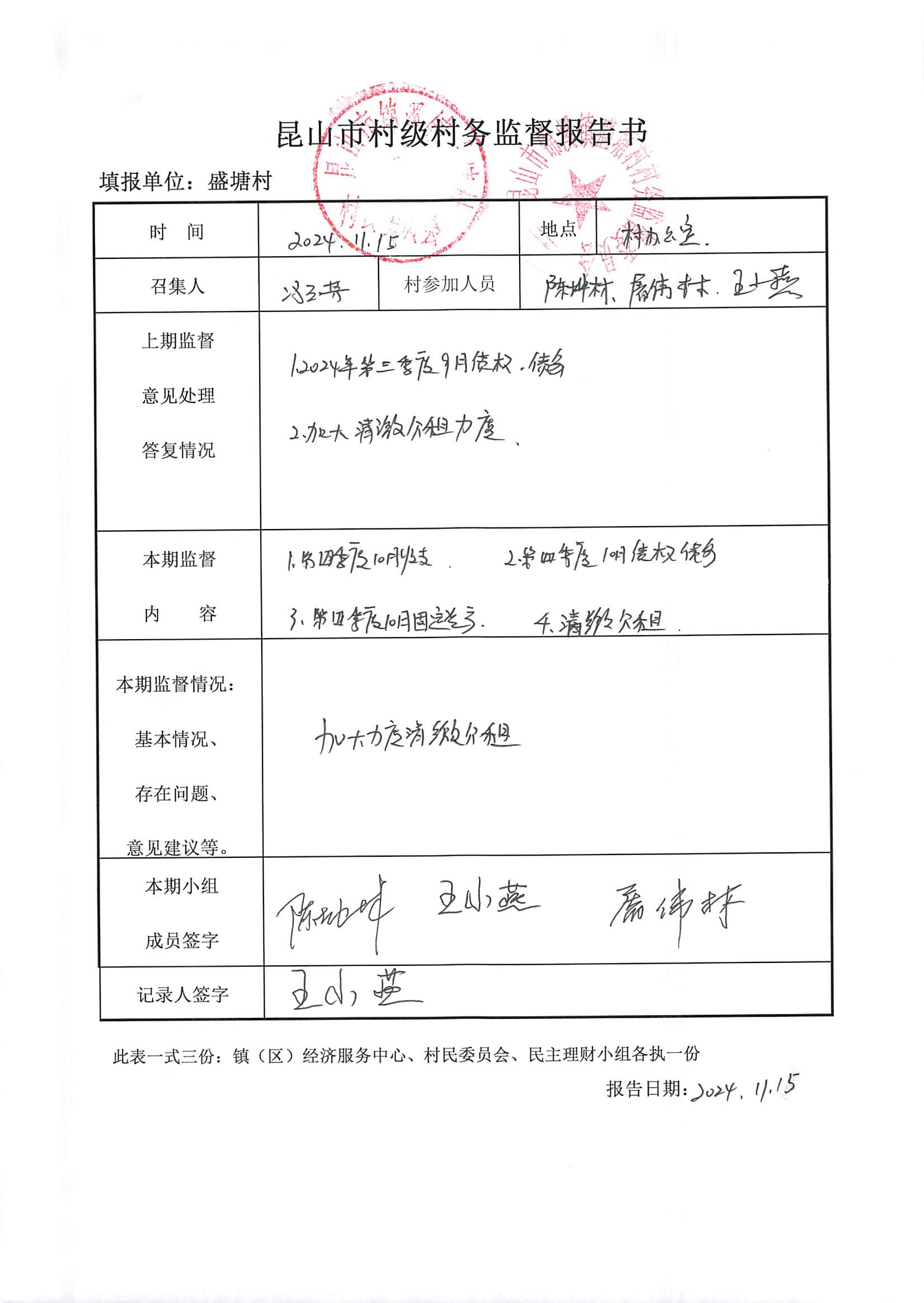 昆山市锦溪镇盛塘村2024年第四季度10月村财务公开资料