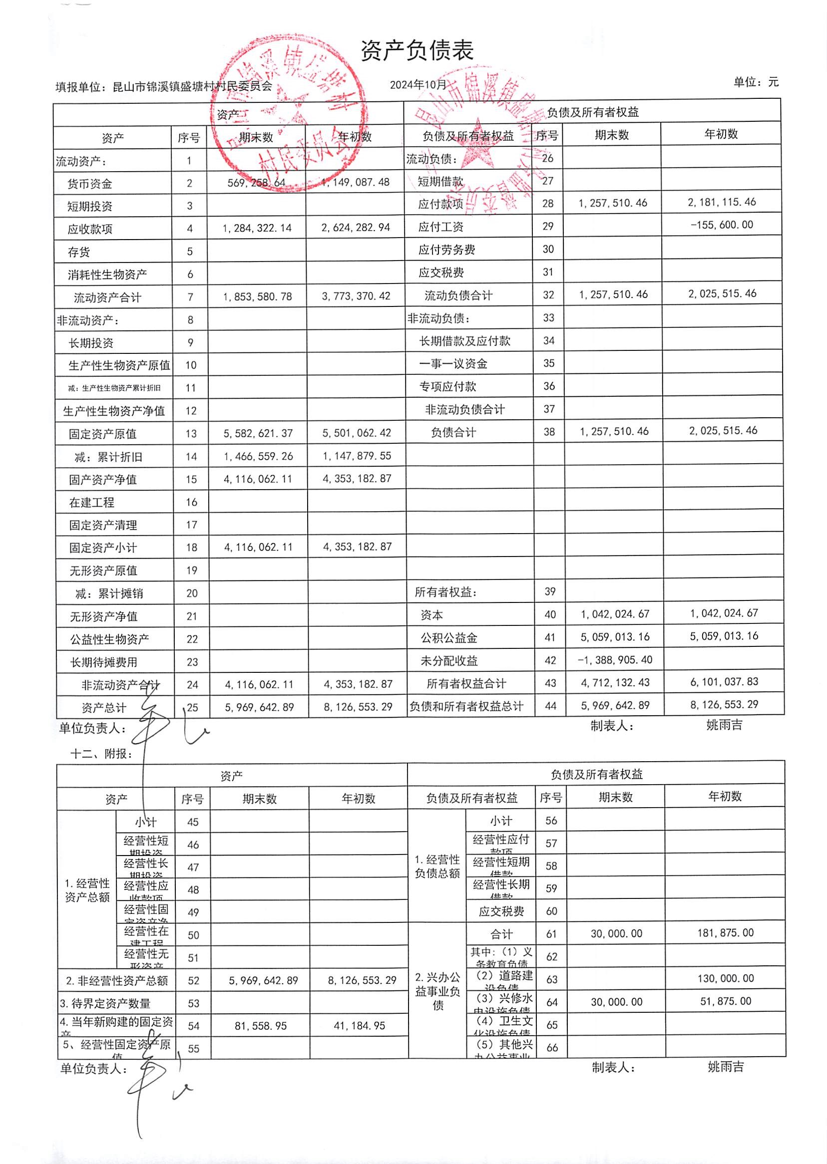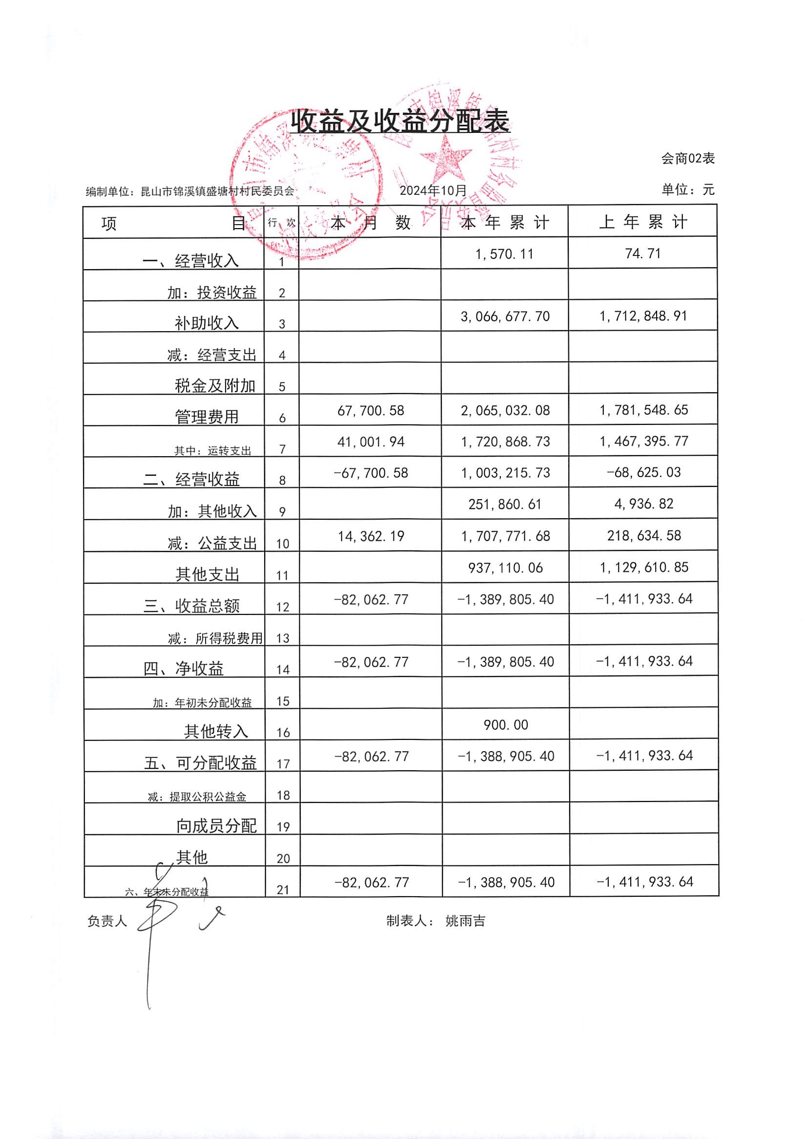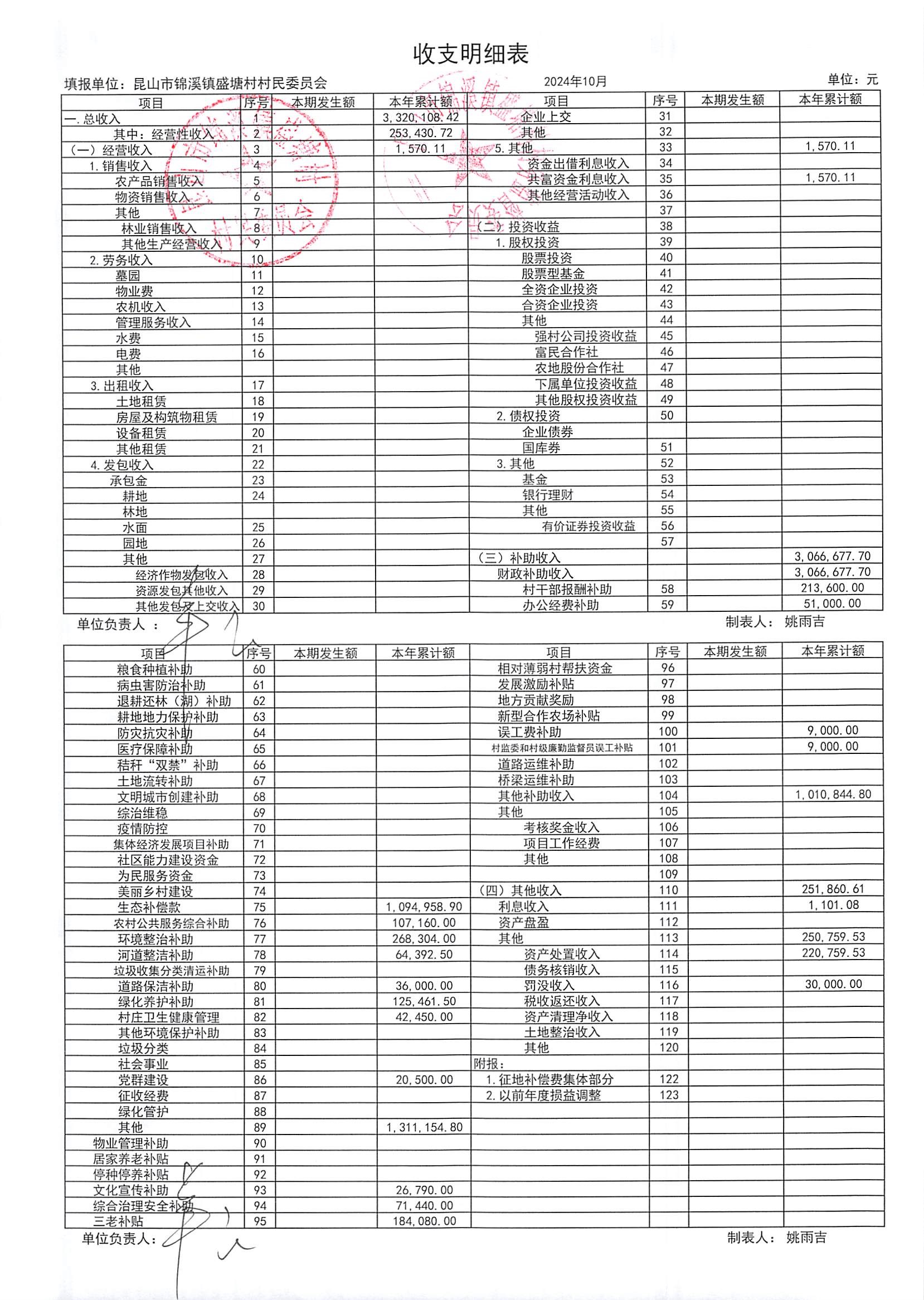 昆山市锦溪镇盛塘村2024年第四季度10月财务公开资料