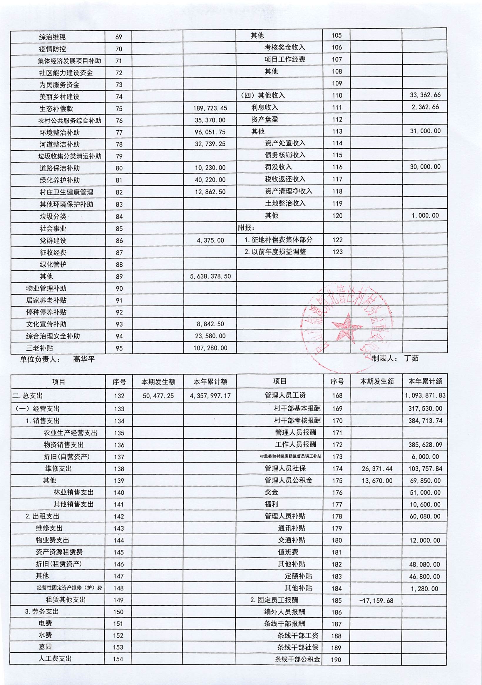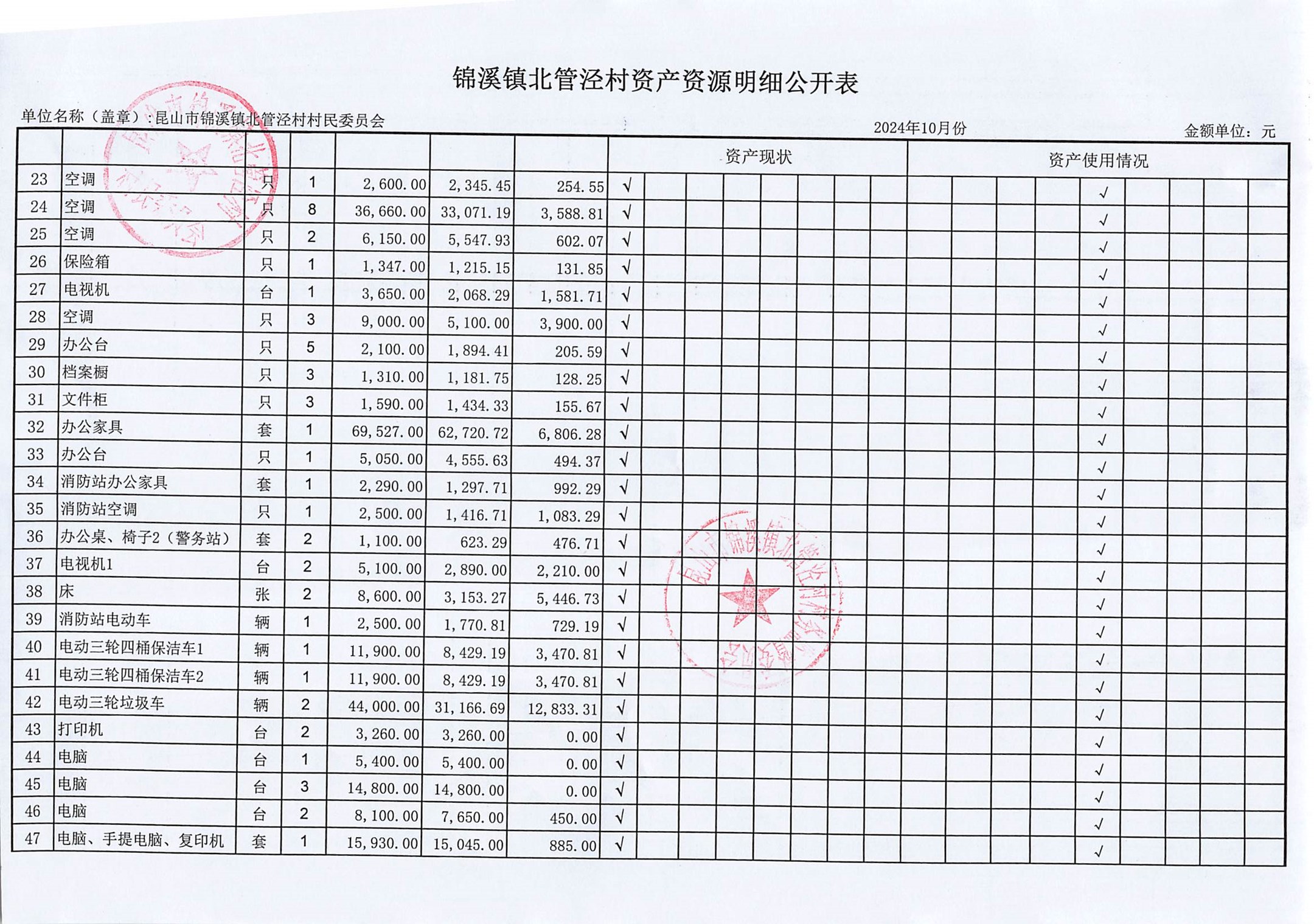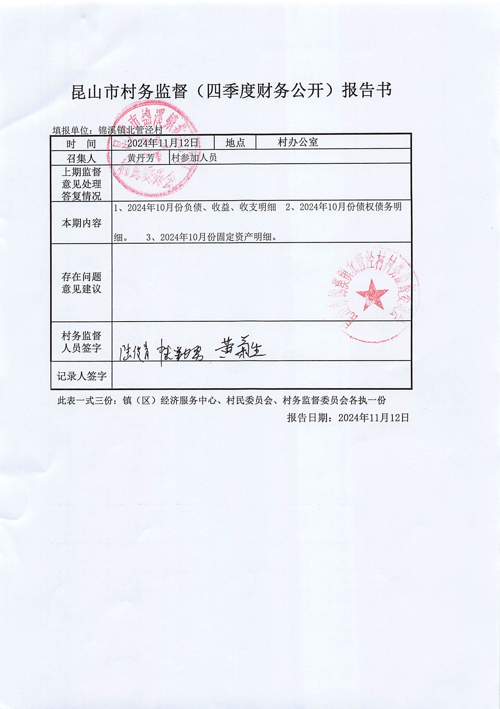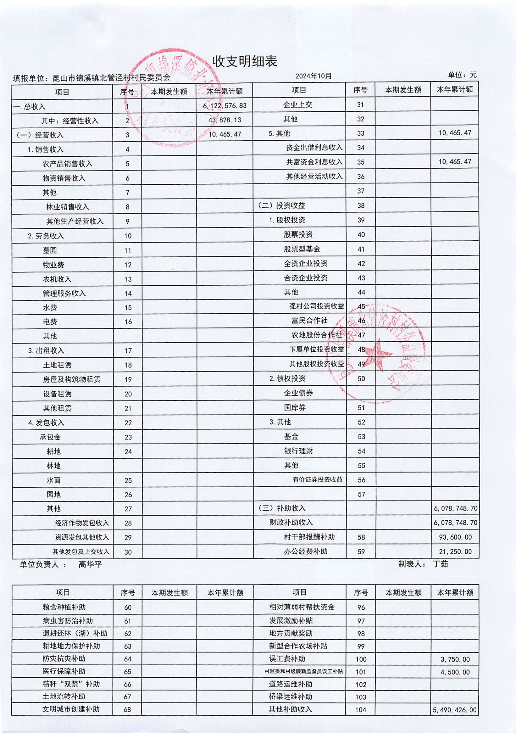 2024年10月份村委会财务公开
