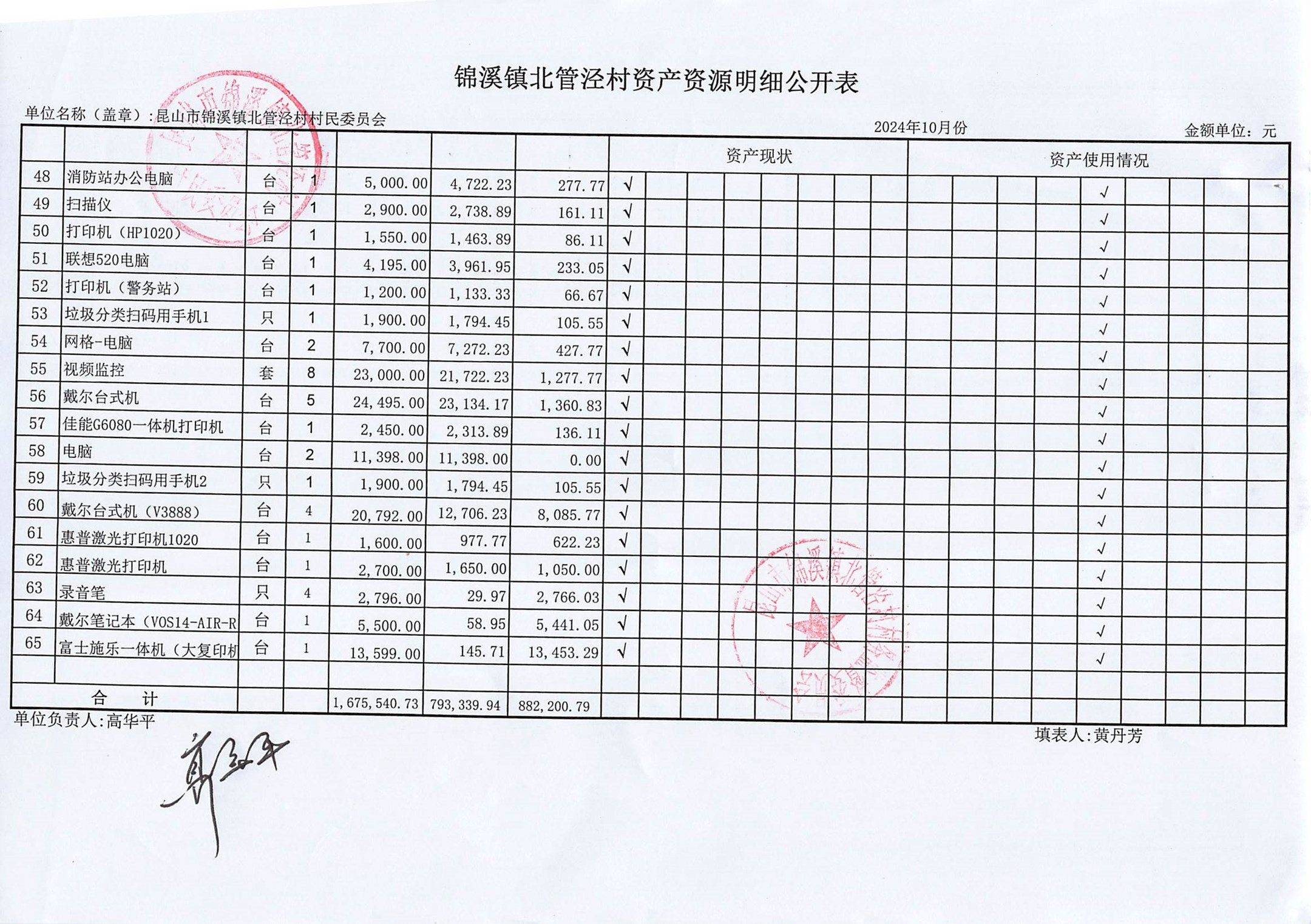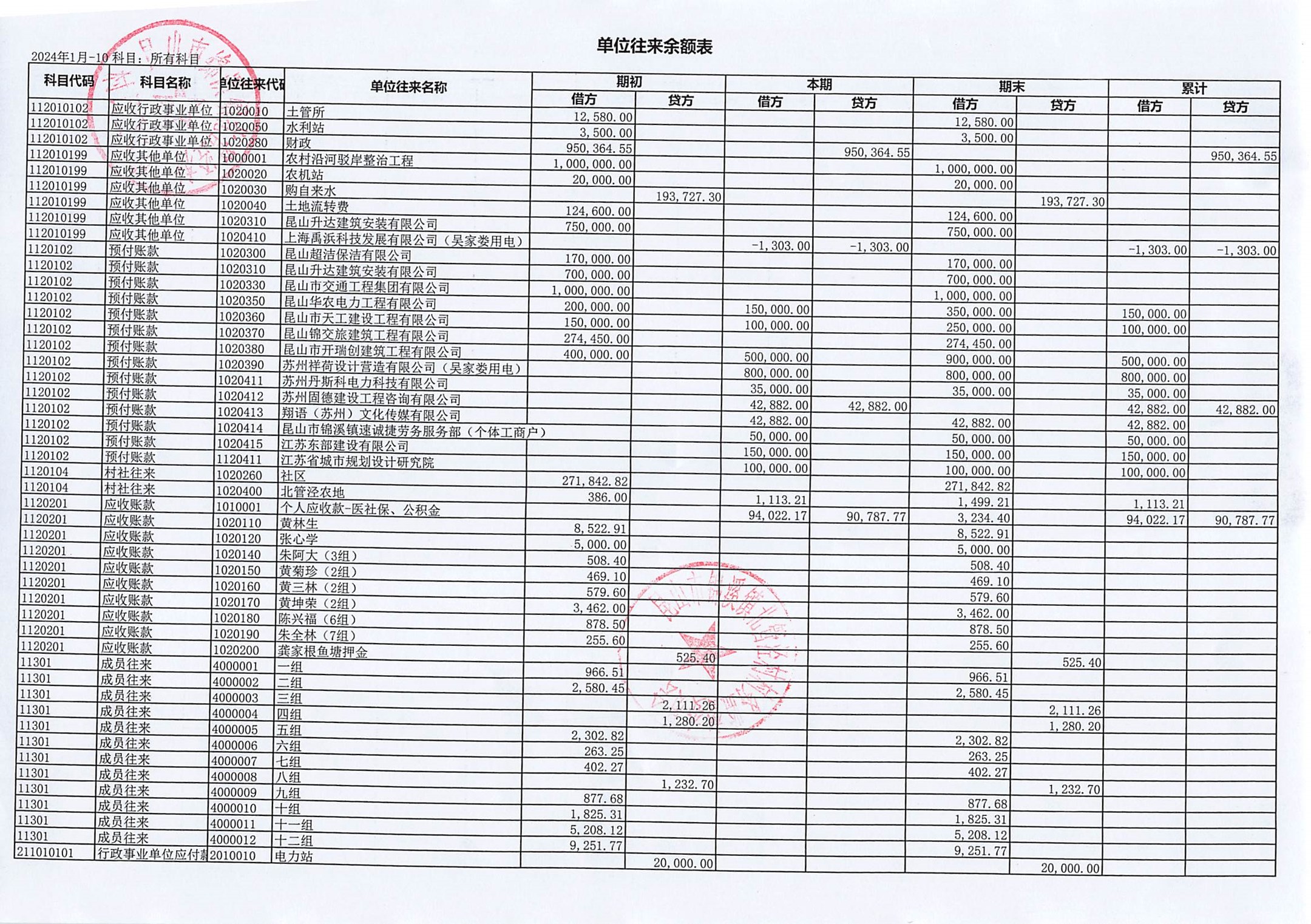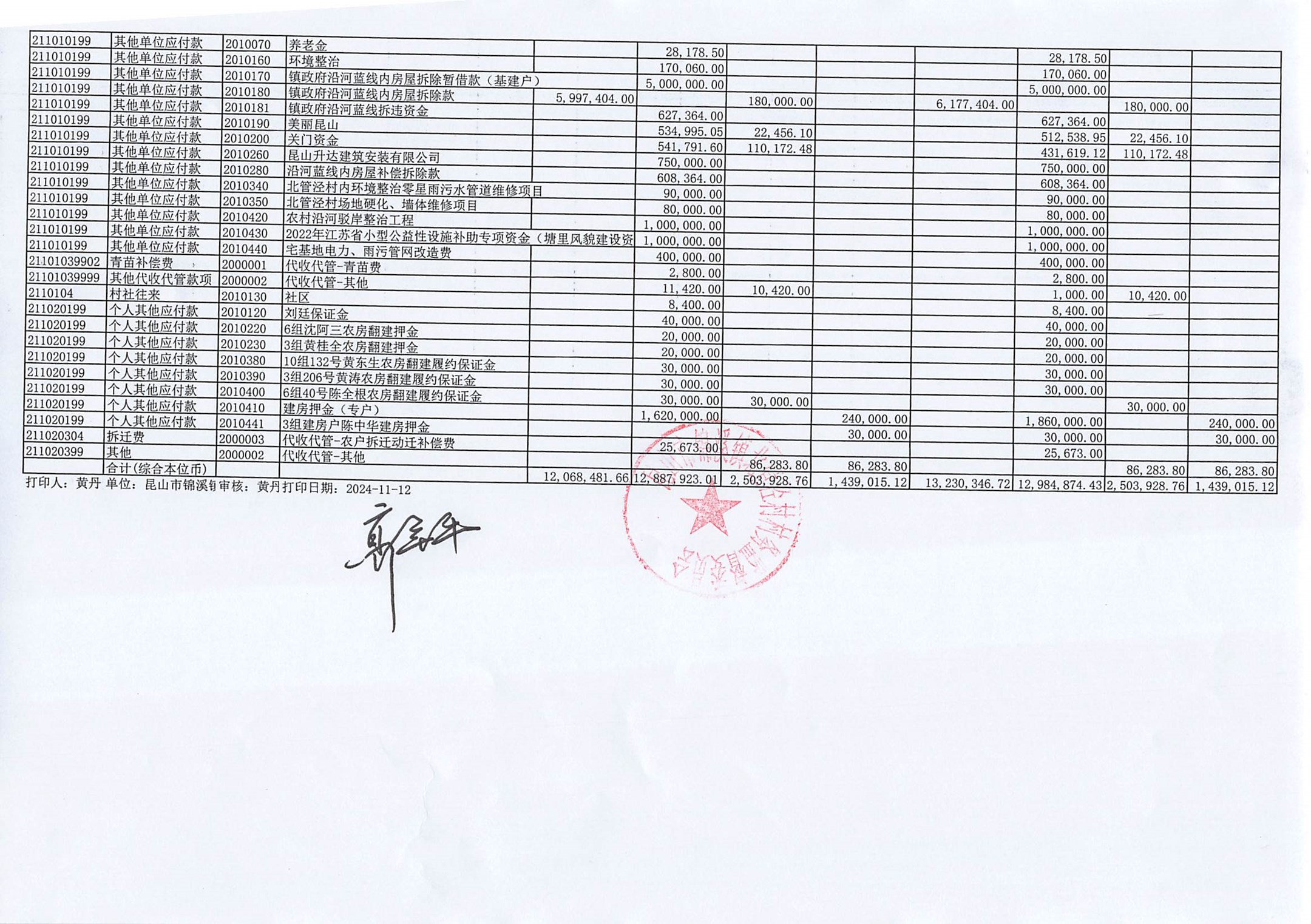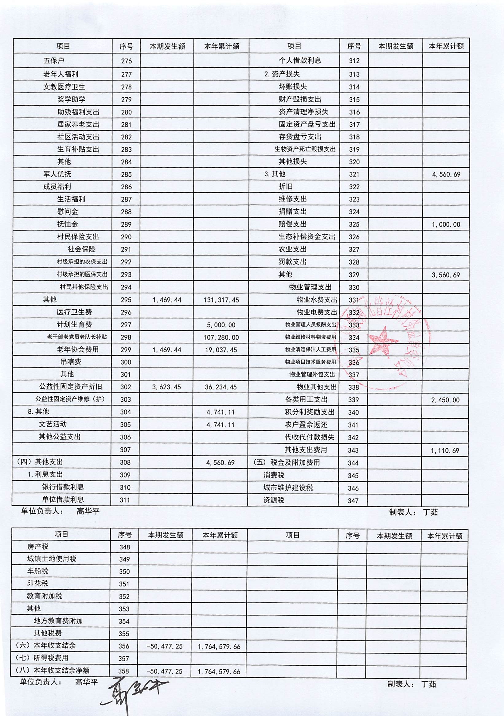 2024年10月份村委会财务公开