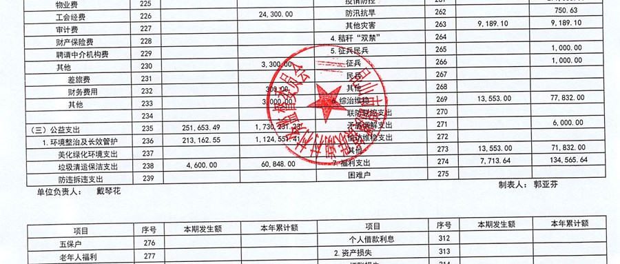 2024年联湖村10月份财务公开(定期公开)