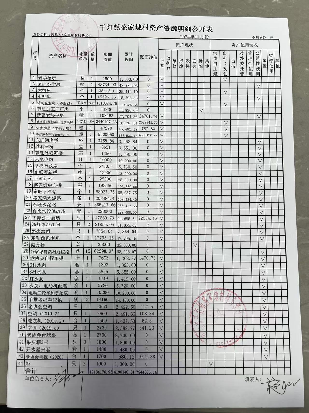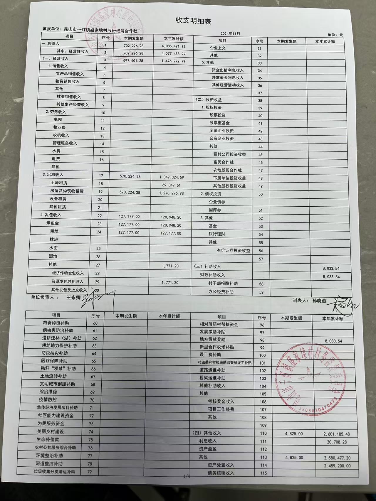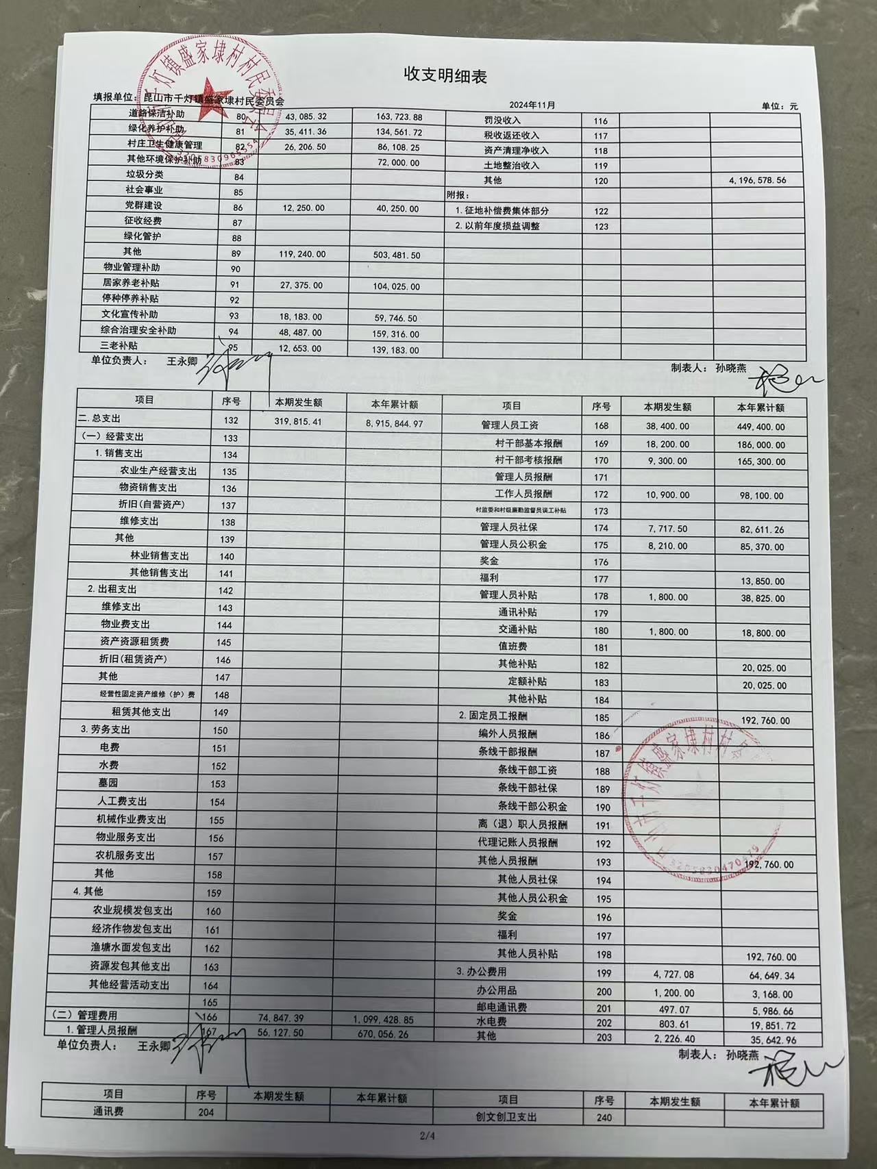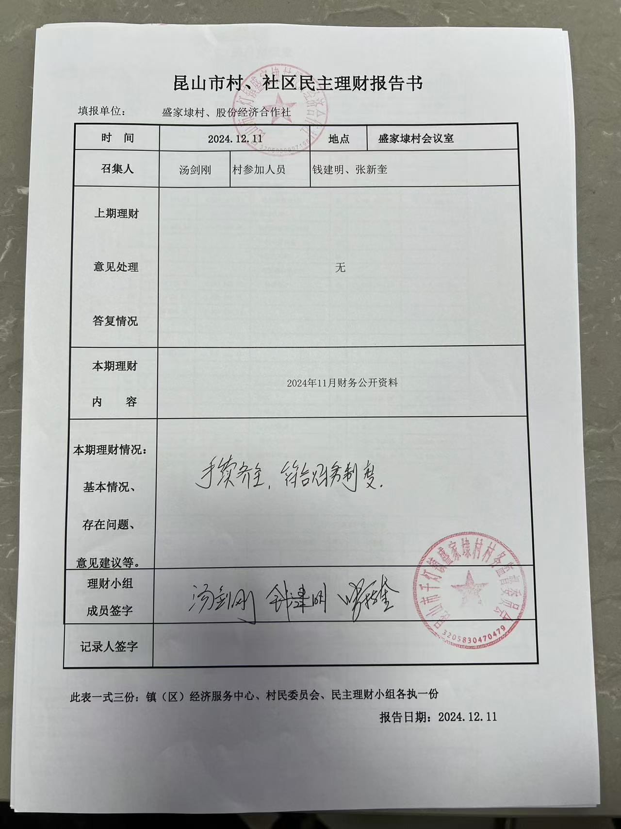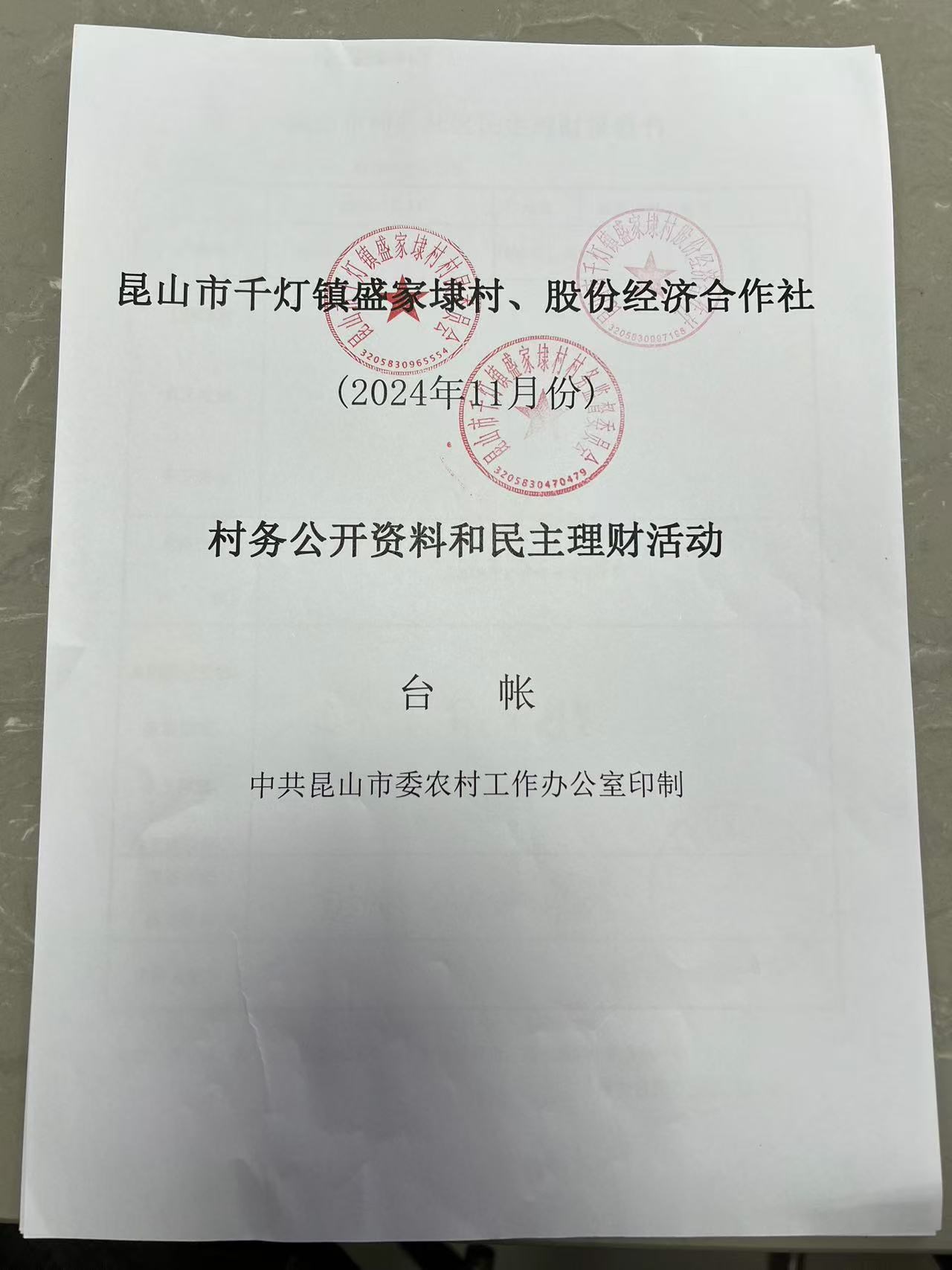 2024年11月份盛家埭村、股份经济合作社定期公开