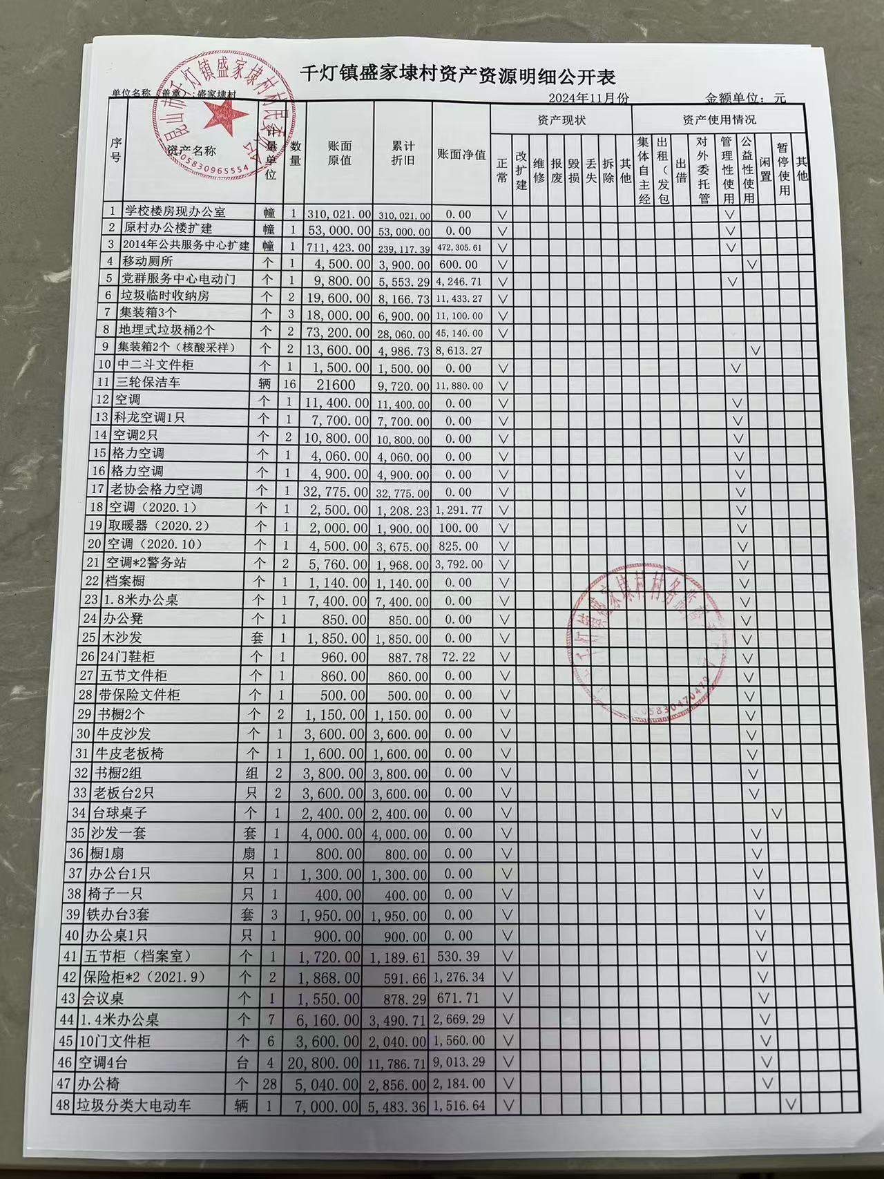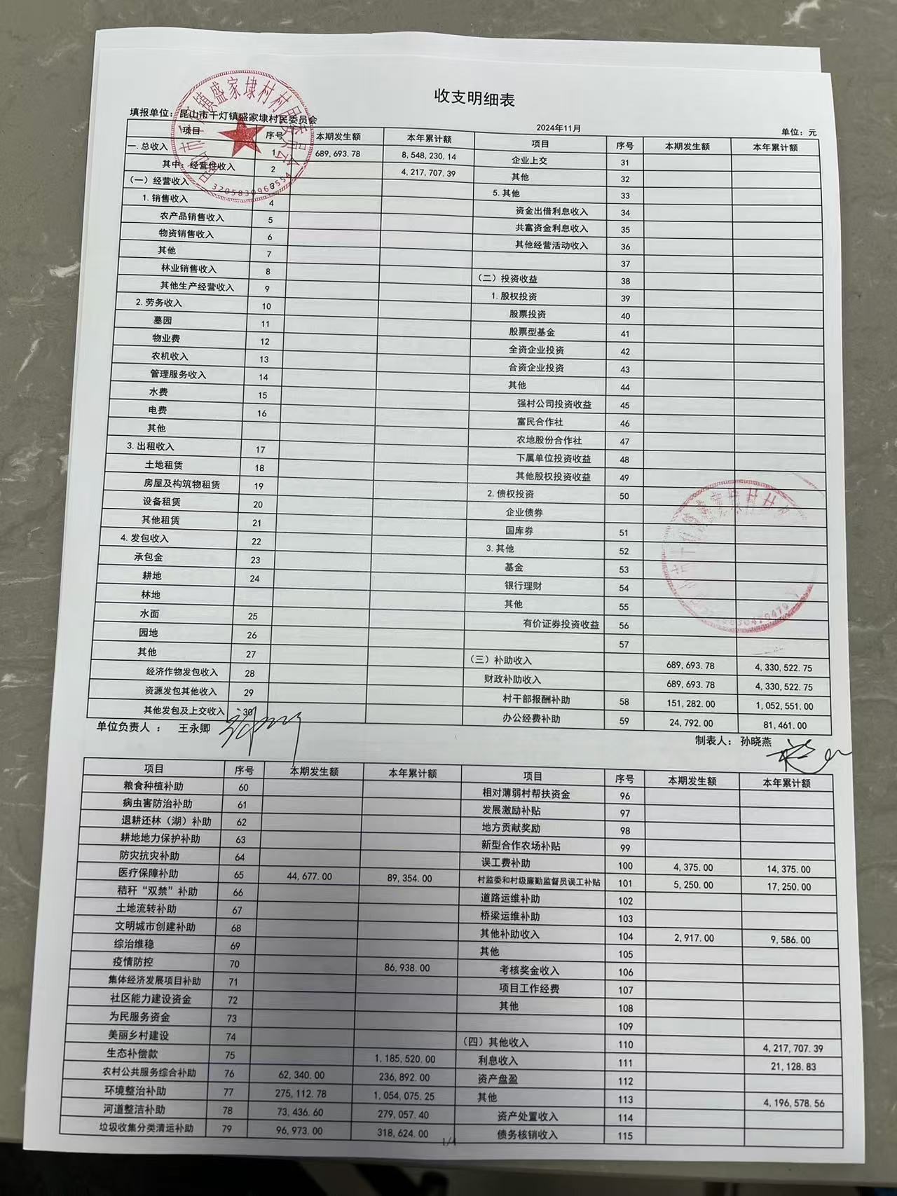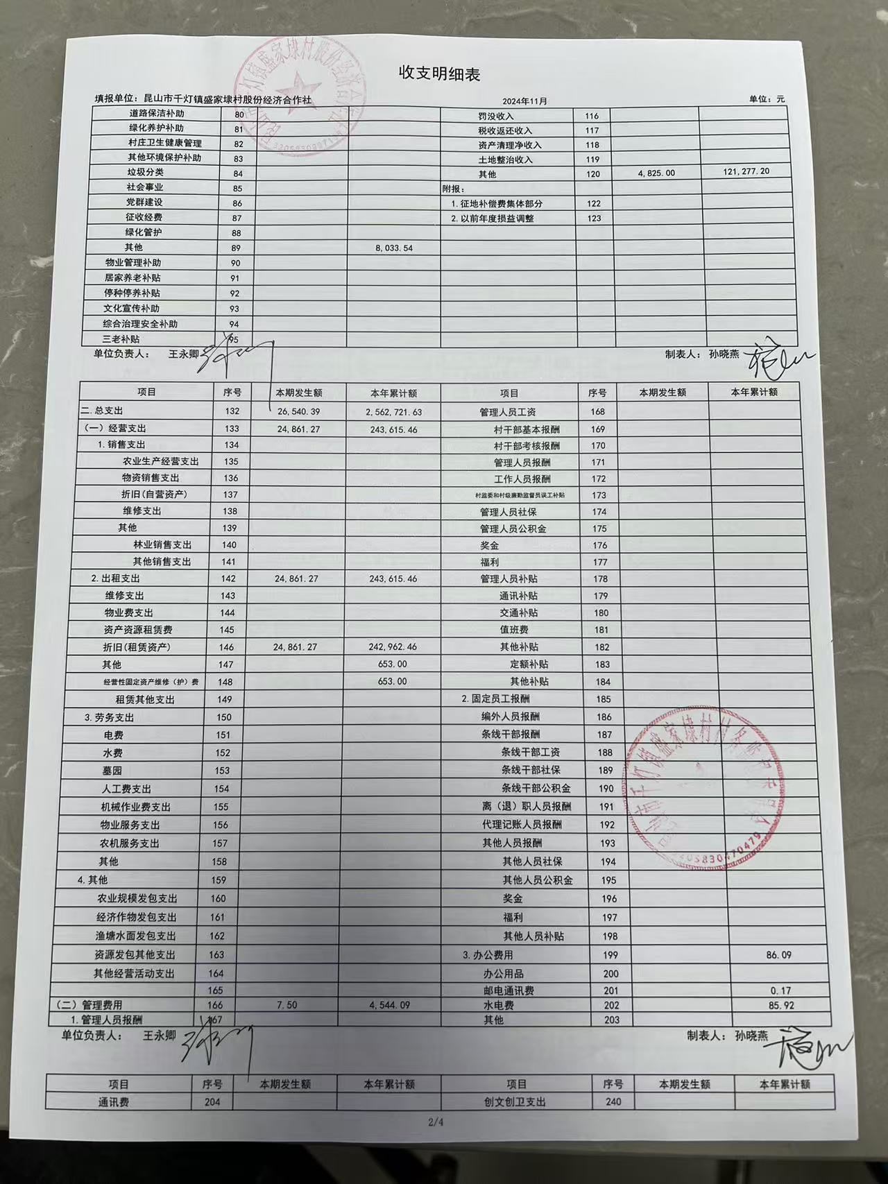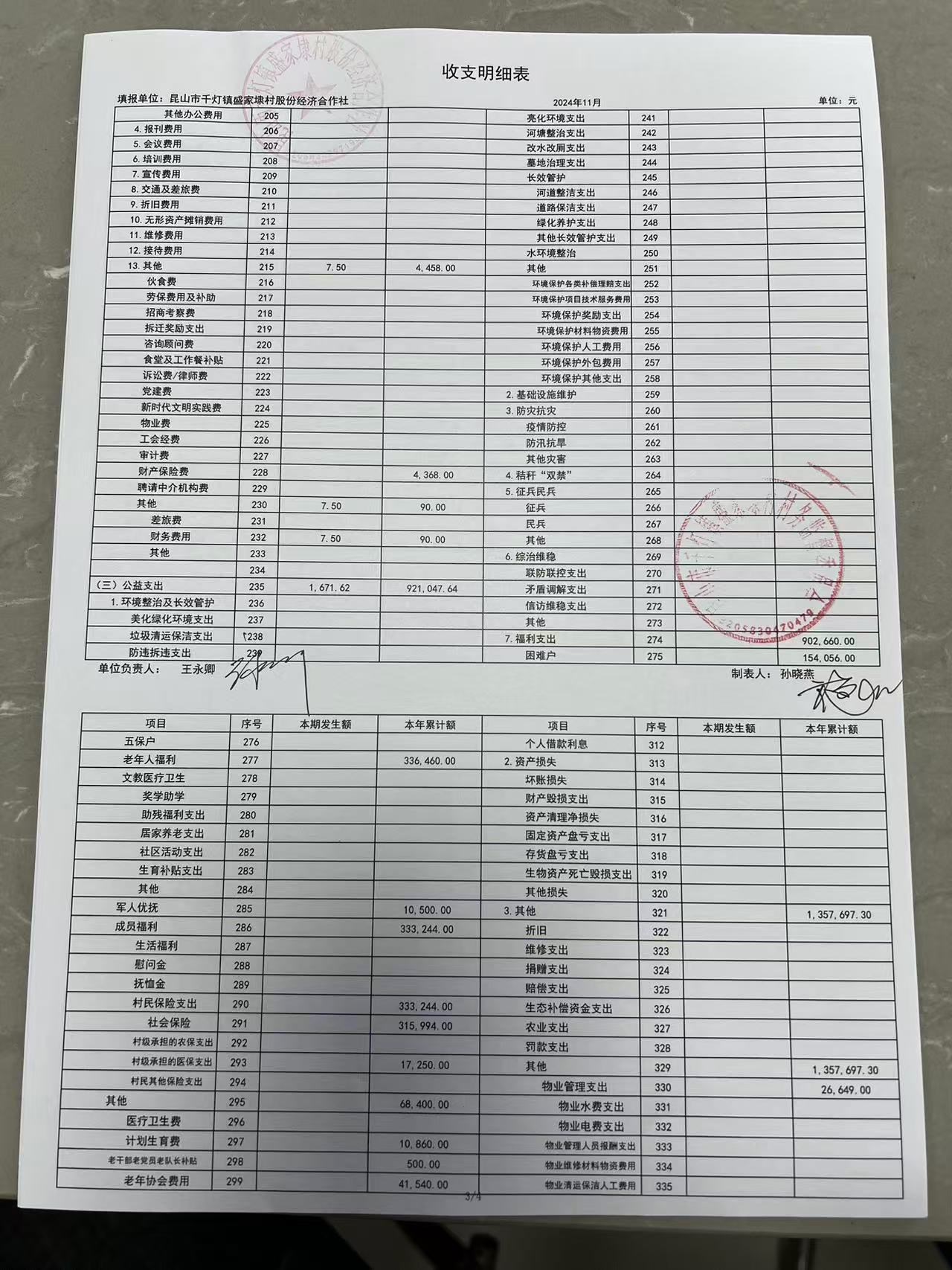 2024年11月份盛家埭村、股份经济合作社定期公开