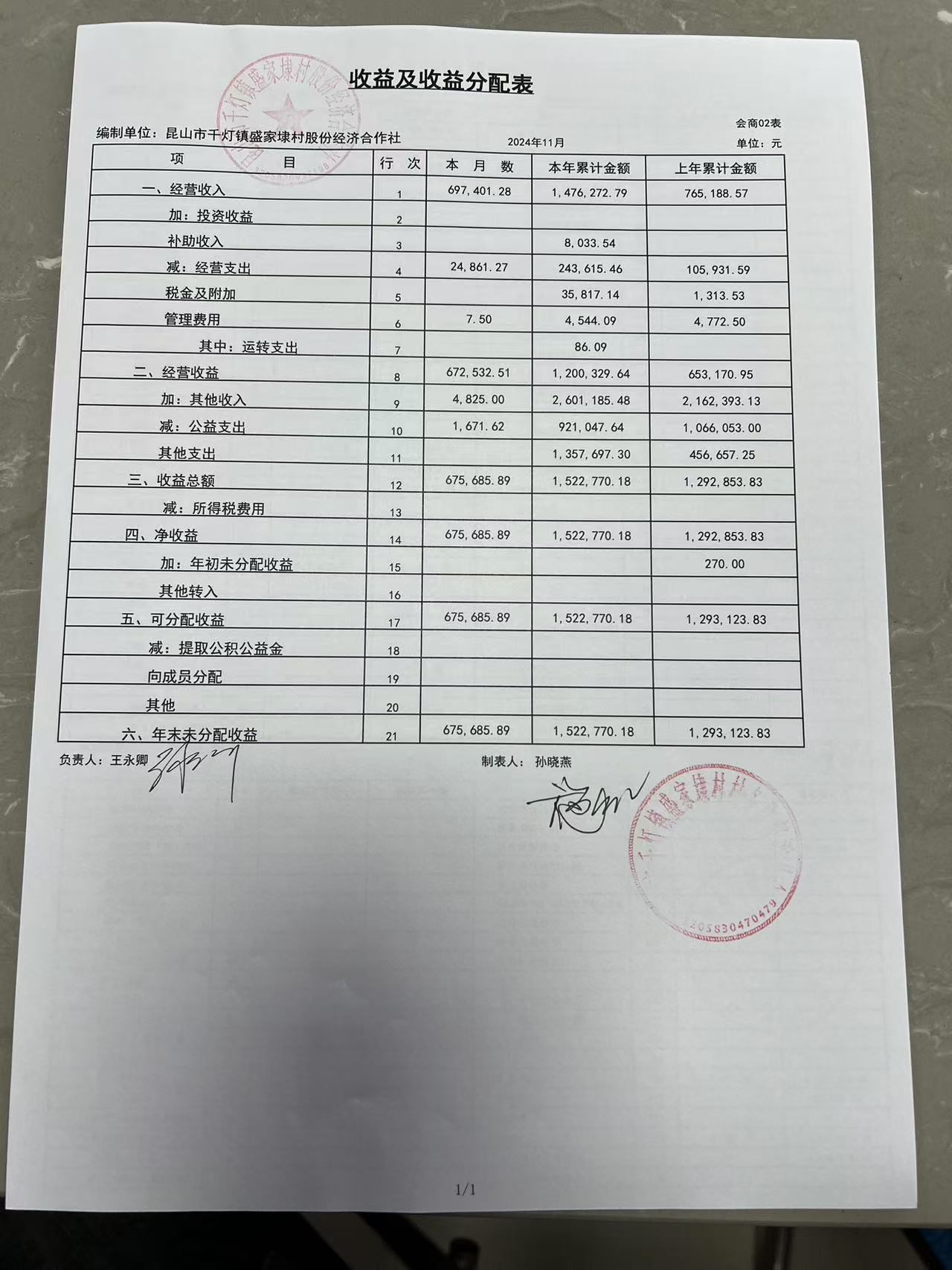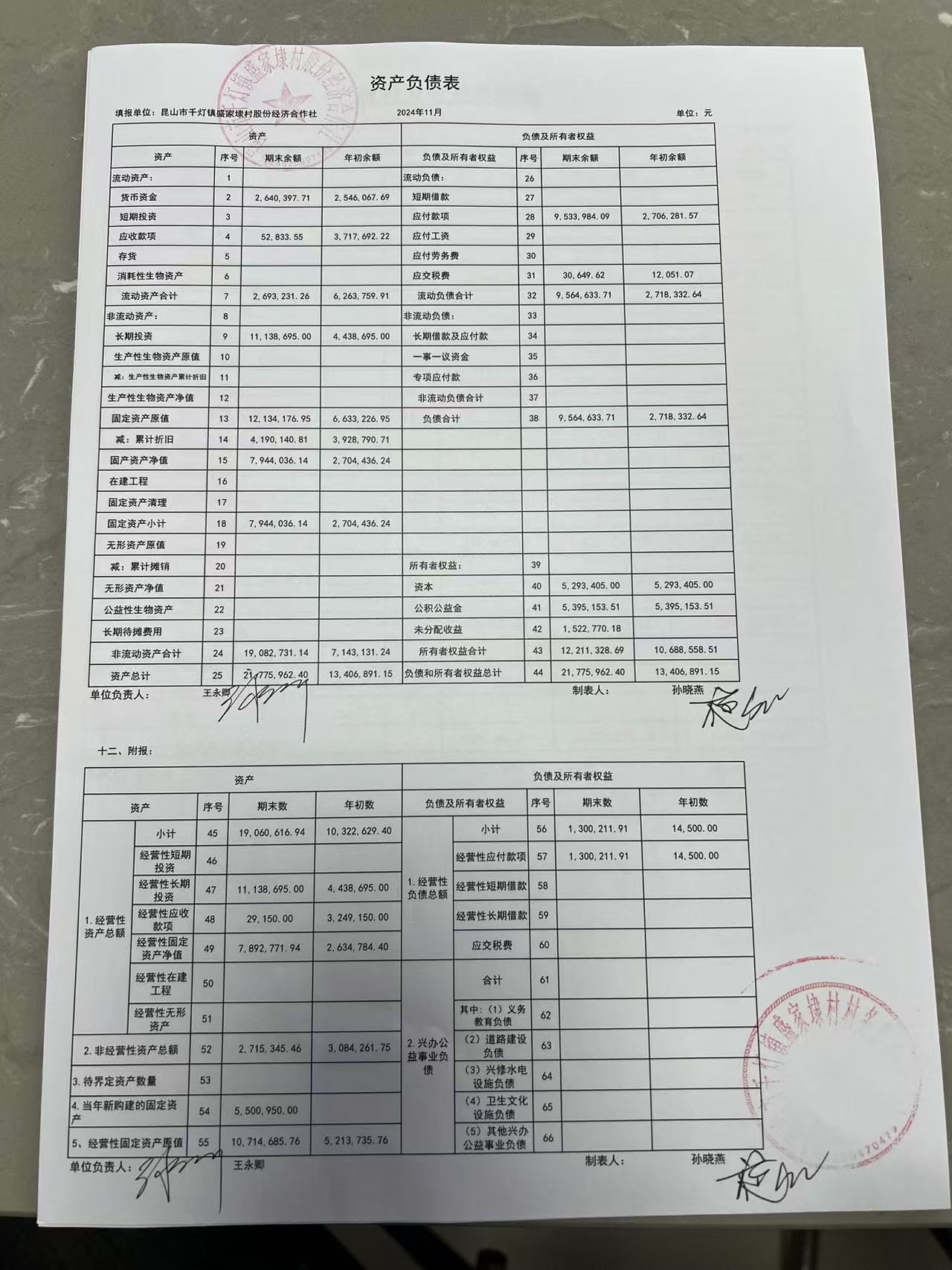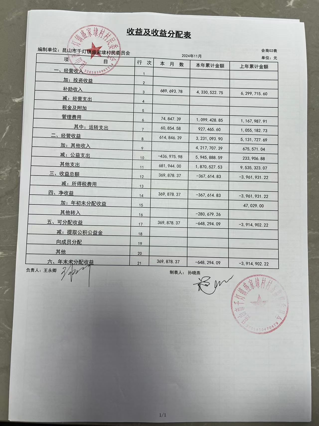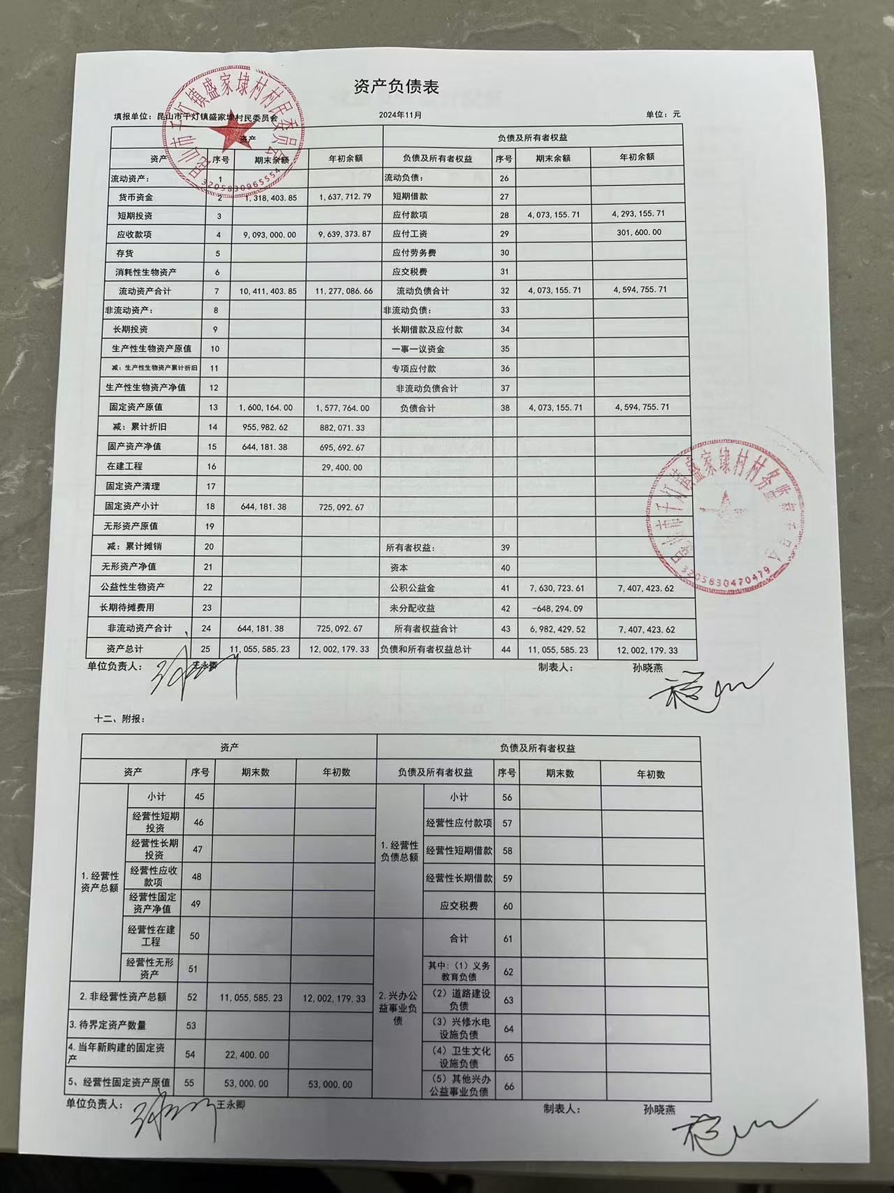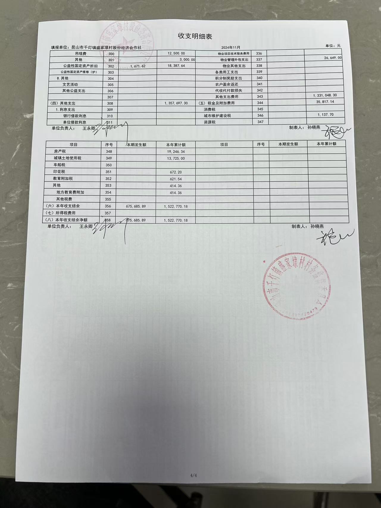 2024年11月份盛家埭村、股份经济合作社定期公开