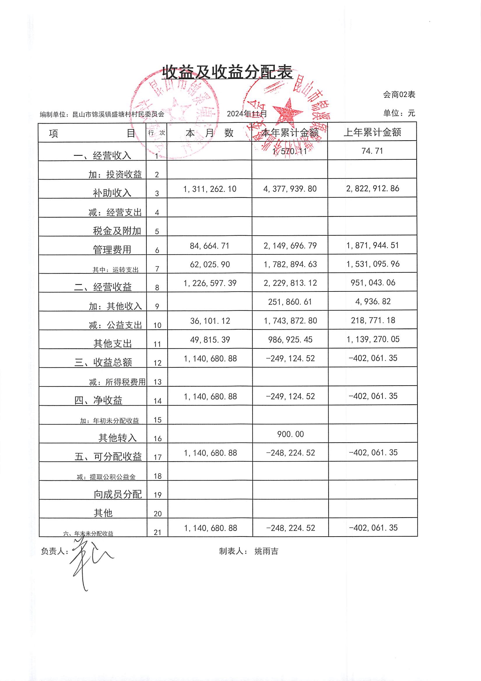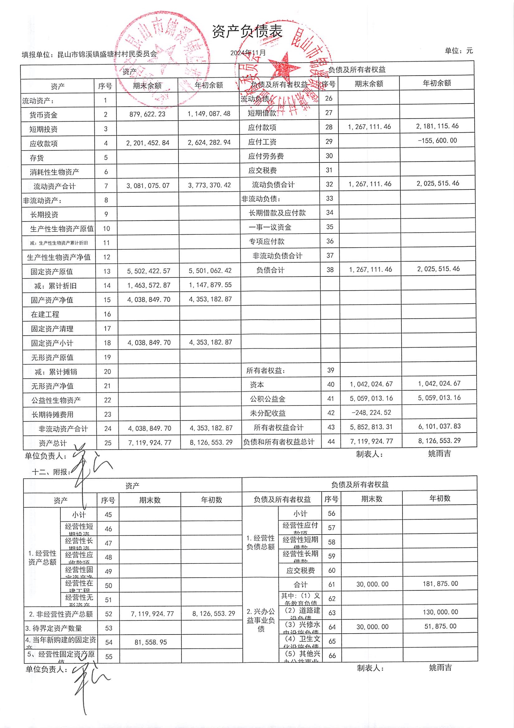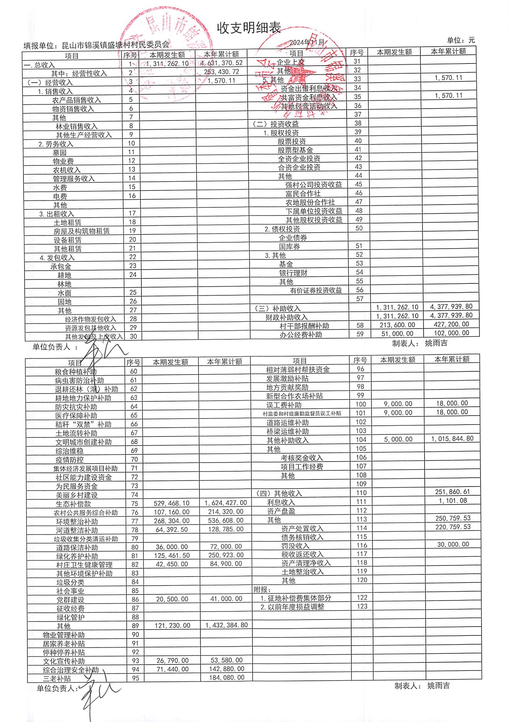 昆山市锦溪镇盛塘村2024年第四季度11月村财务公开资料
