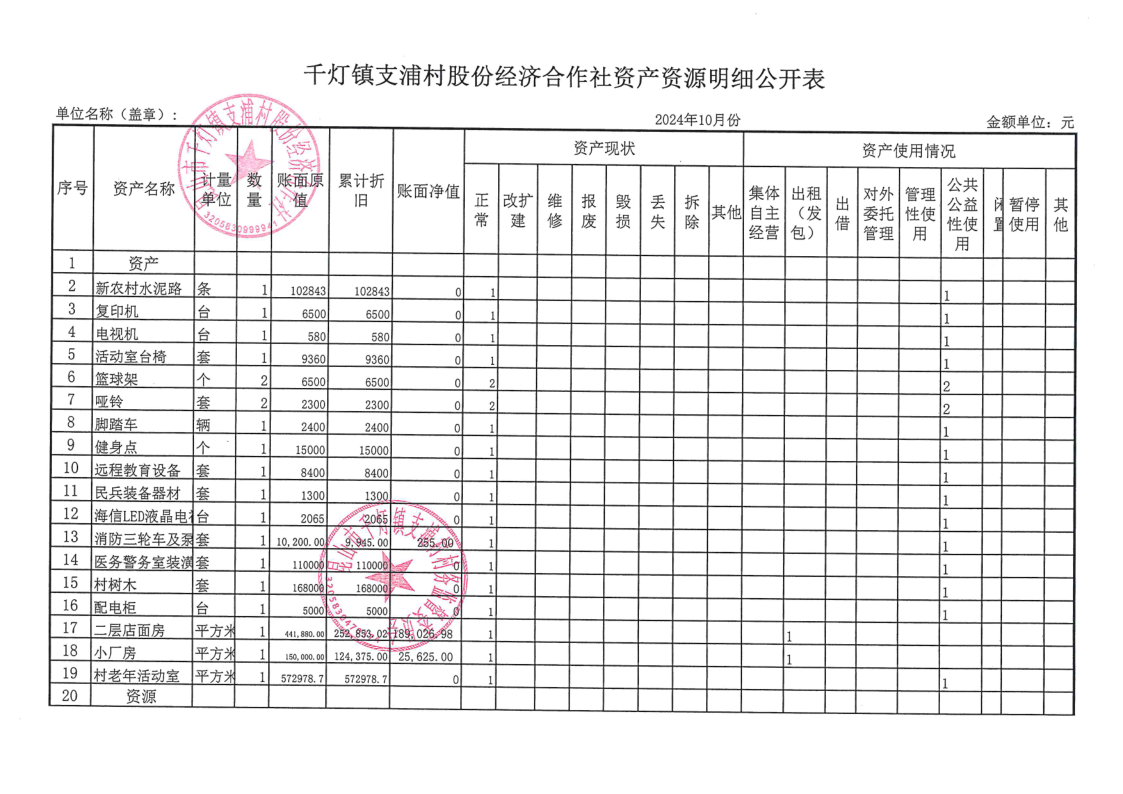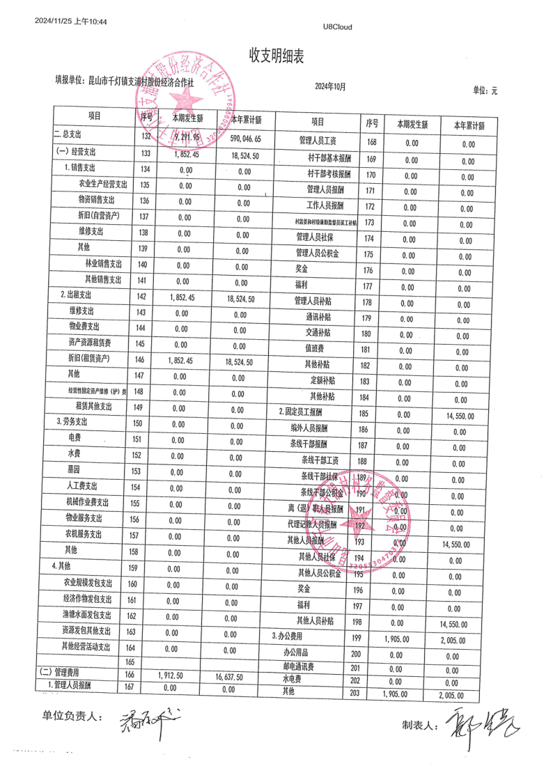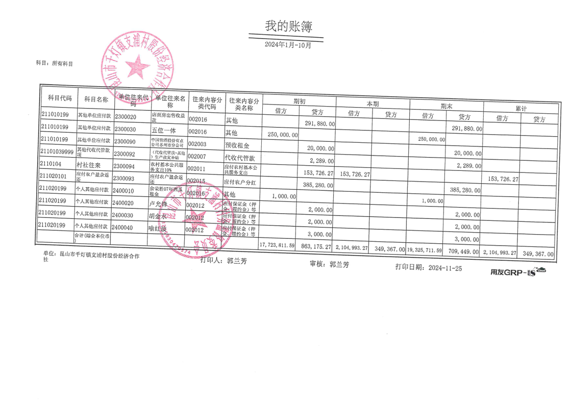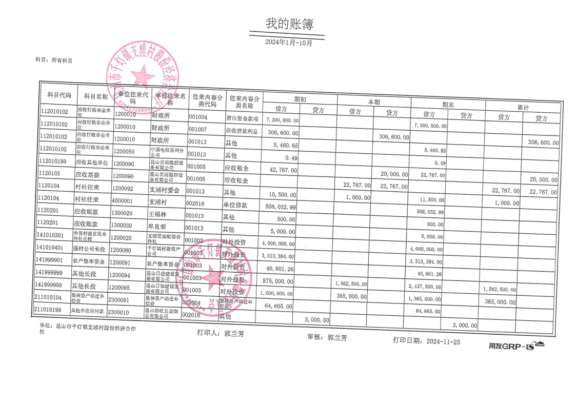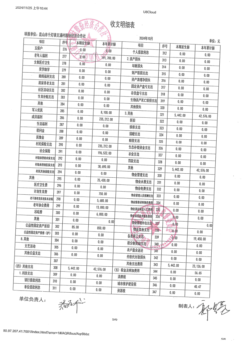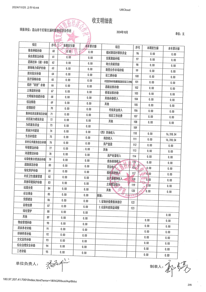 支浦股份合作社2024年10月财务公开