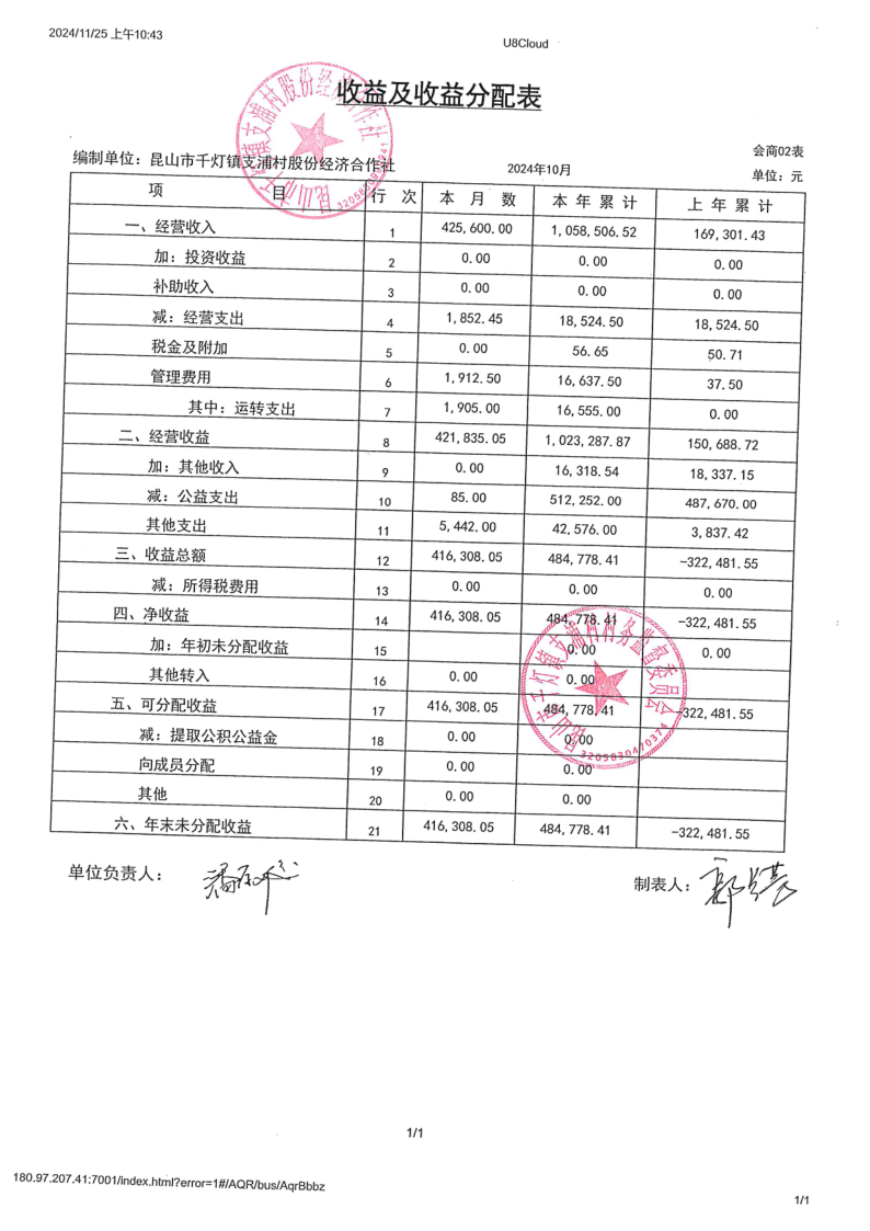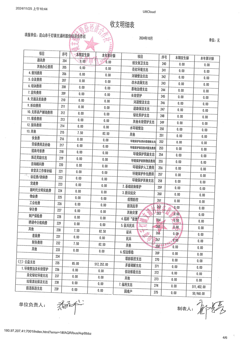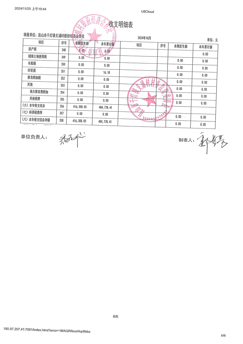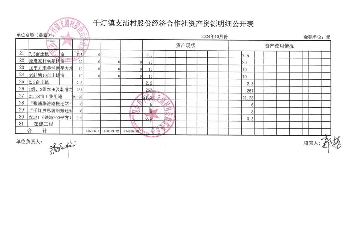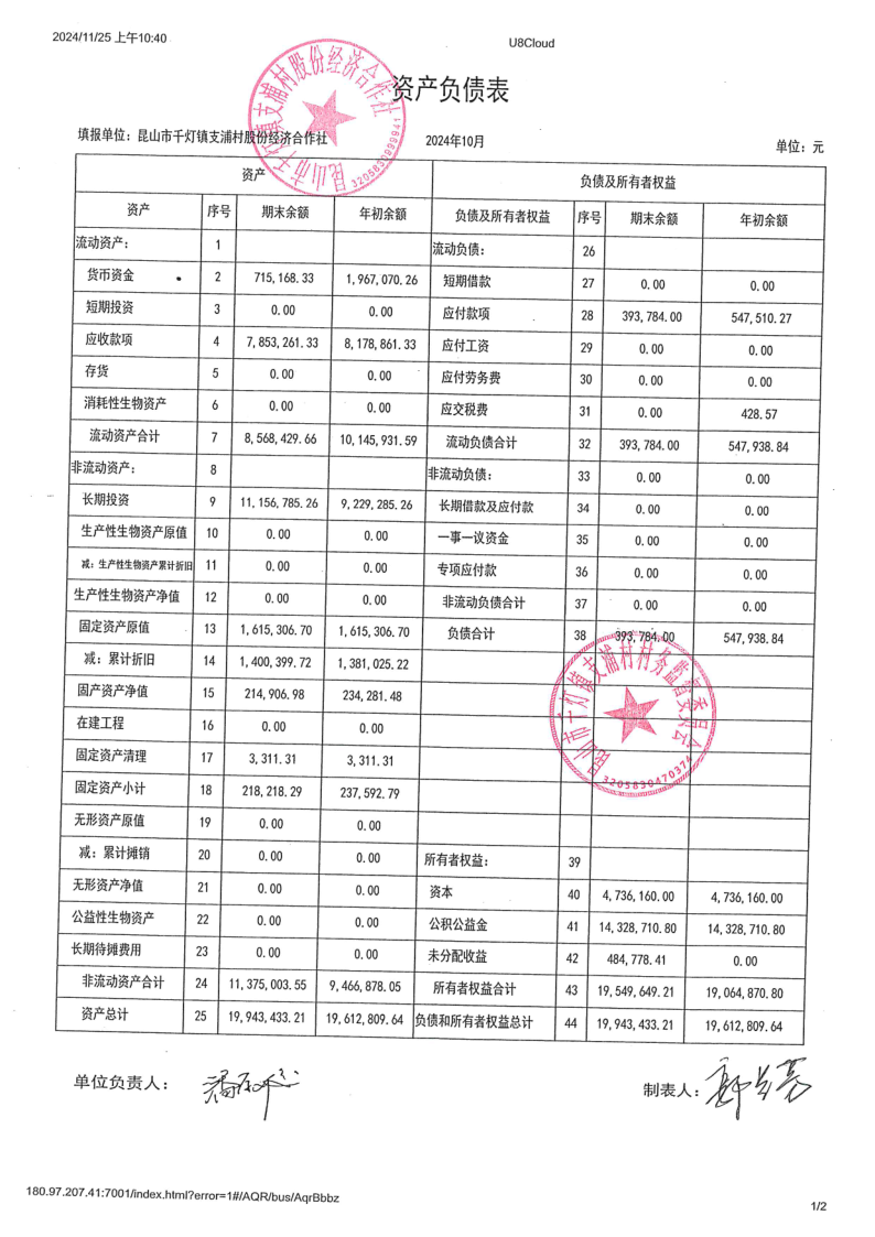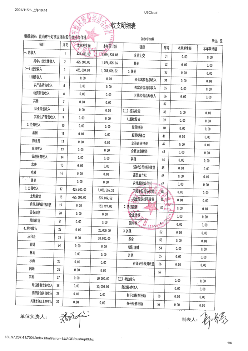 支浦股份合作社2024年10月财务公开