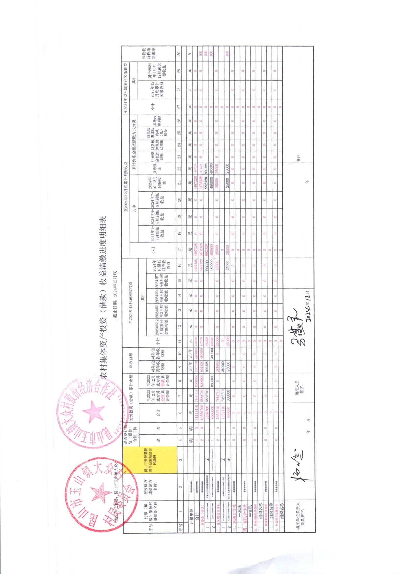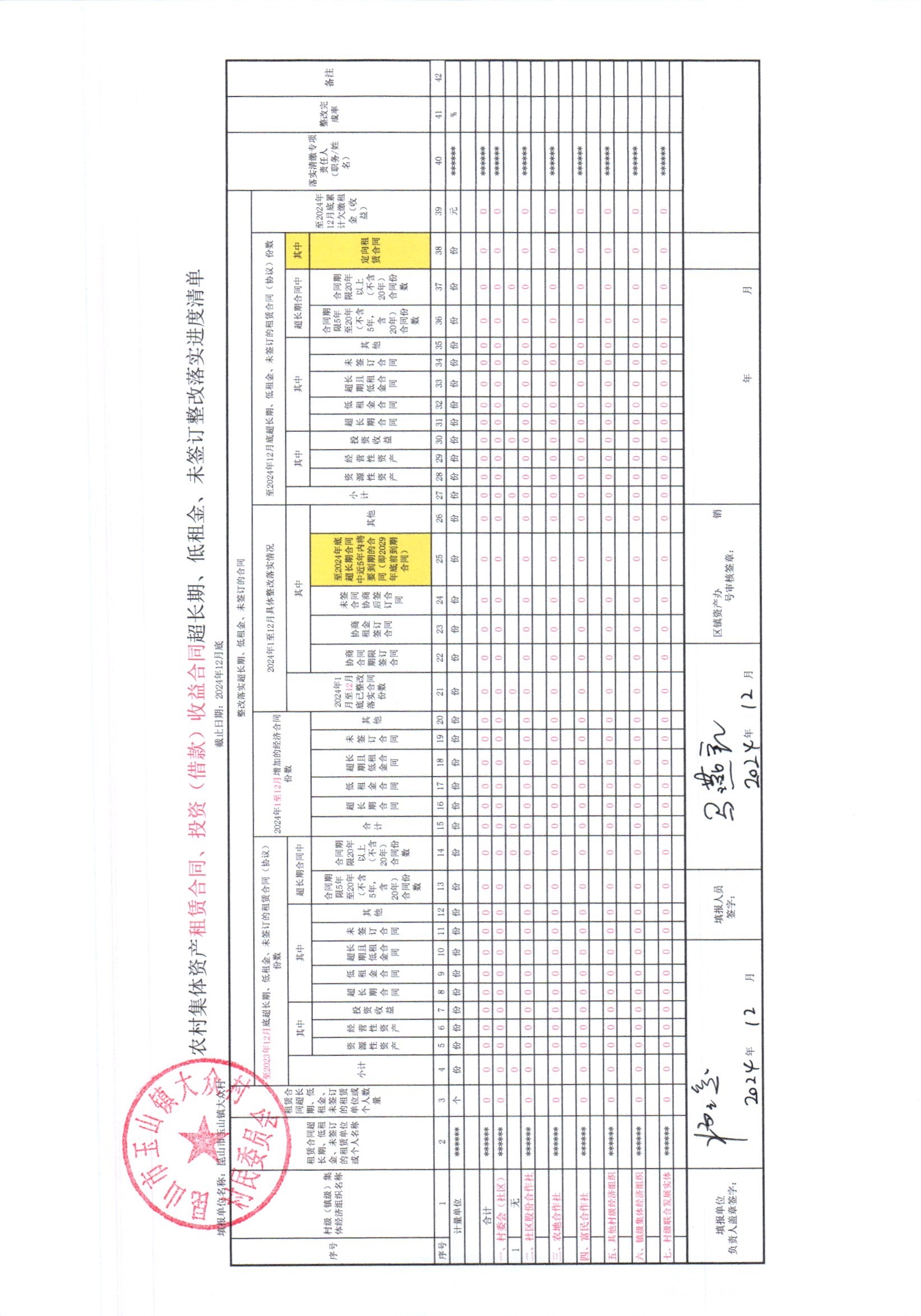 大众村2024年农村集体资产经济合同收缴进度调查12月底