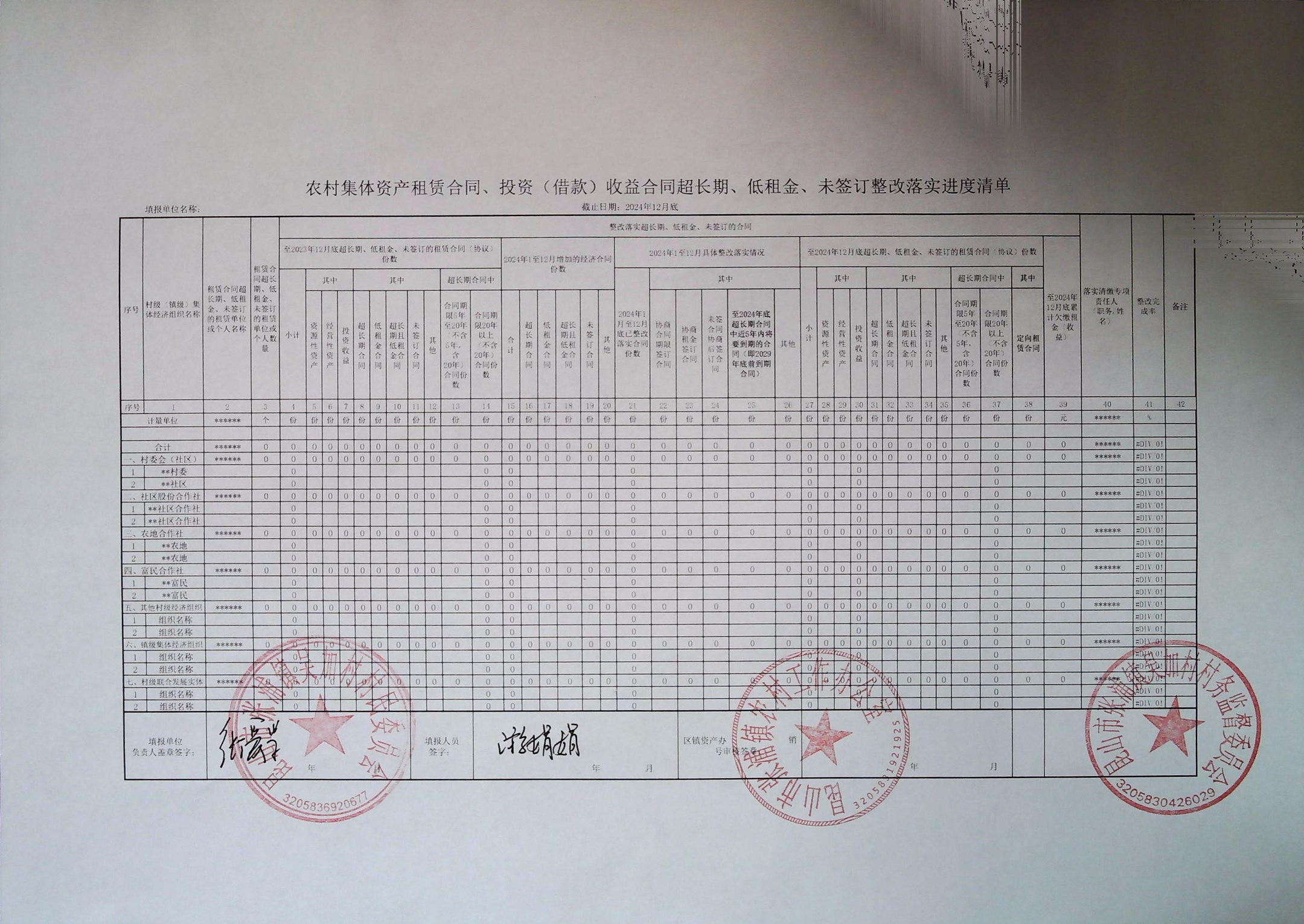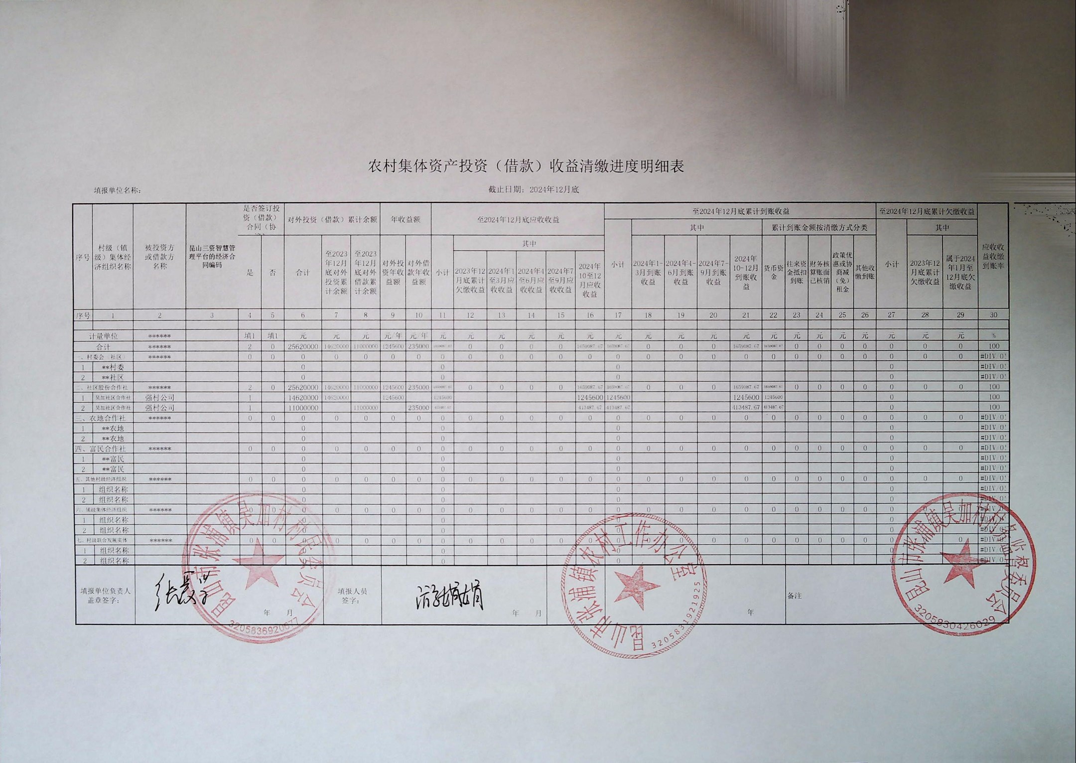 2024年四季度农村集体资产、资源租赁发包经济合同及投资收益执行进度