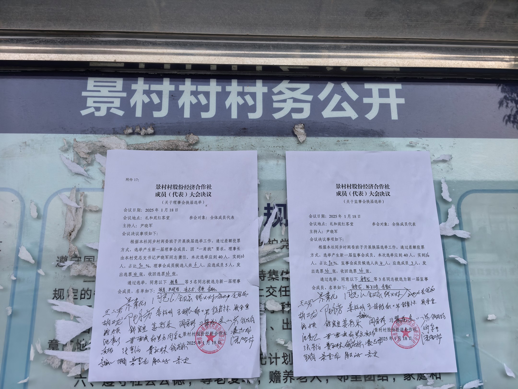 景村村股份经济合作社成员(代表)大会决议(关于理事会、监事会换届选举):