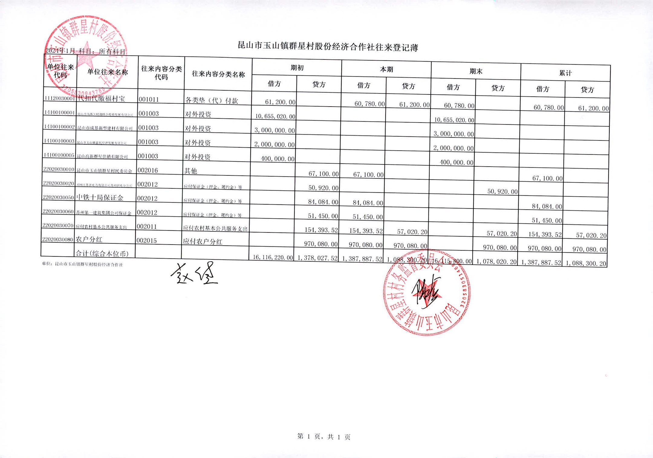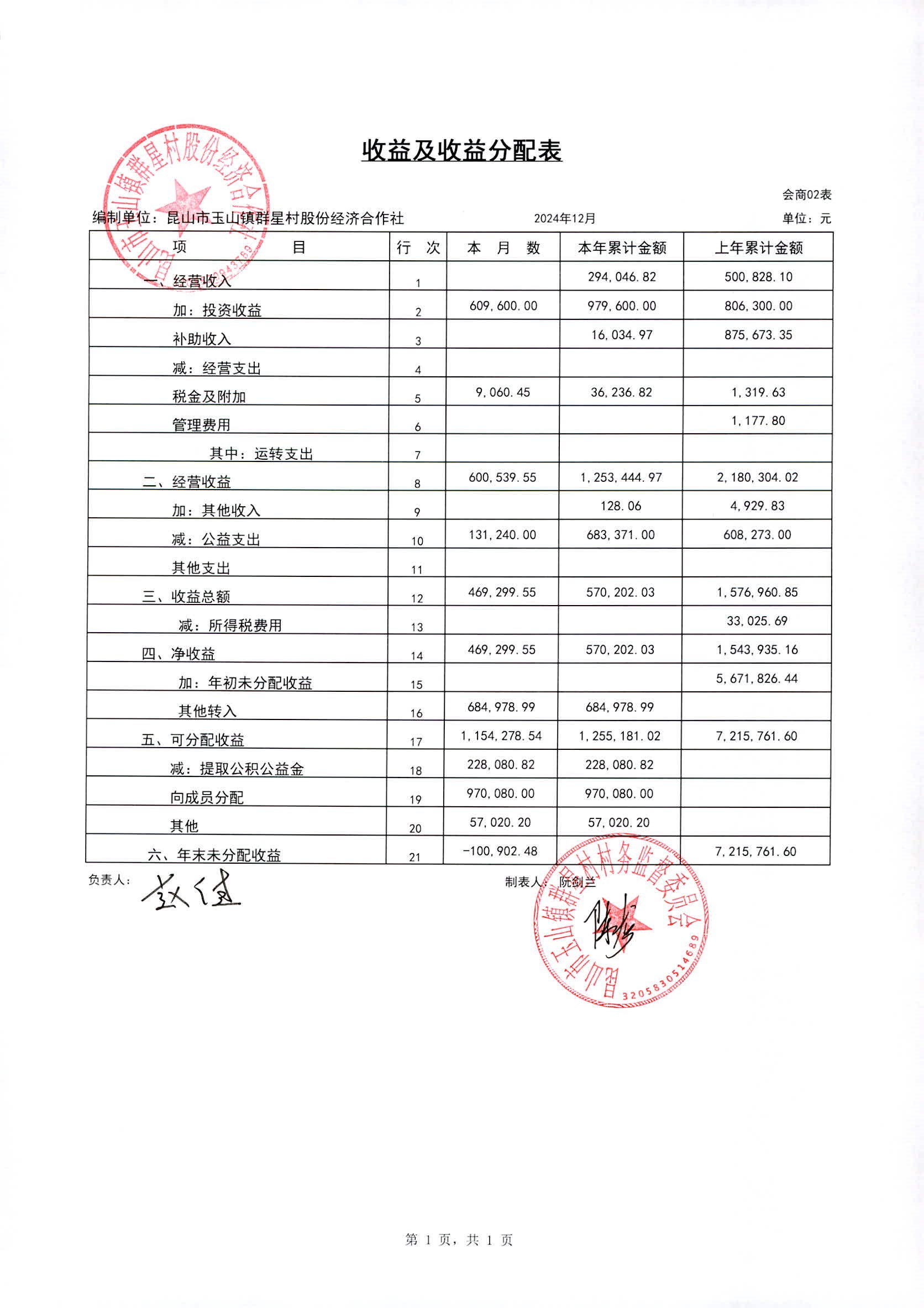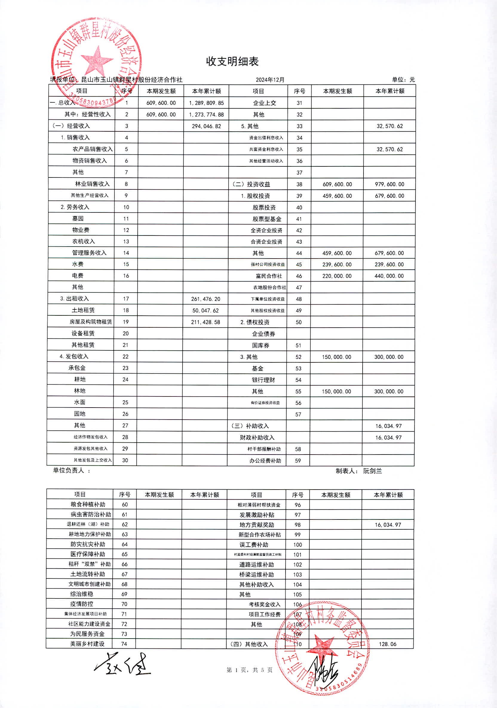 昆山高新区群星村2025年01月份公开股份经济合作社2024年12月财务信息