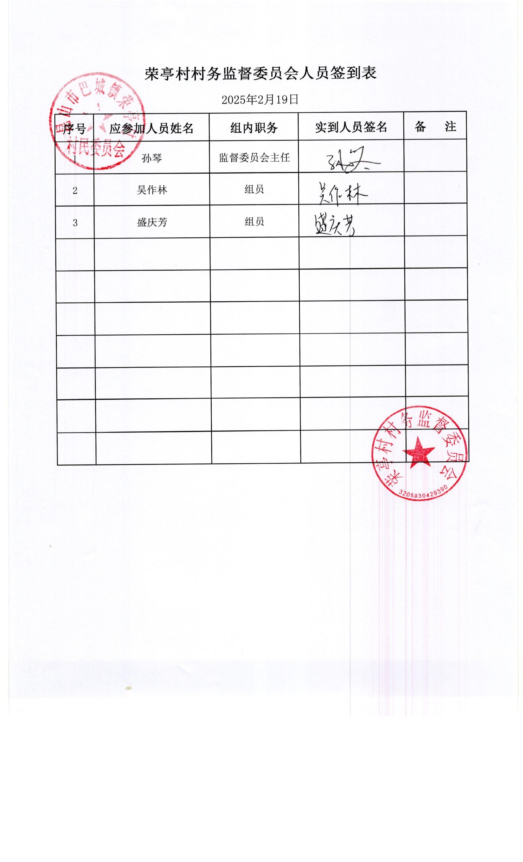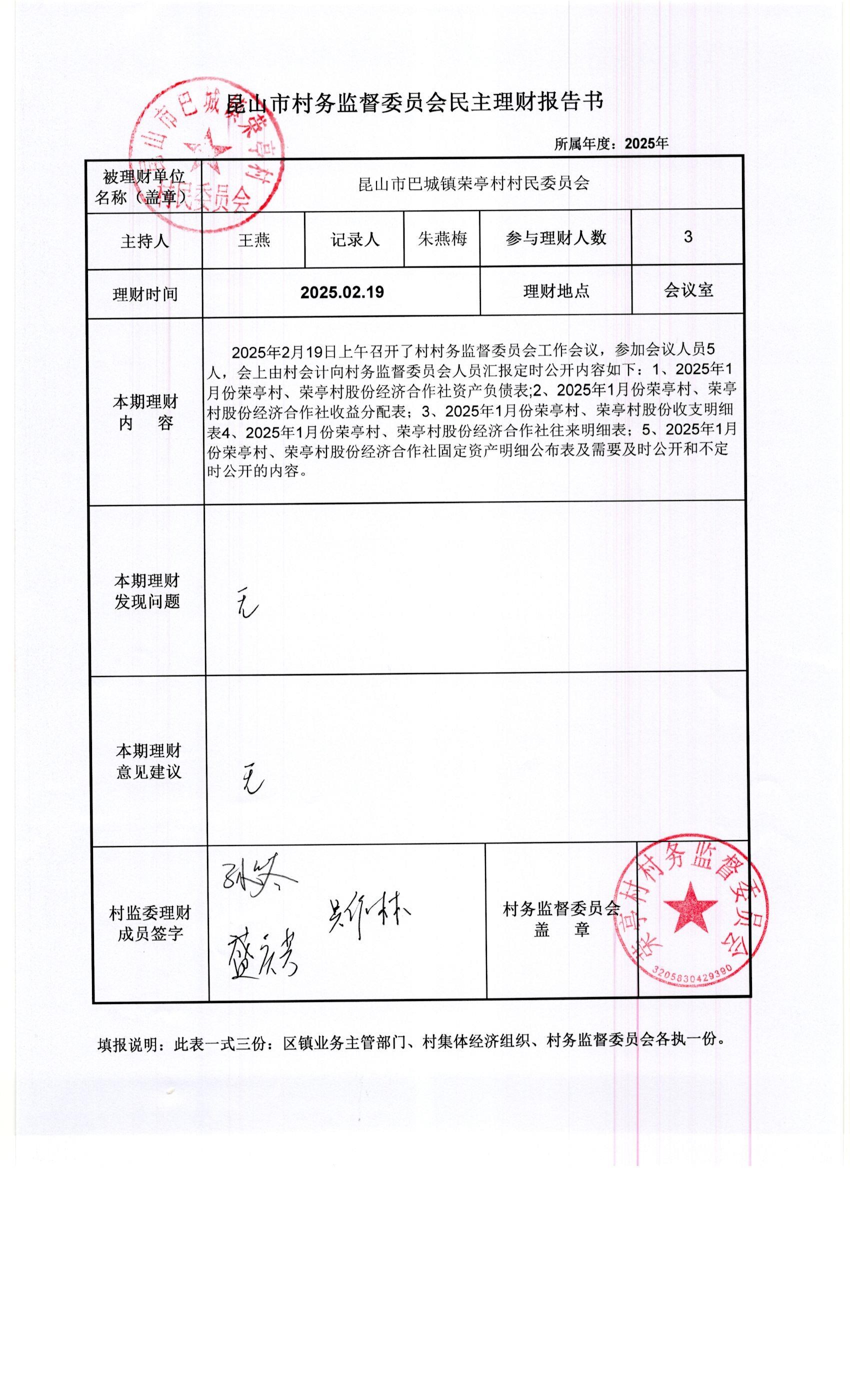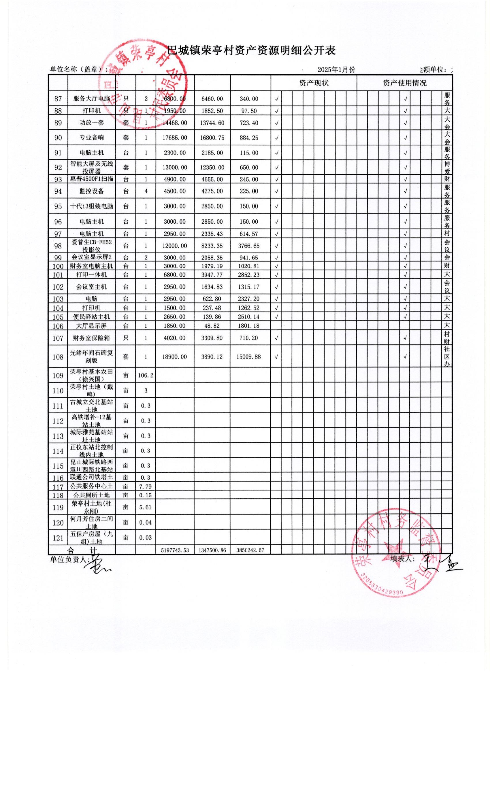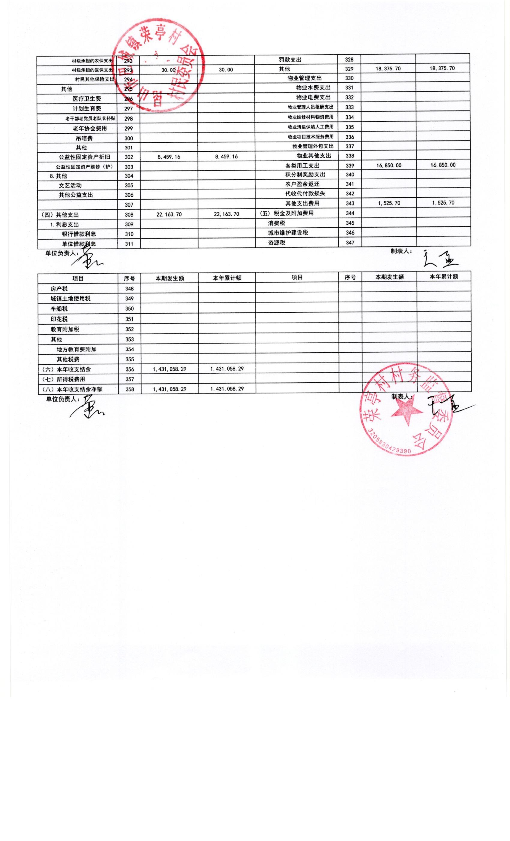 荣亭村2025年1月份财务公开