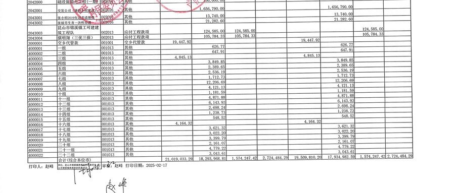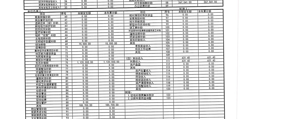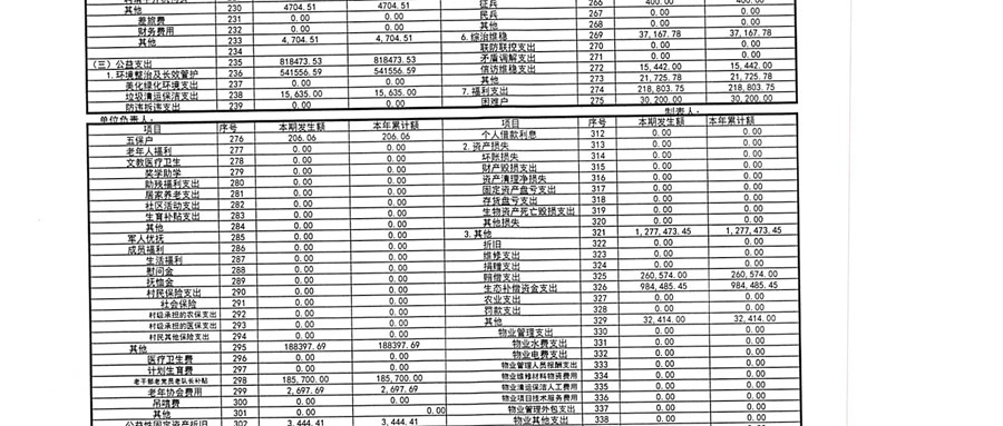 2025年1月村财务公开