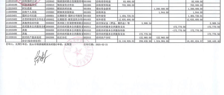 2025年1月份股份经济合作社财务公开