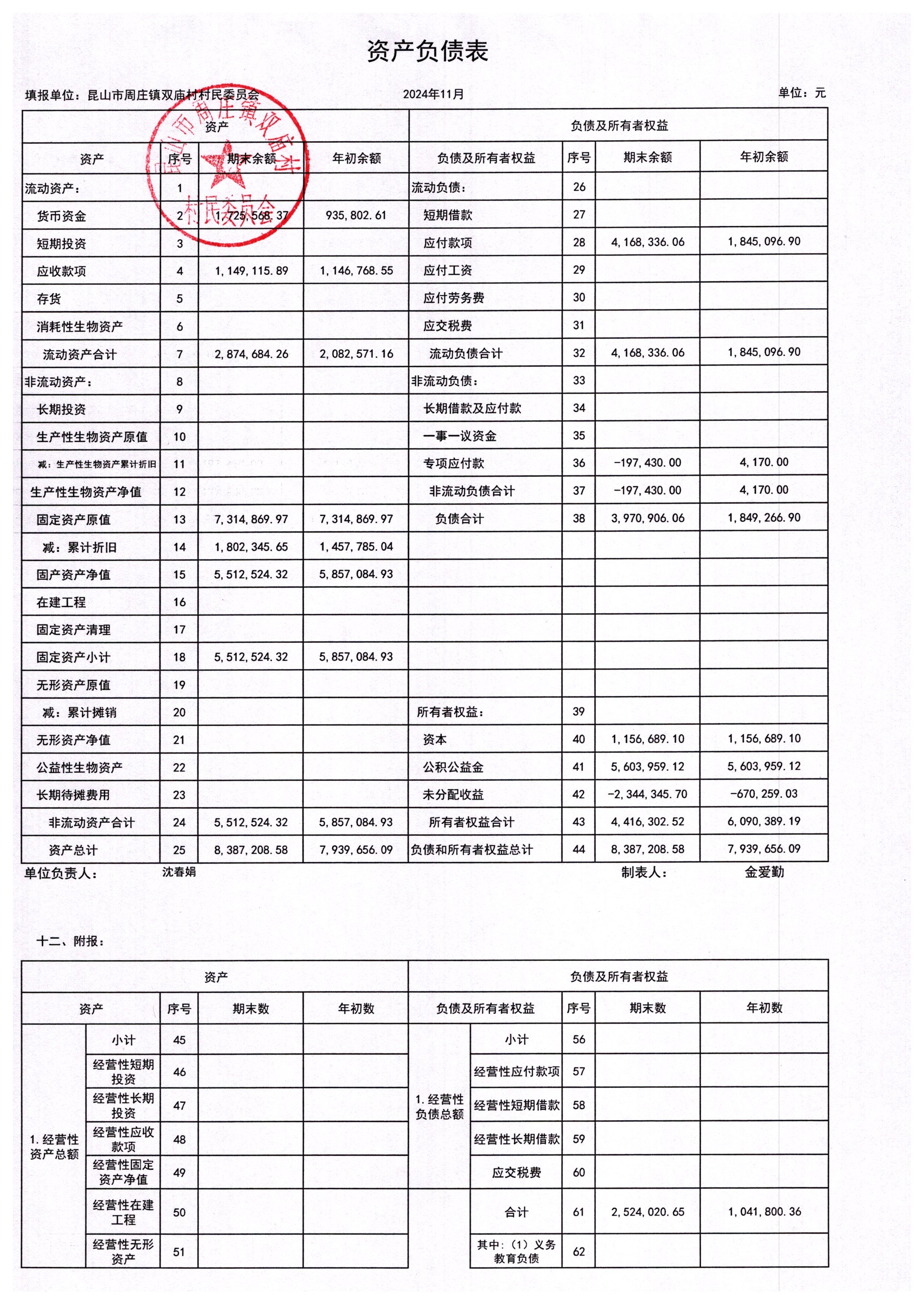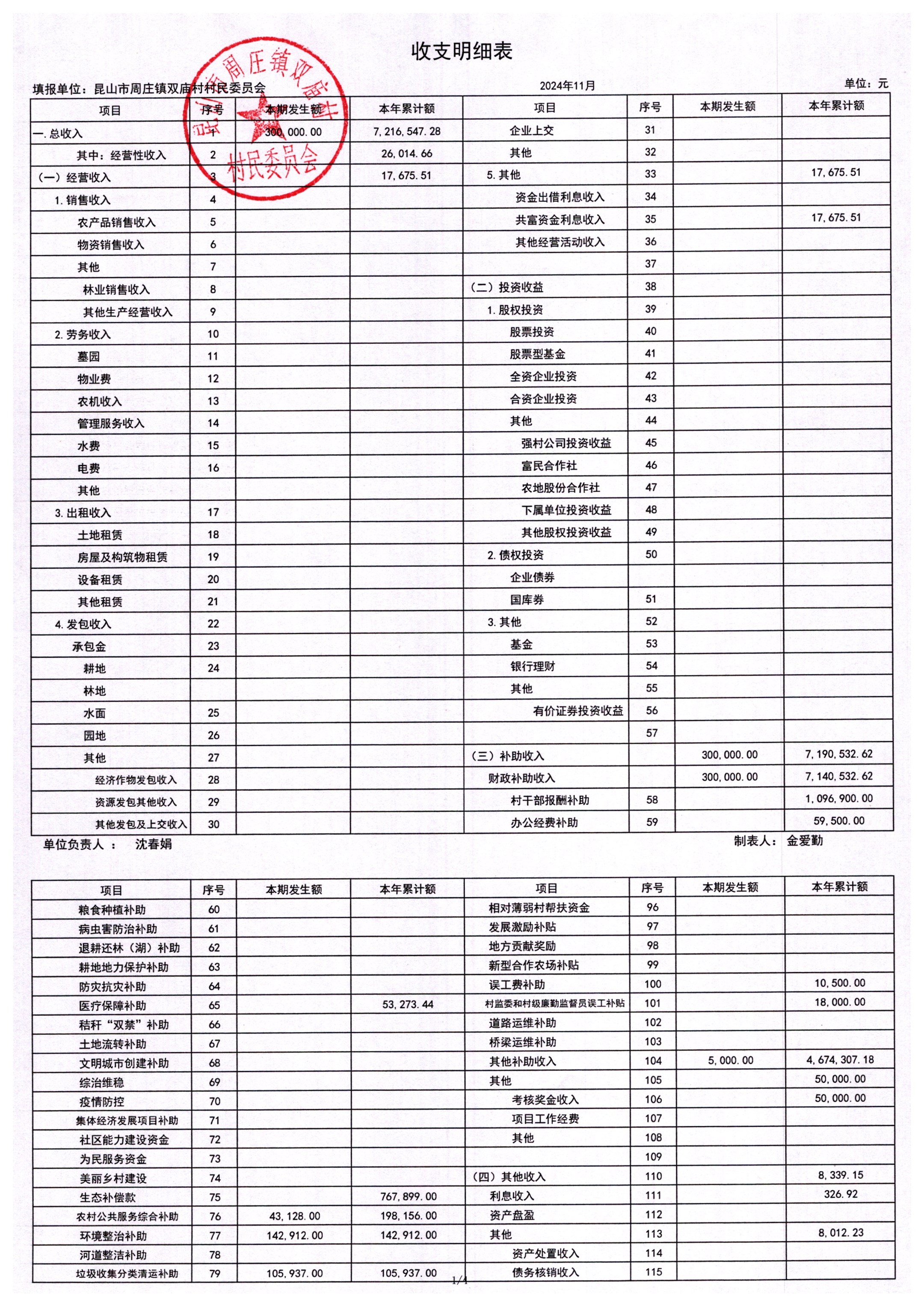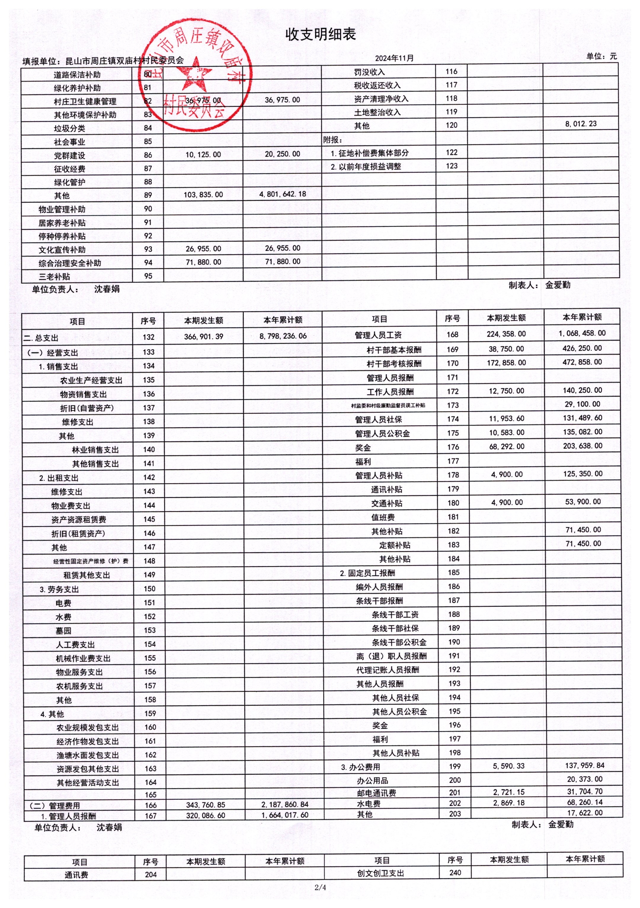 2024年11月财务公开-双庙村财务公开