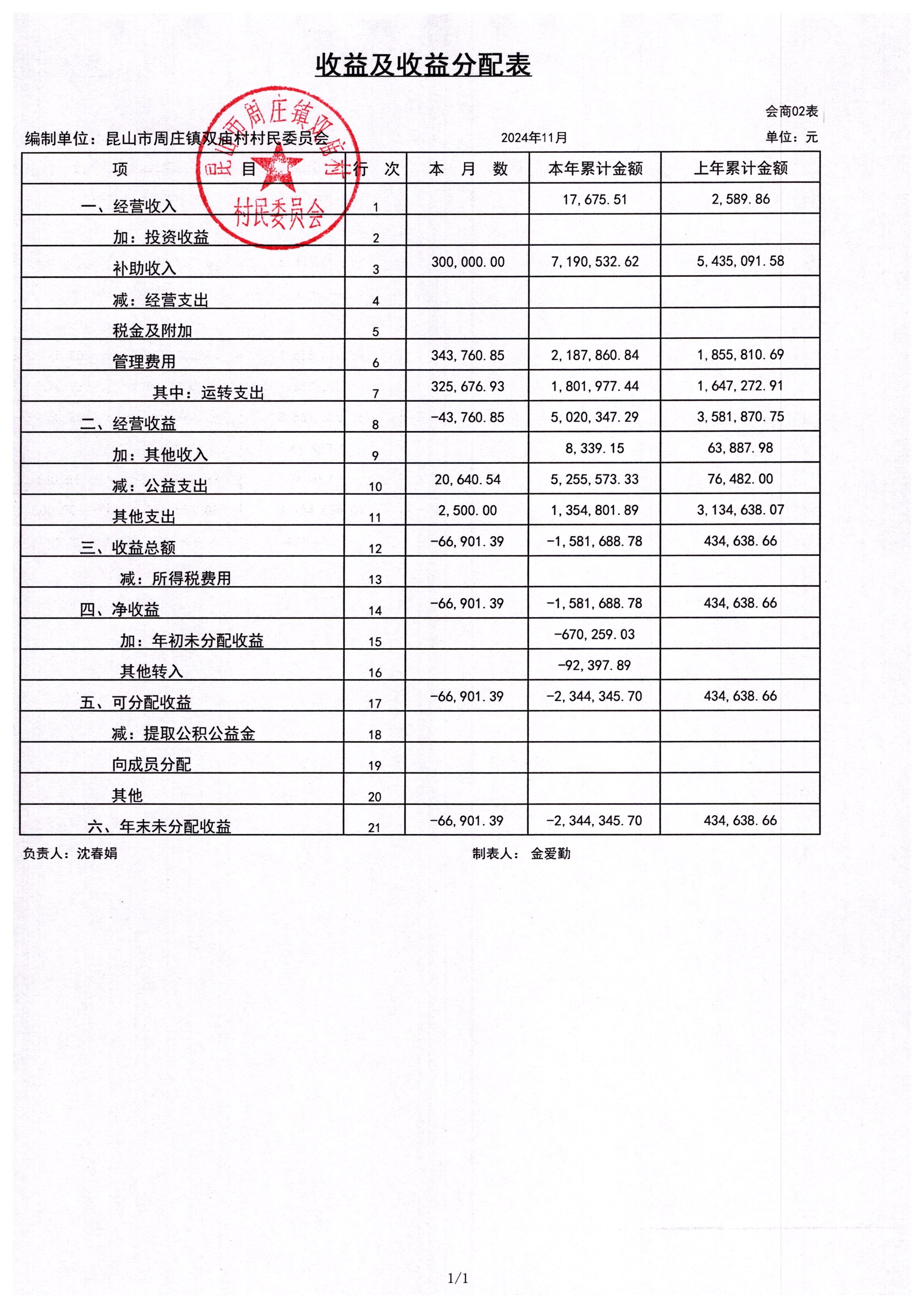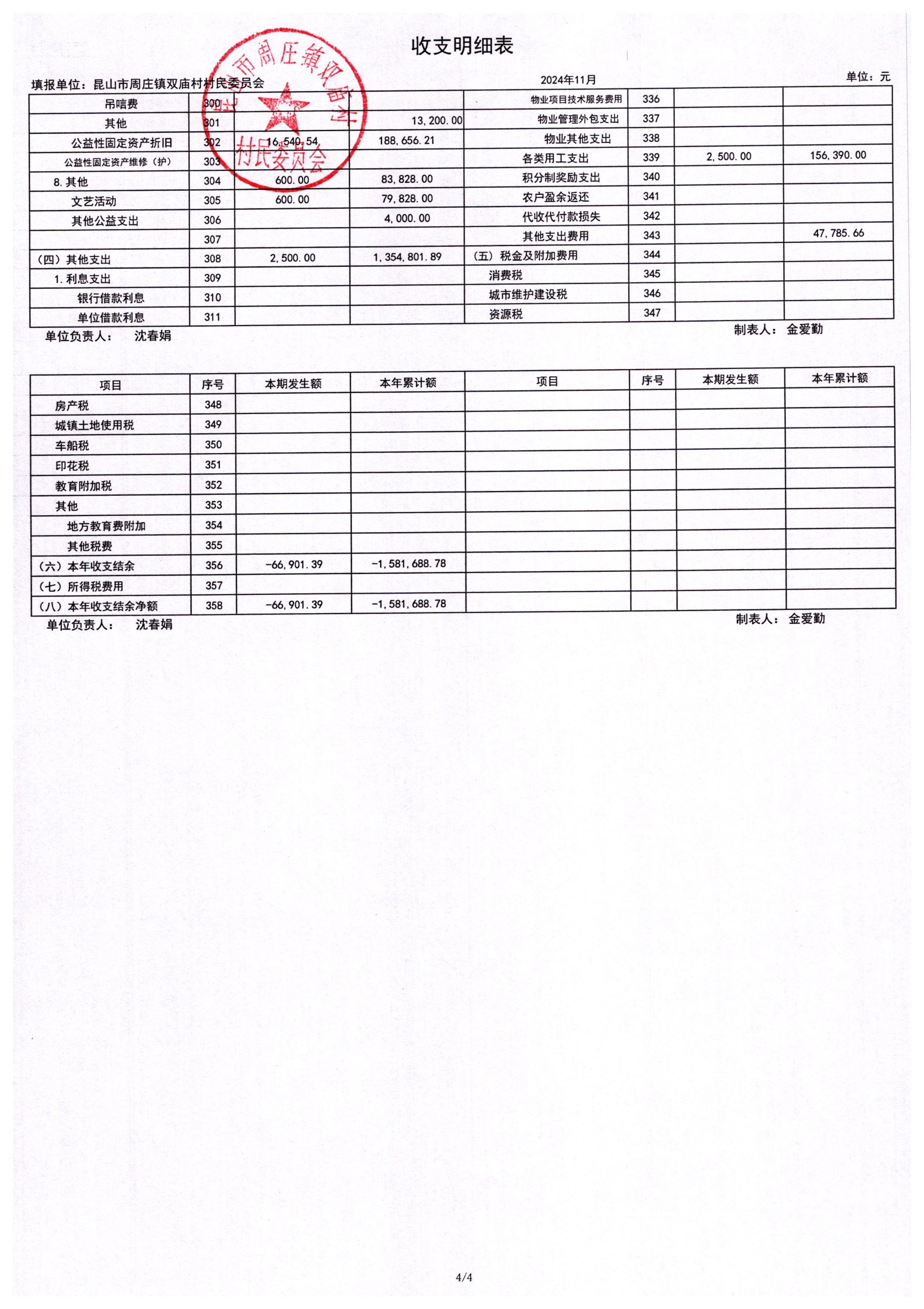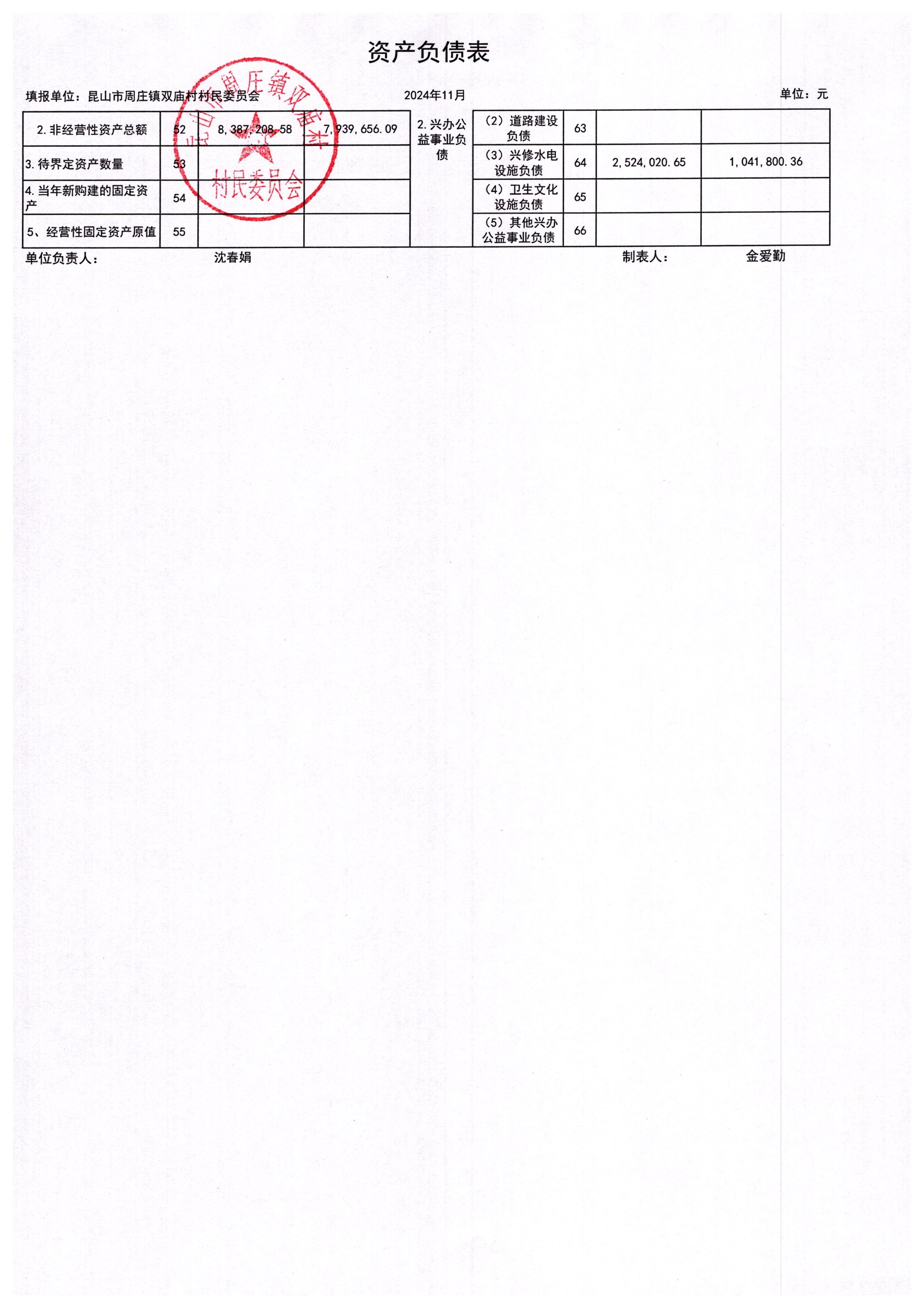 2024年11月财务公开-双庙村财务公开