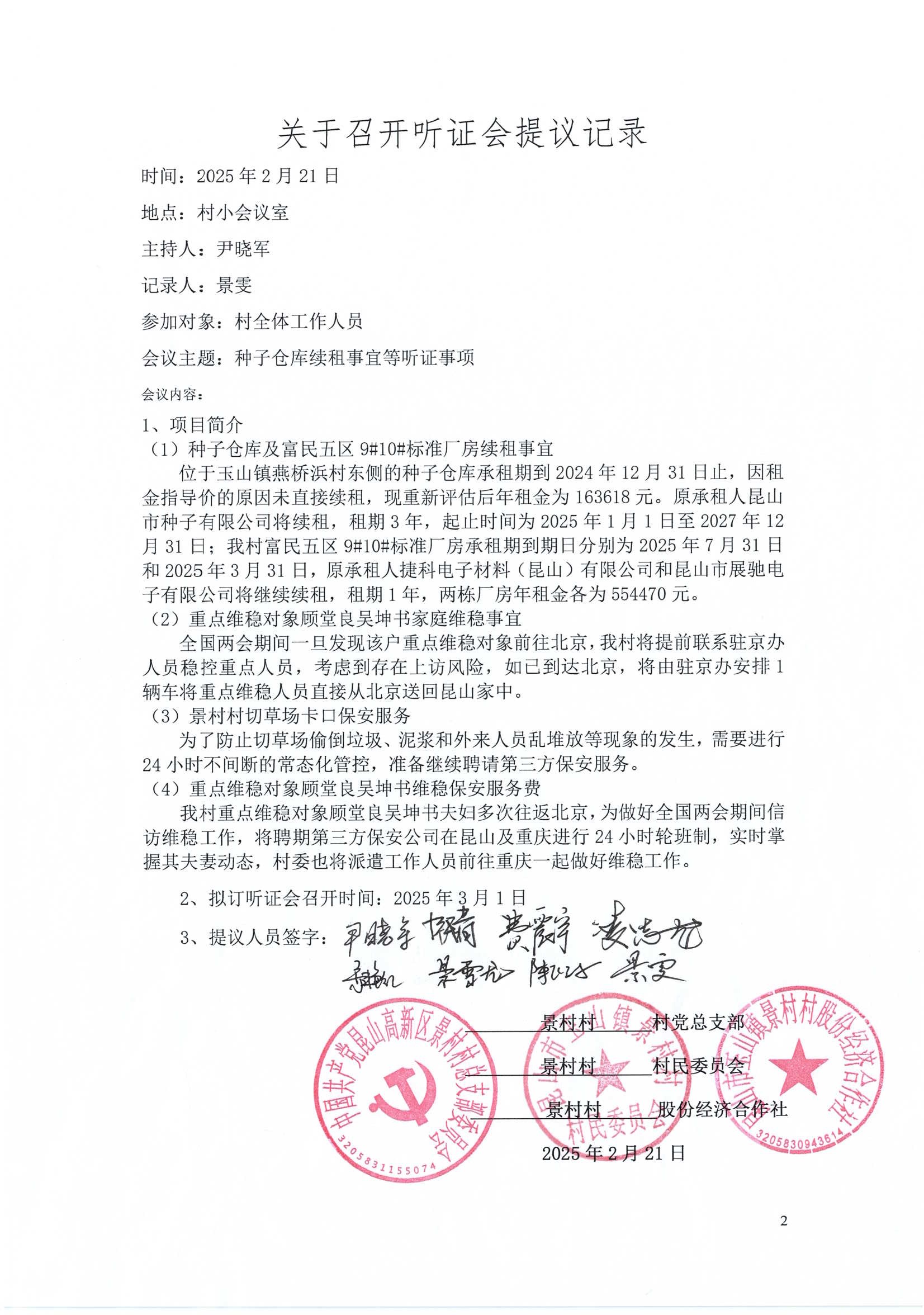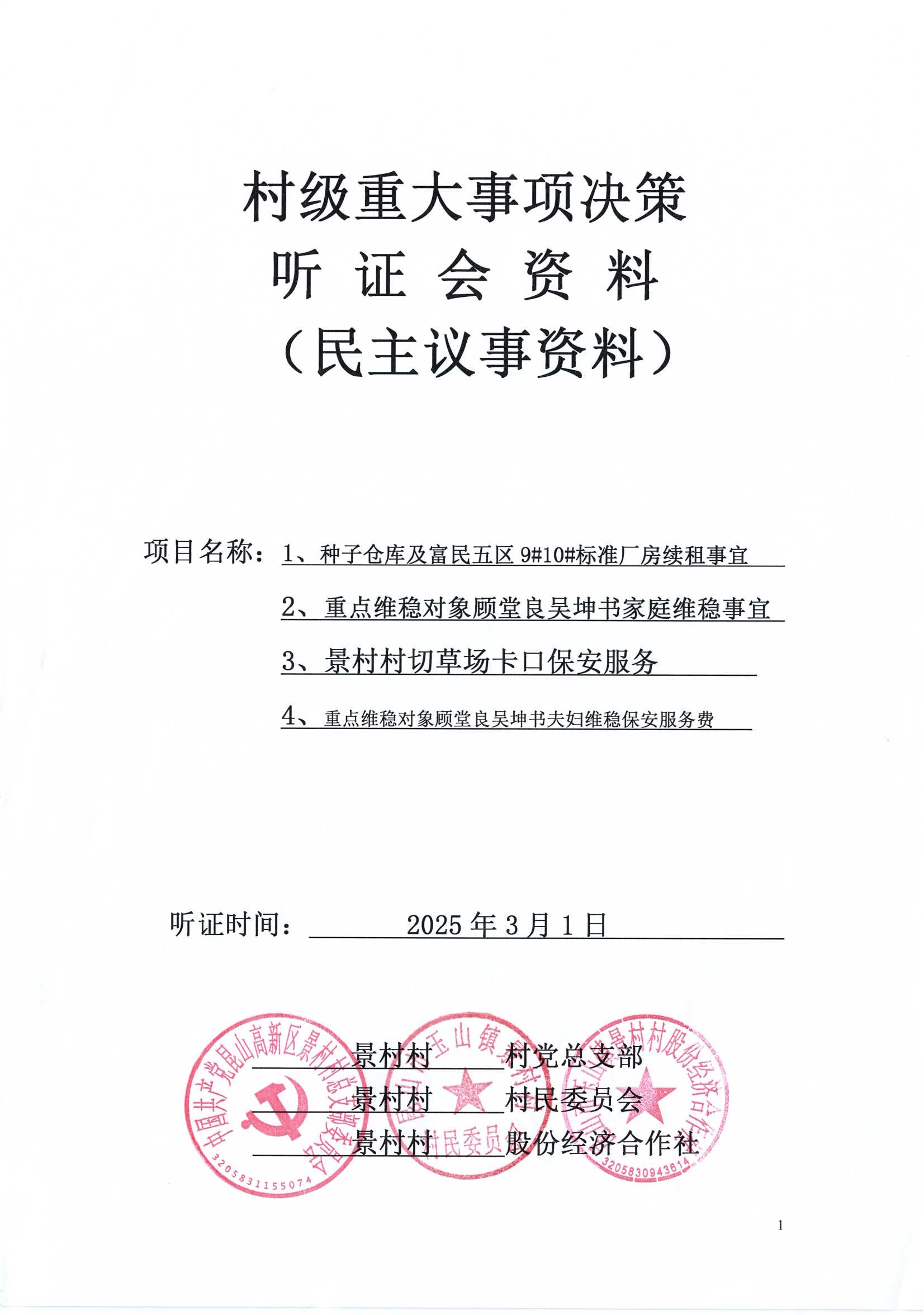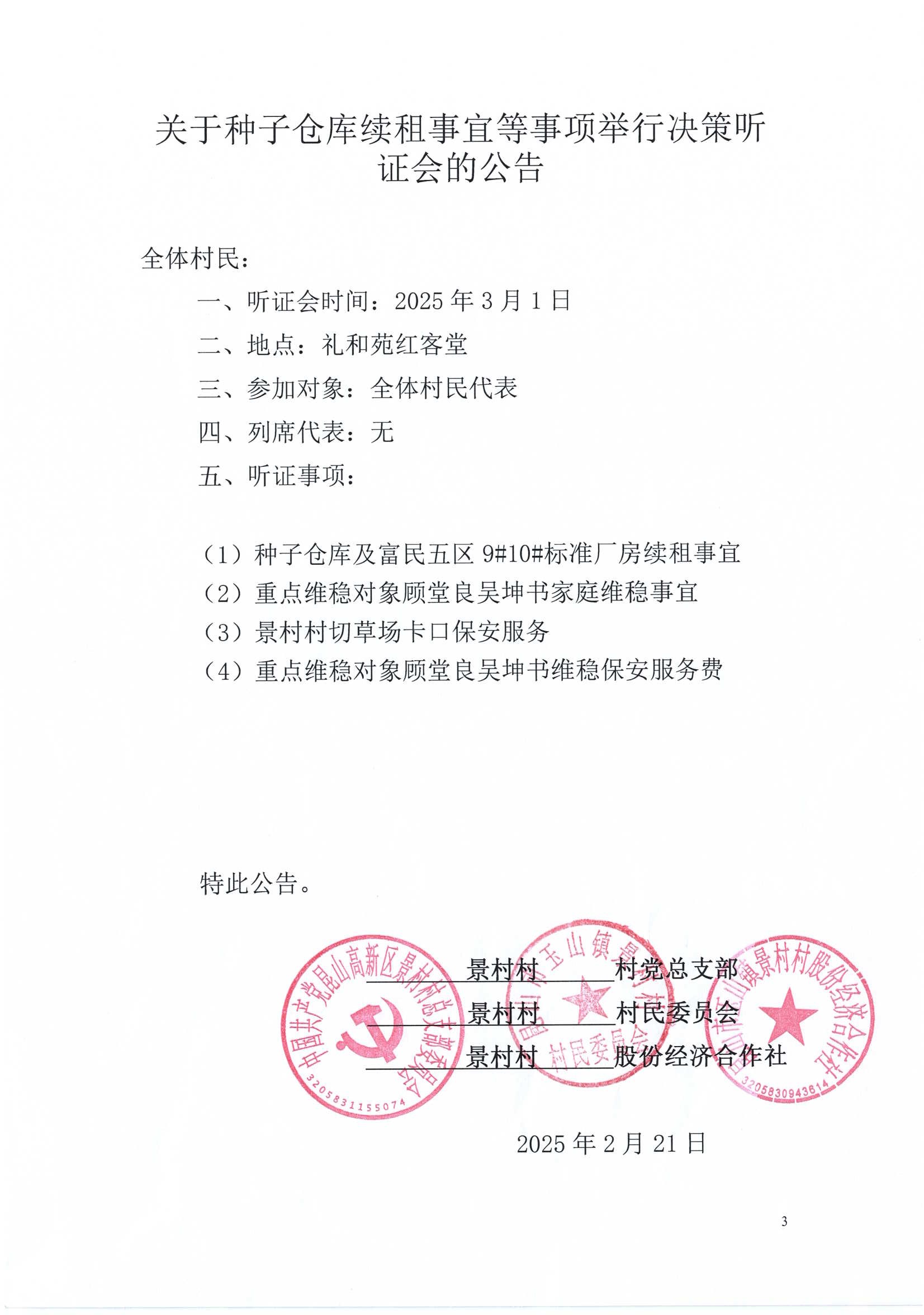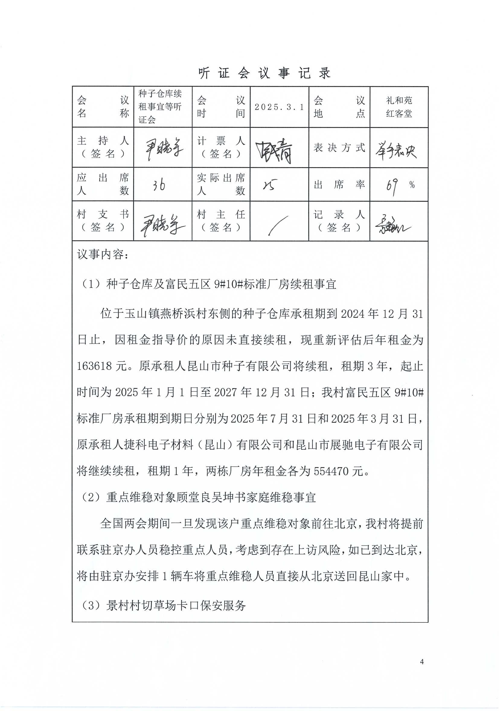 种子仓库及富民五区9#10#标准厂房续租事宜等4个听证会