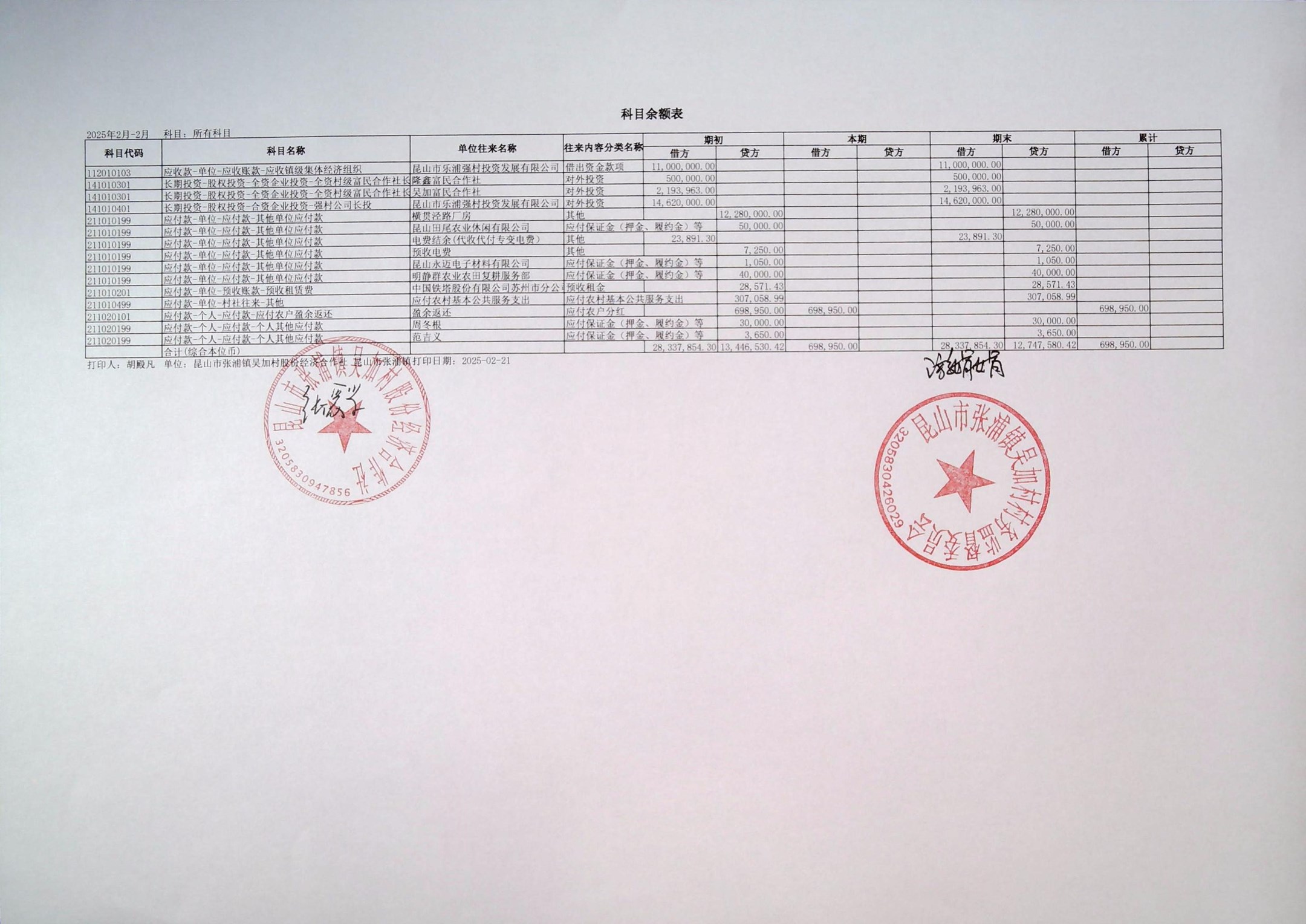 2025年2月财务公开