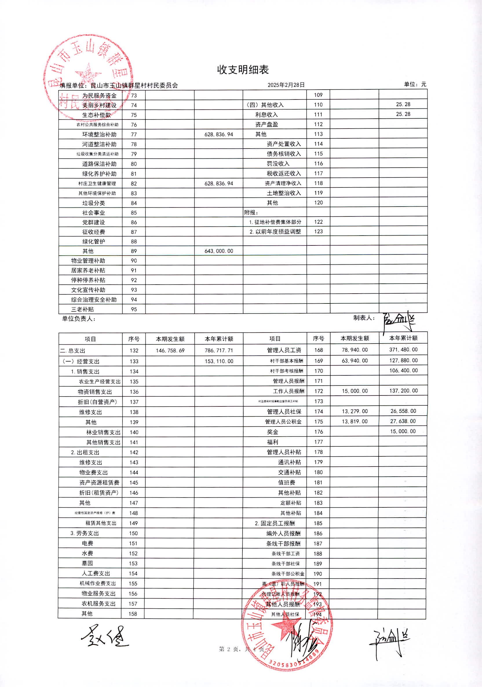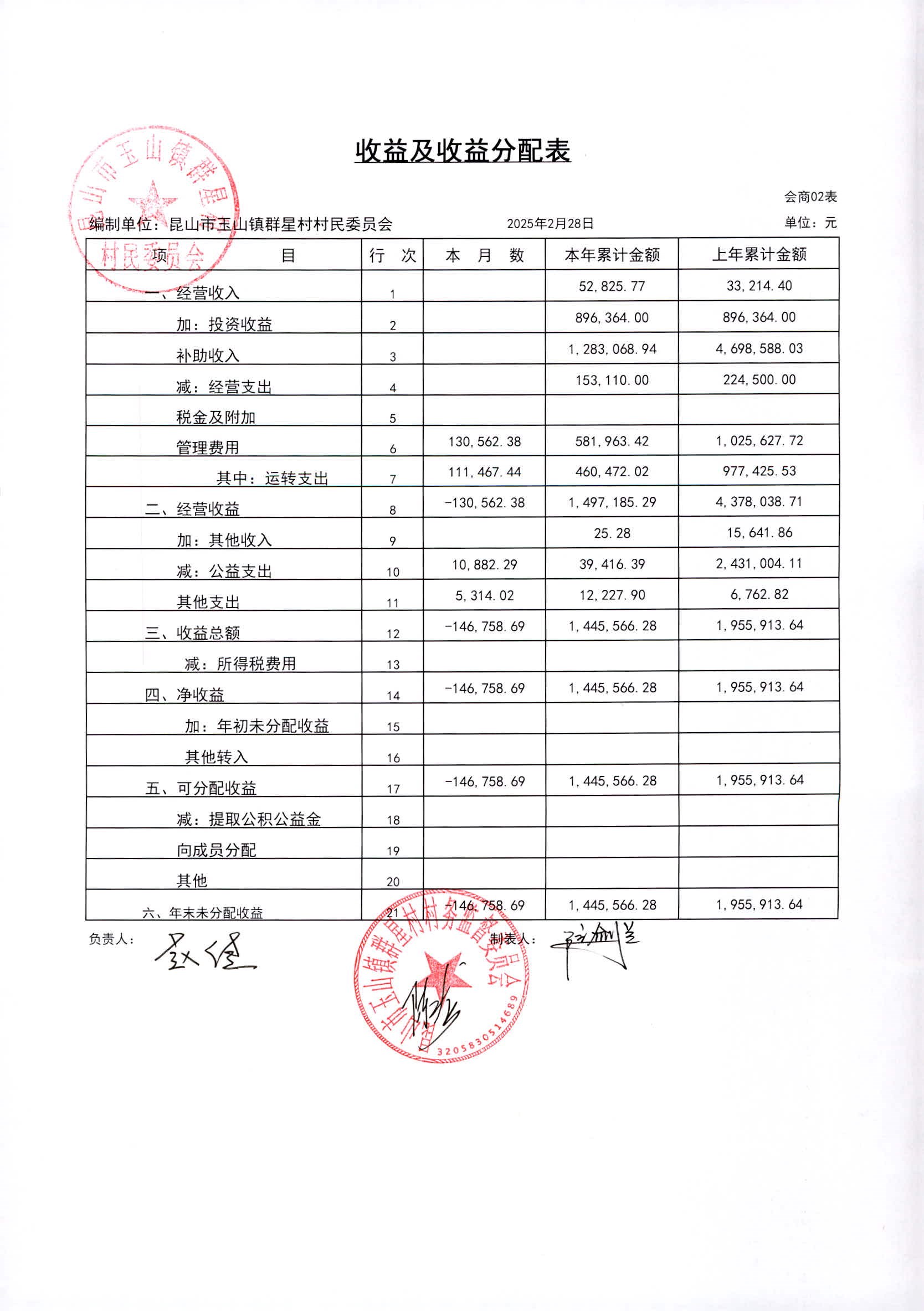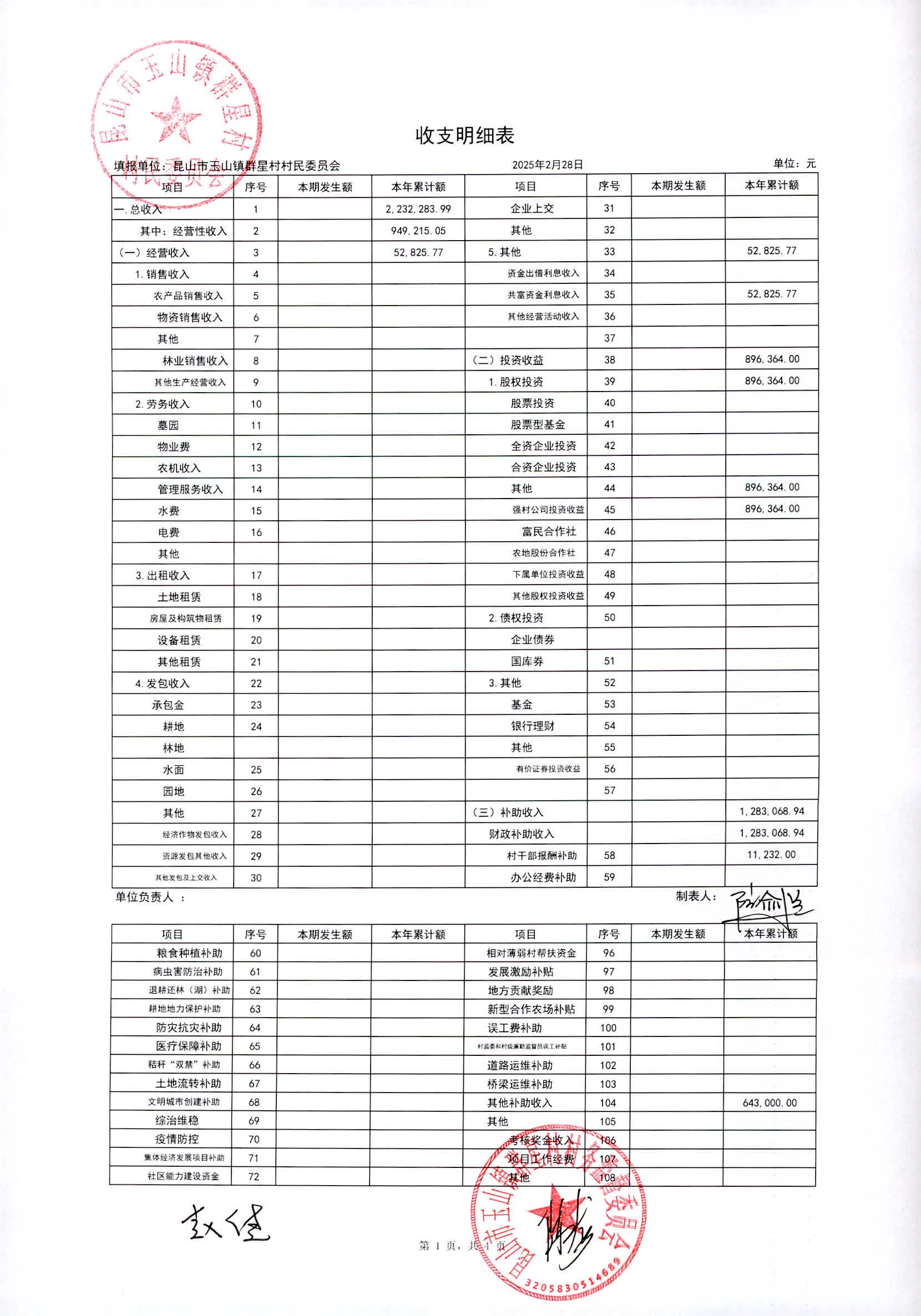 昆山高新区群星村2025年03月份公开村民委员会02月财务信息
