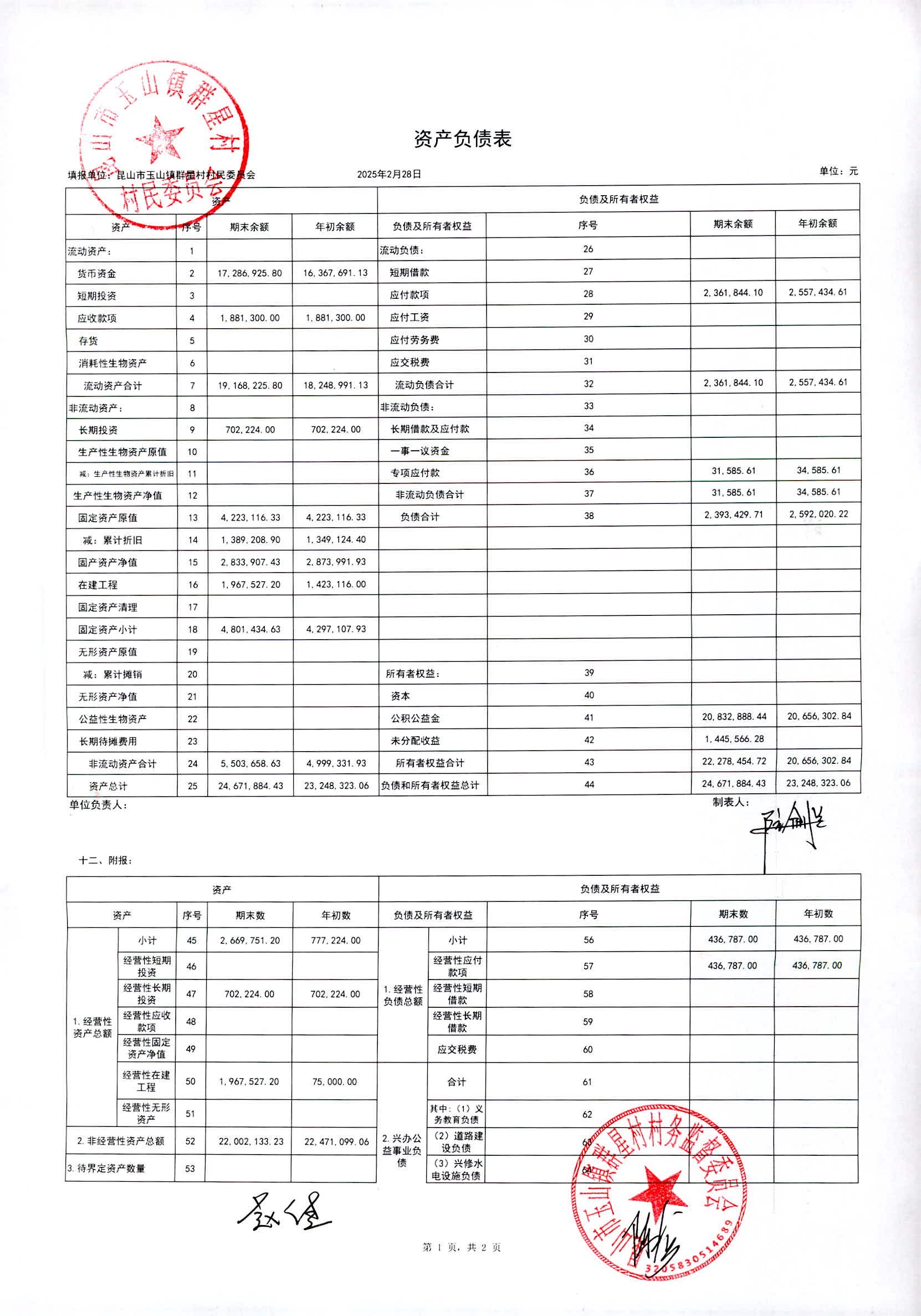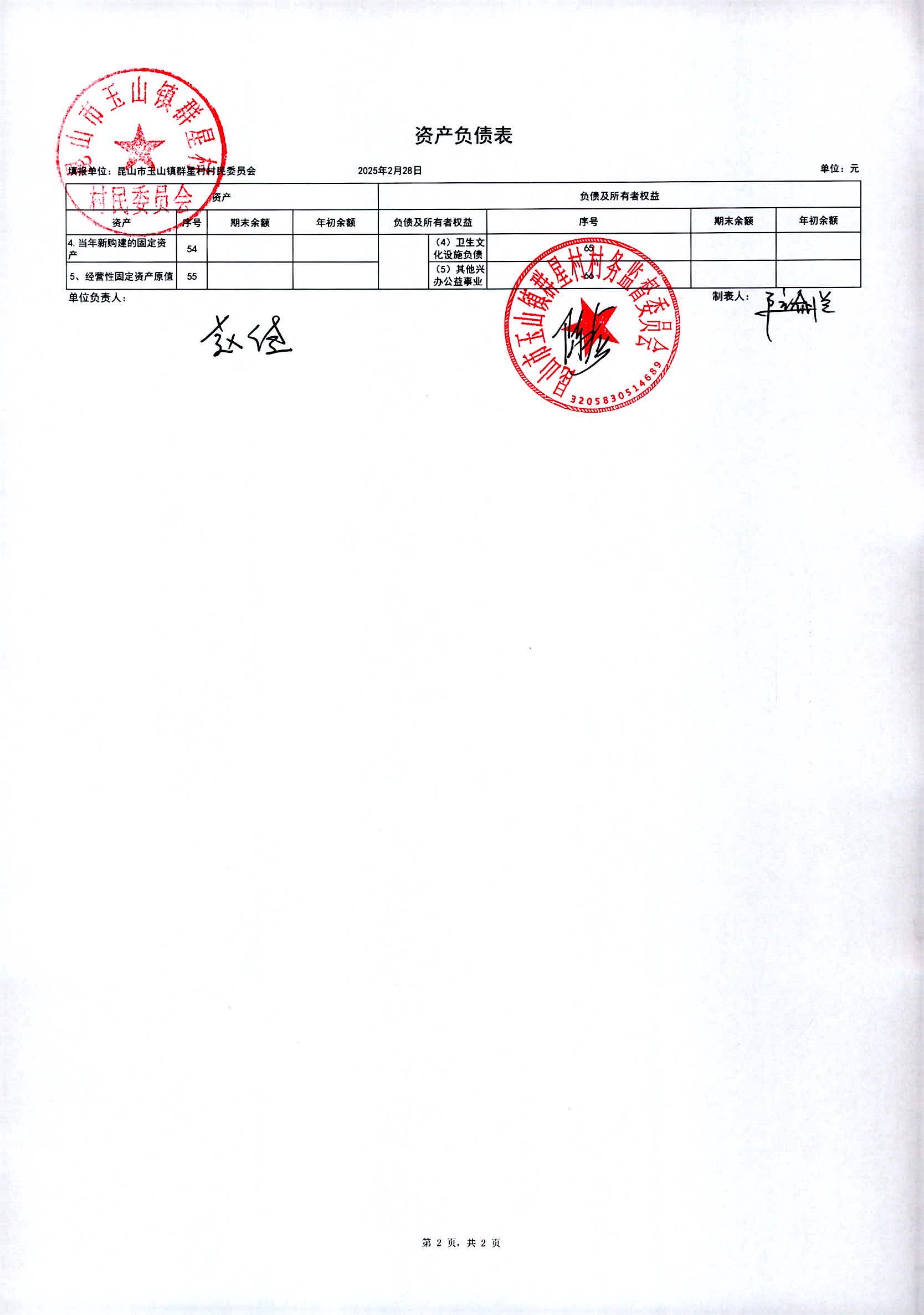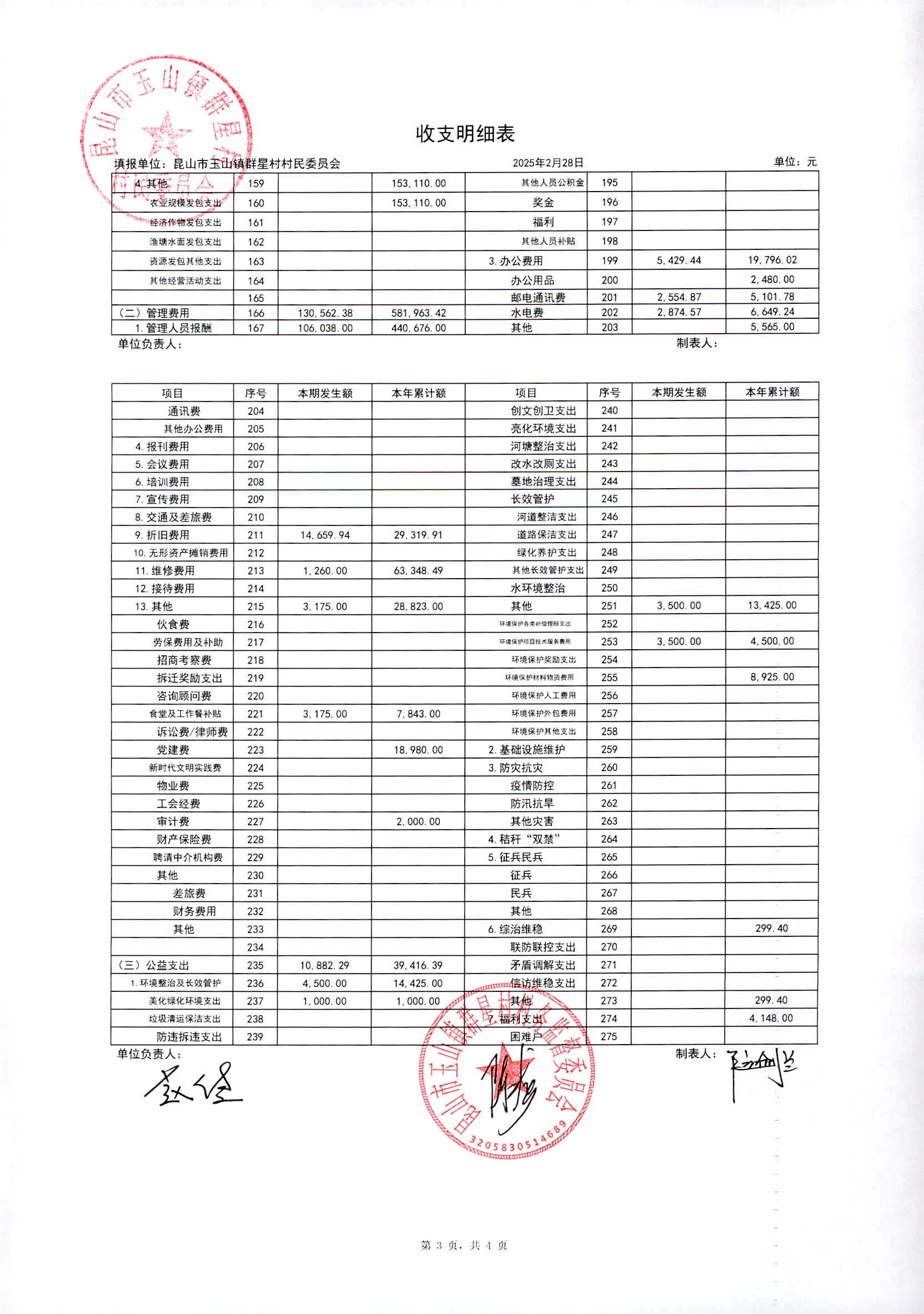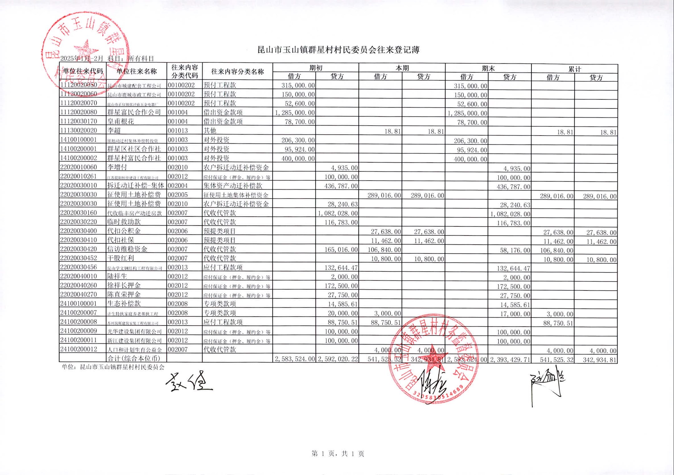昆山高新区群星村2025年03月份公开村民委员会02月财务信息