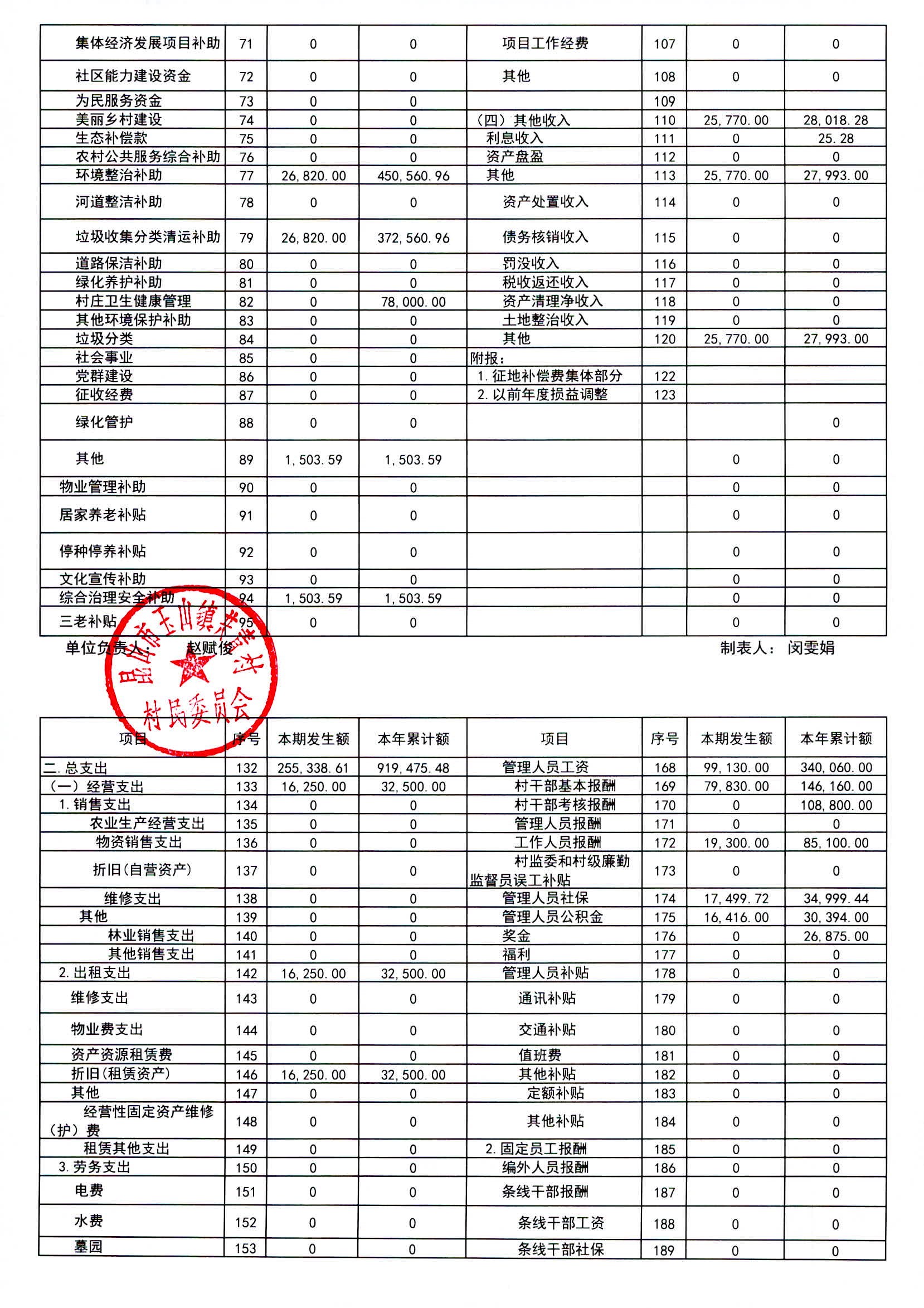 2025年2月共青村收支明细表