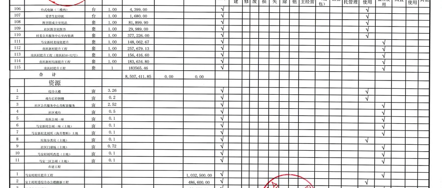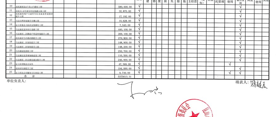 村盖章事项名录