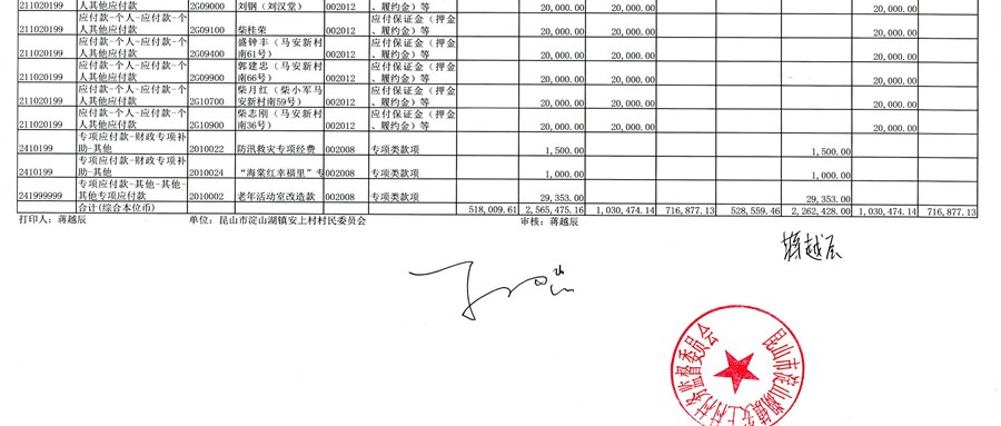2025年2月安上村村民委员会财务公开