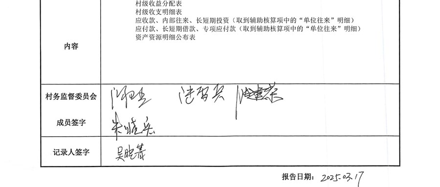 2025年周家浜村3月份财务公开