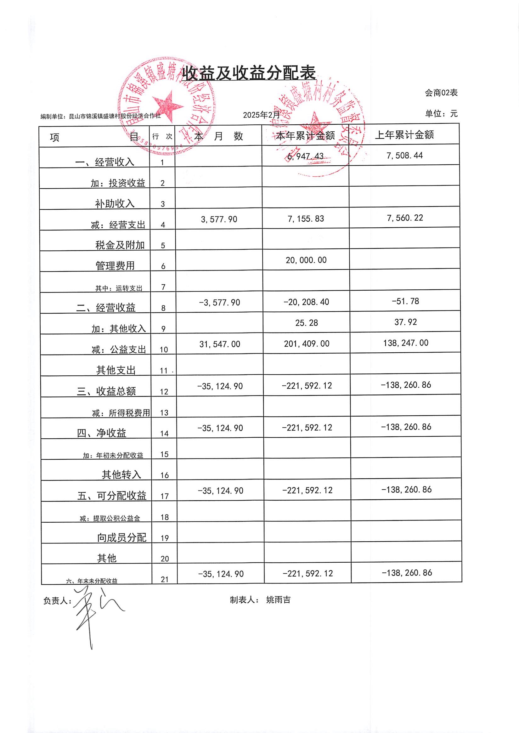 昆山市锦溪镇盛塘村2025年第一季度2月社区财务公开资料