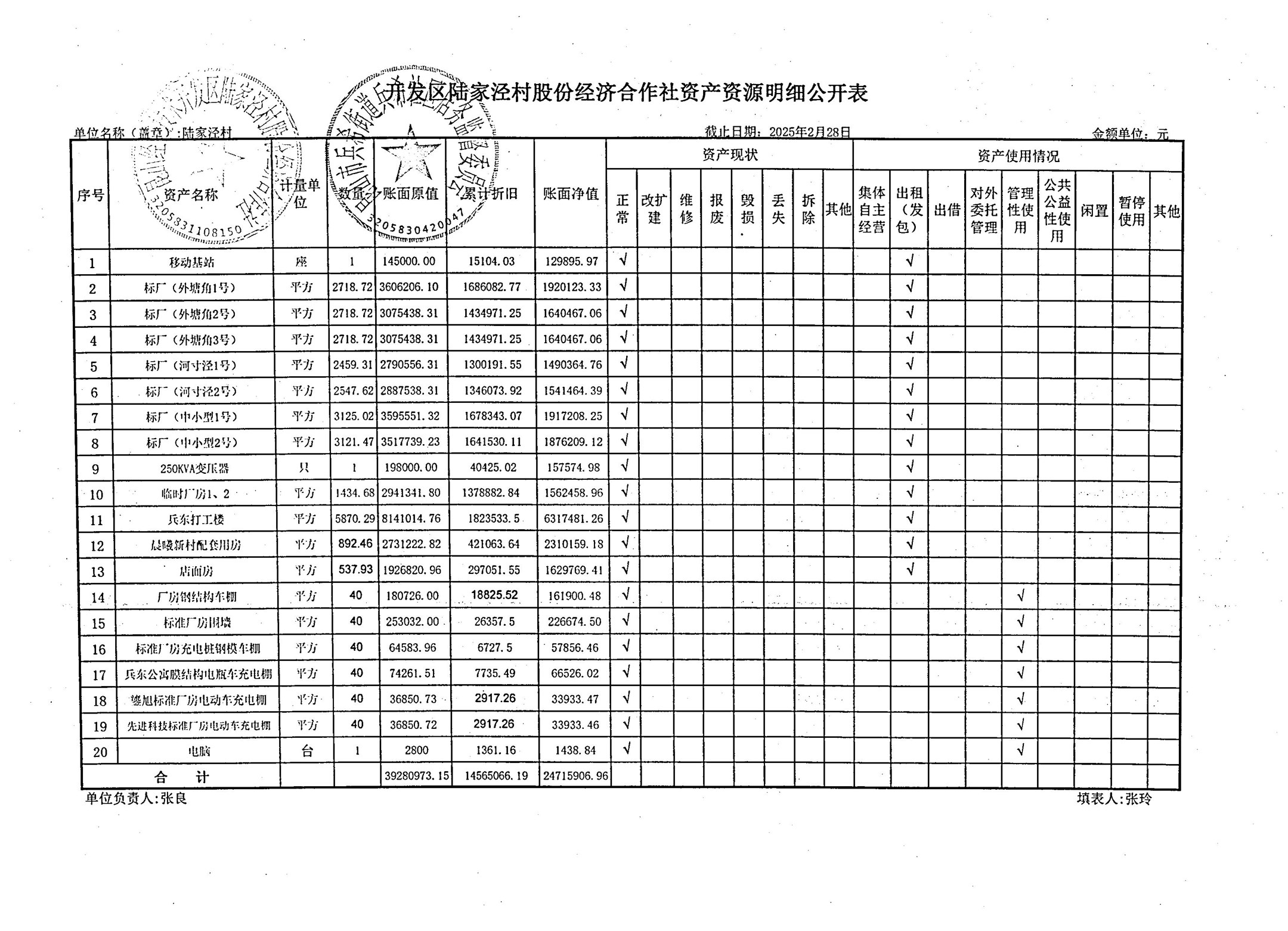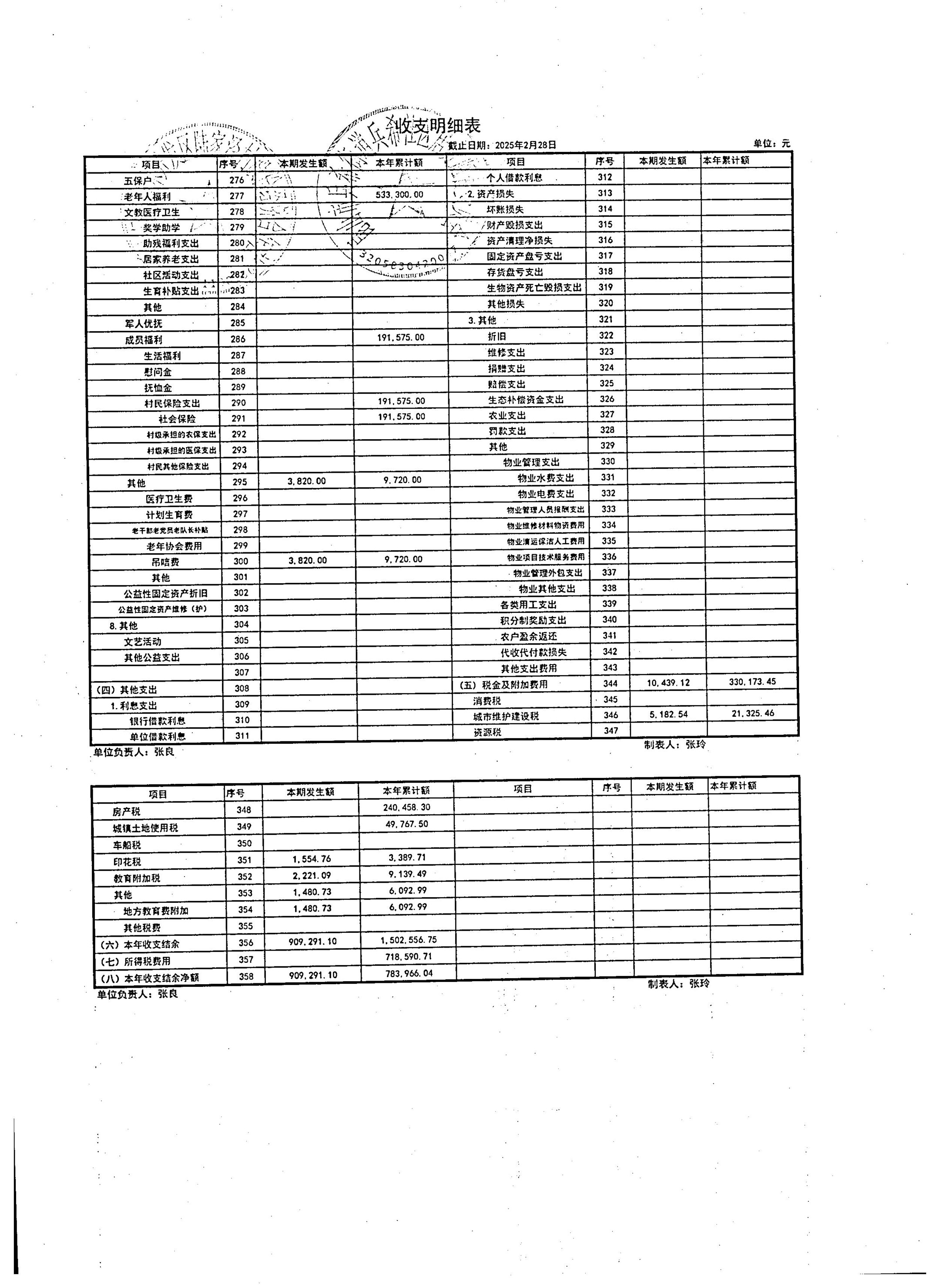 2025年3月陆家泾村财务公开