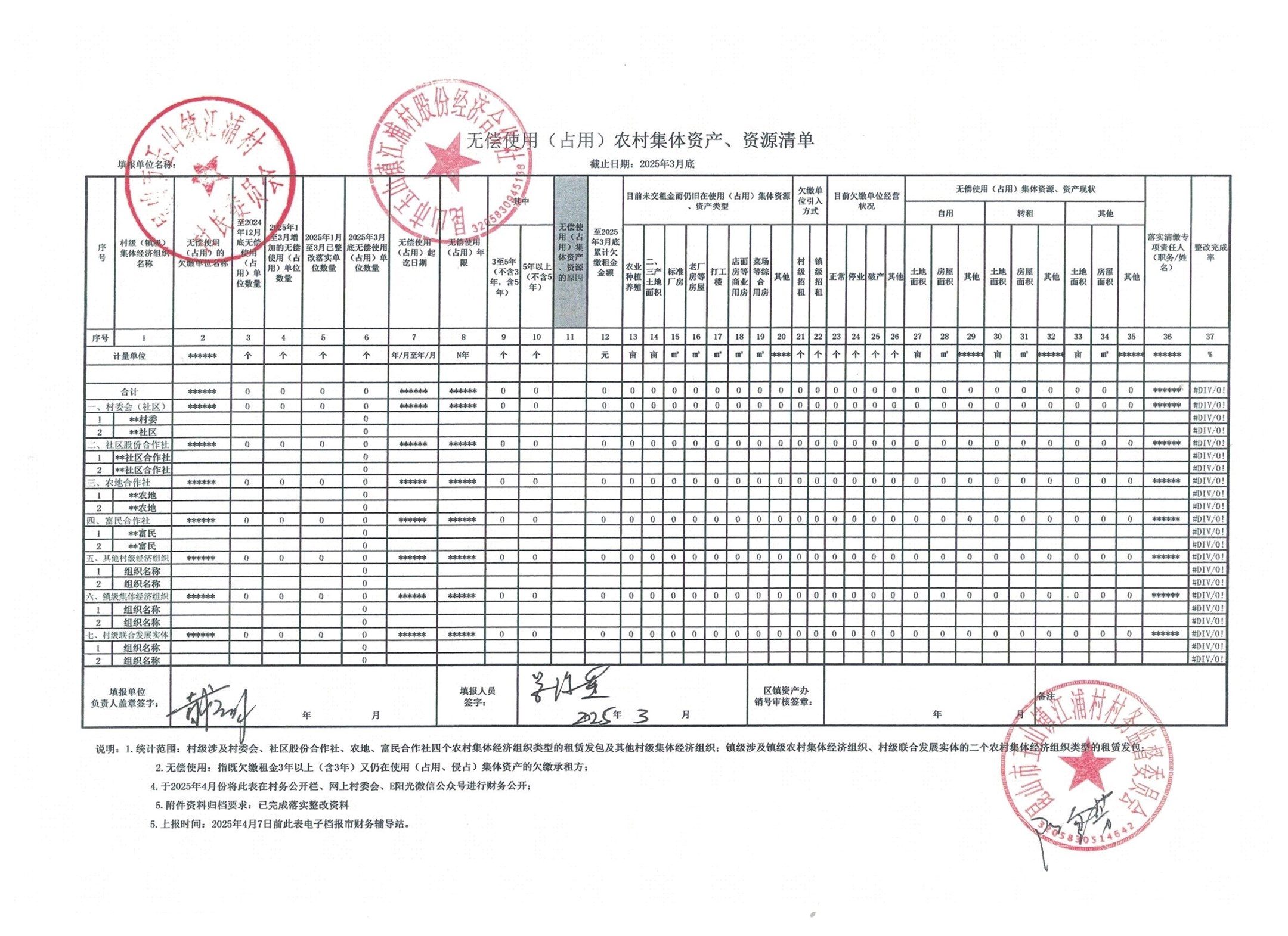 2025年3月份江浦村、江浦社区股份经济合作社无偿使用(占用)农村集体资产、资源清单