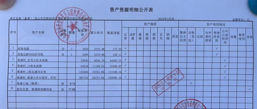 2025年巷浦村股份经济合作社3月份定期财务公示