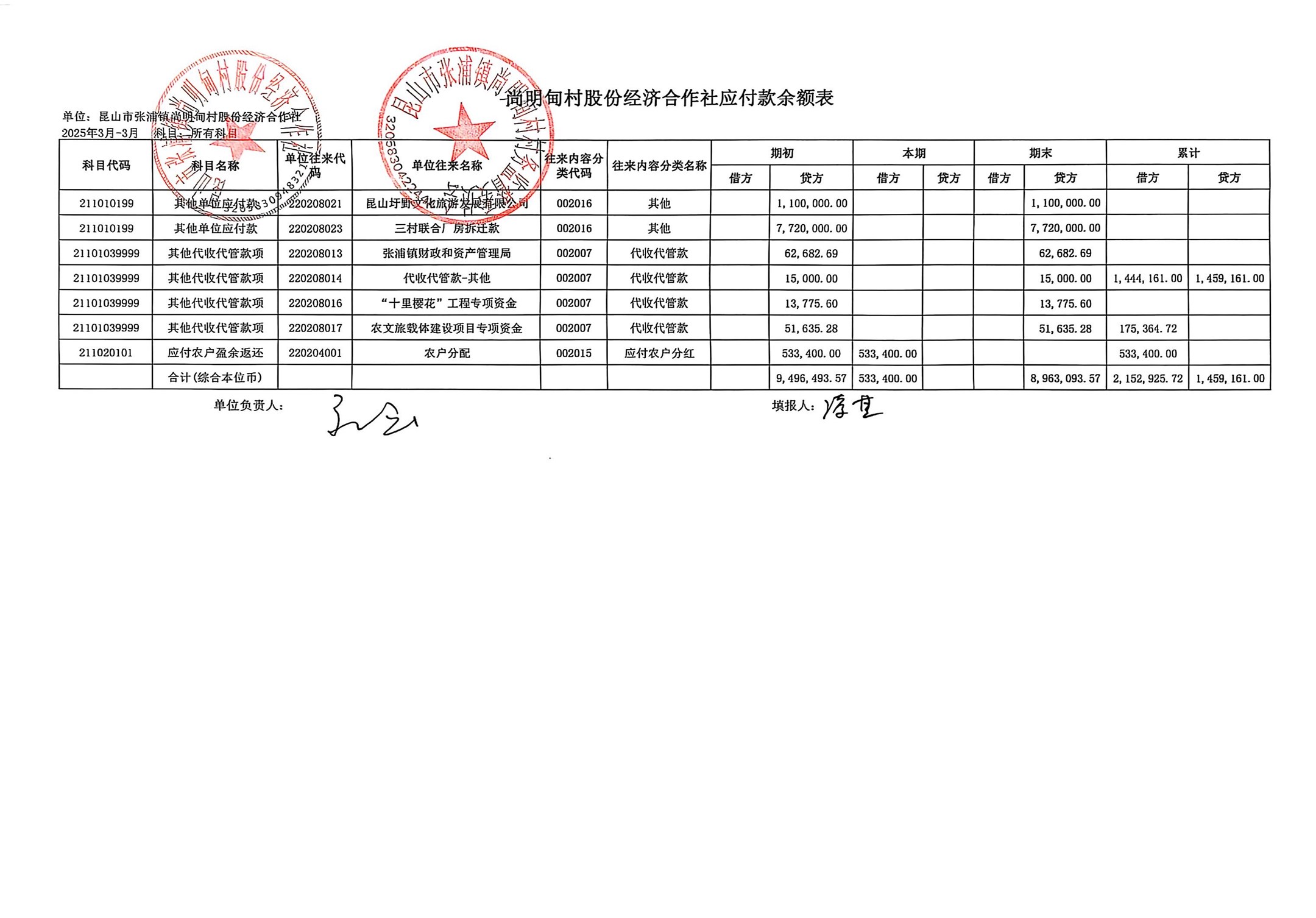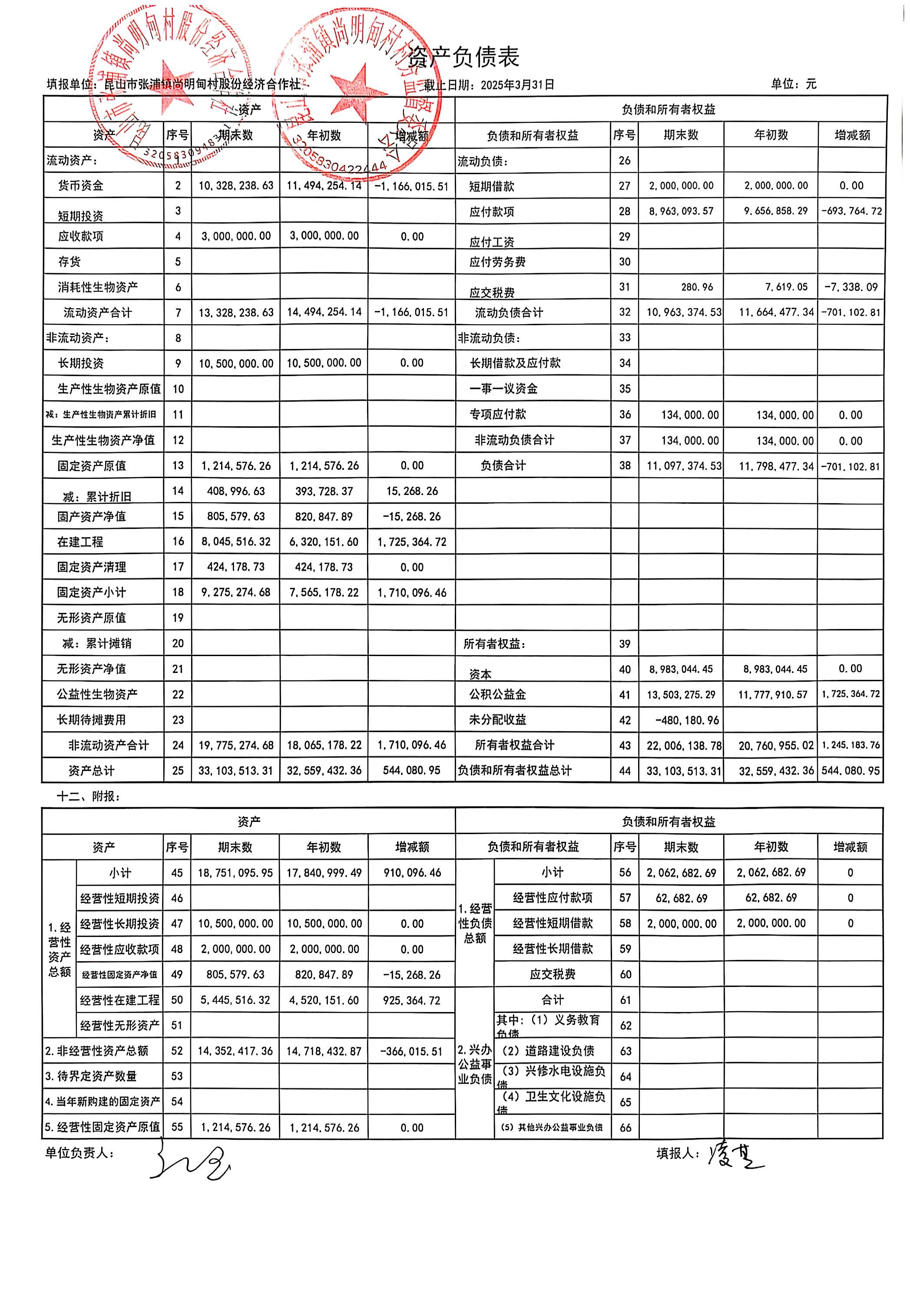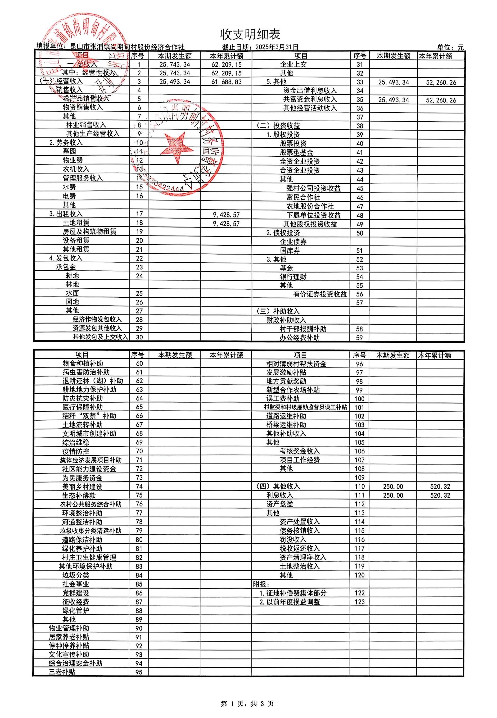 尚明甸村股份经济合作社2025年3月财务公开
