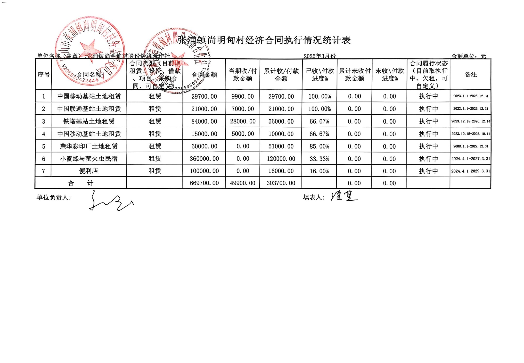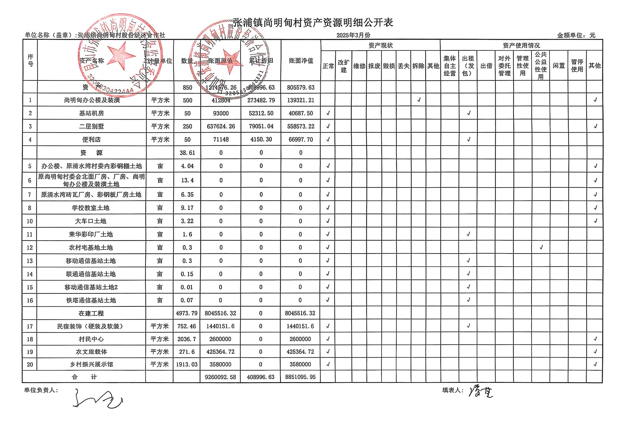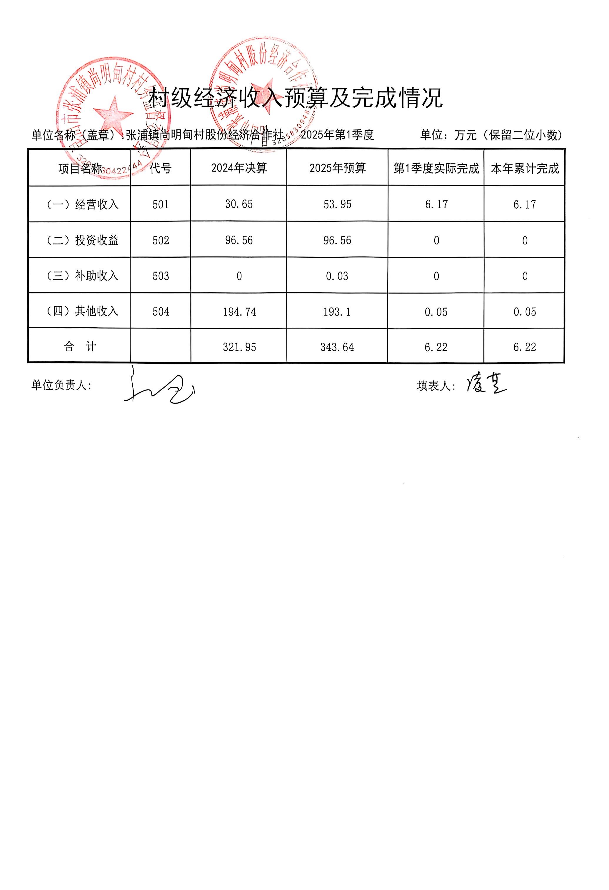尚明甸村股份经济合作社2025年3月财务公开