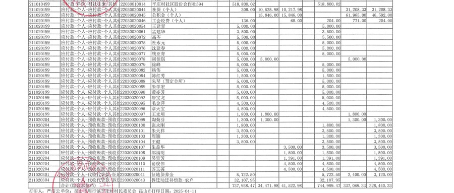 2025年第一季度(3月)平庄村村委会财务公开(定期公开)