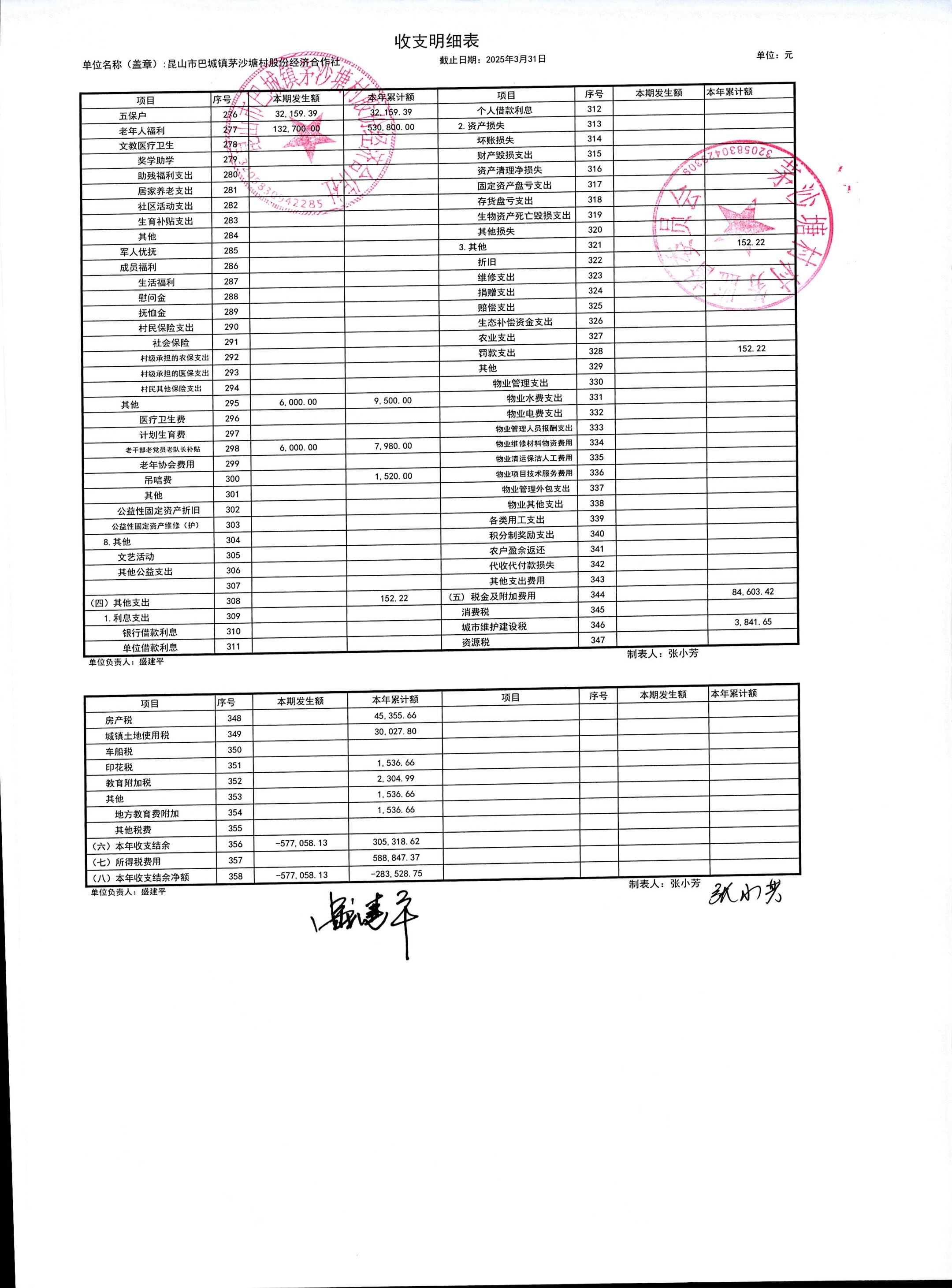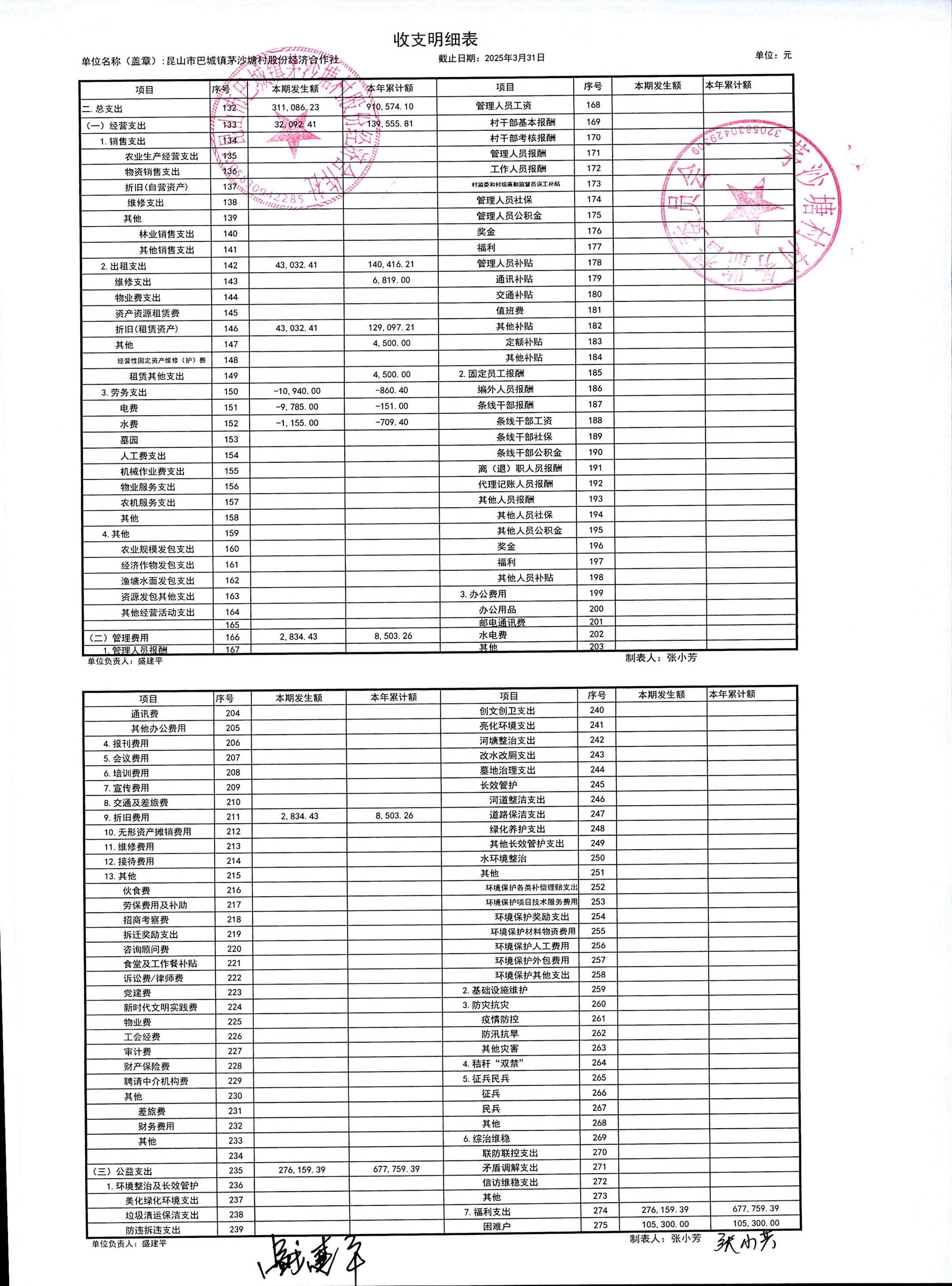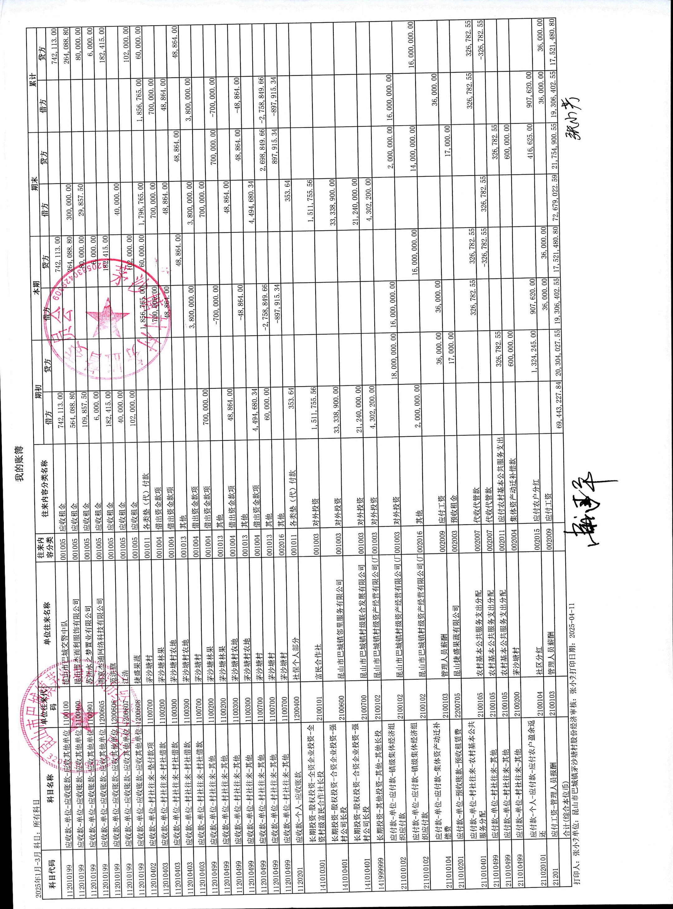 2025年4月份财务公开(股份经济合作社)