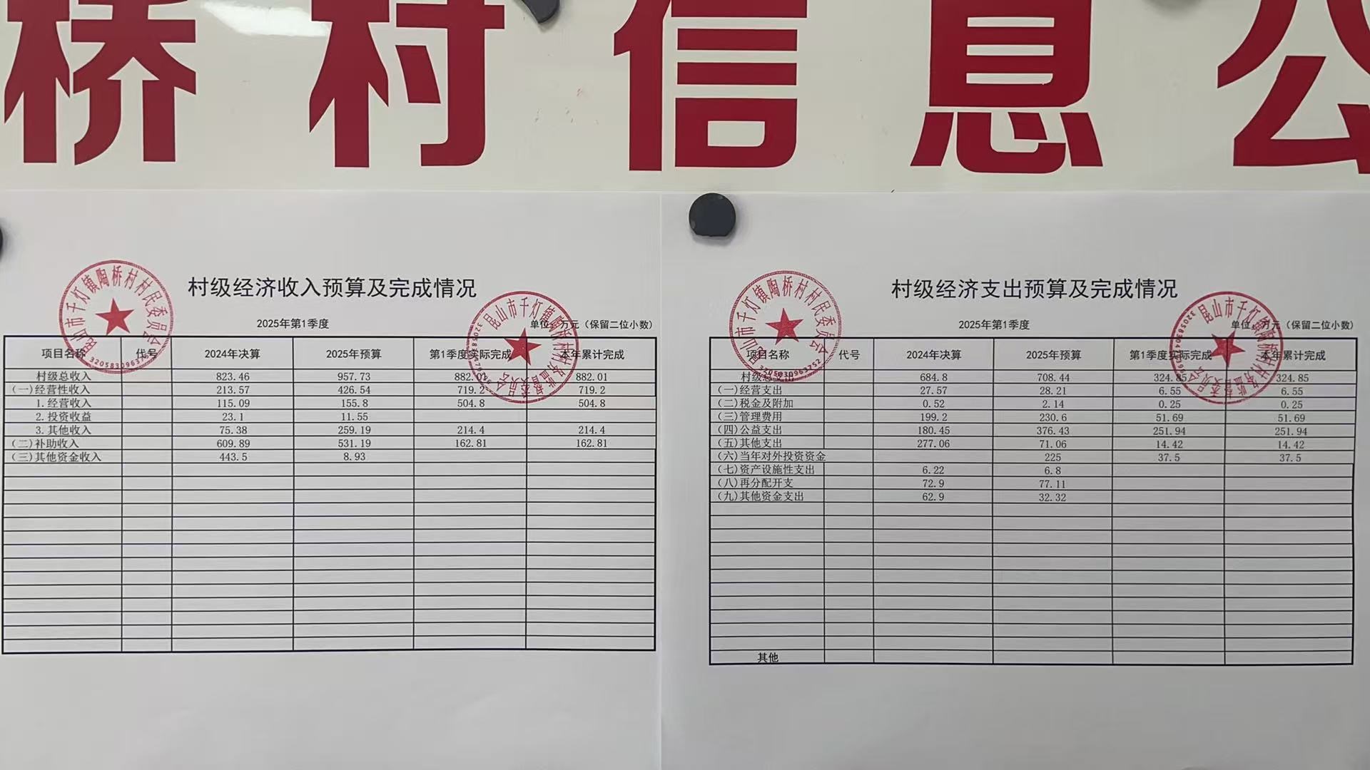 2025年陶桥村第一季度村级收支预算完成情况公示