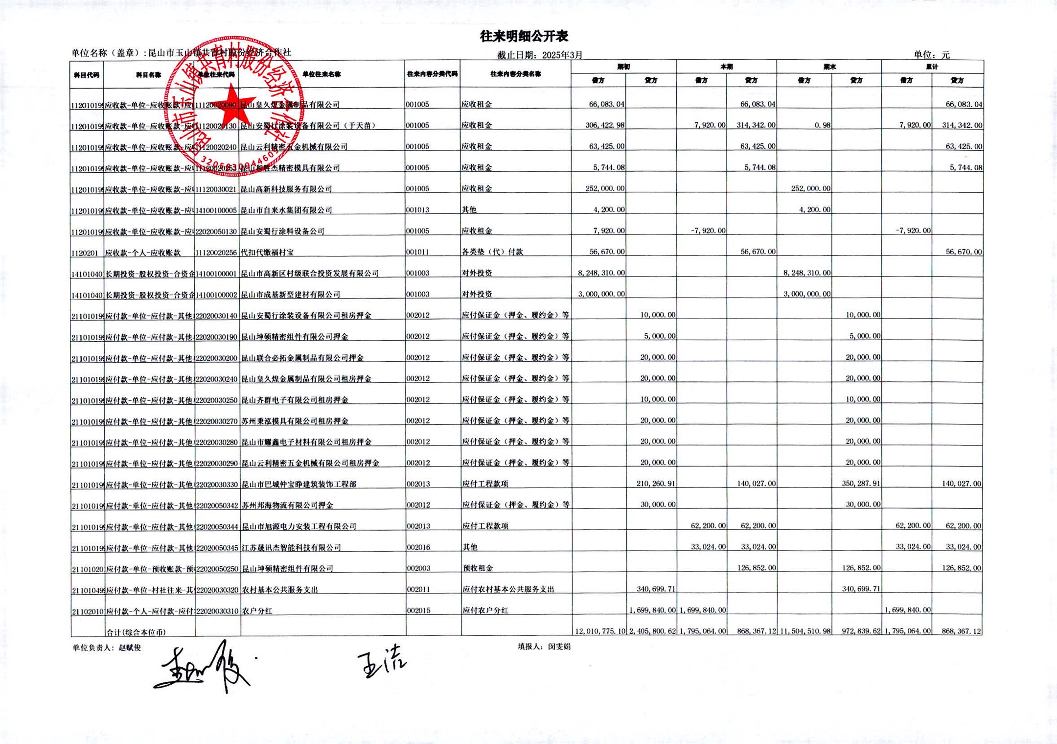 2025年昆山市共青村股份合作社4月来往明细公开表