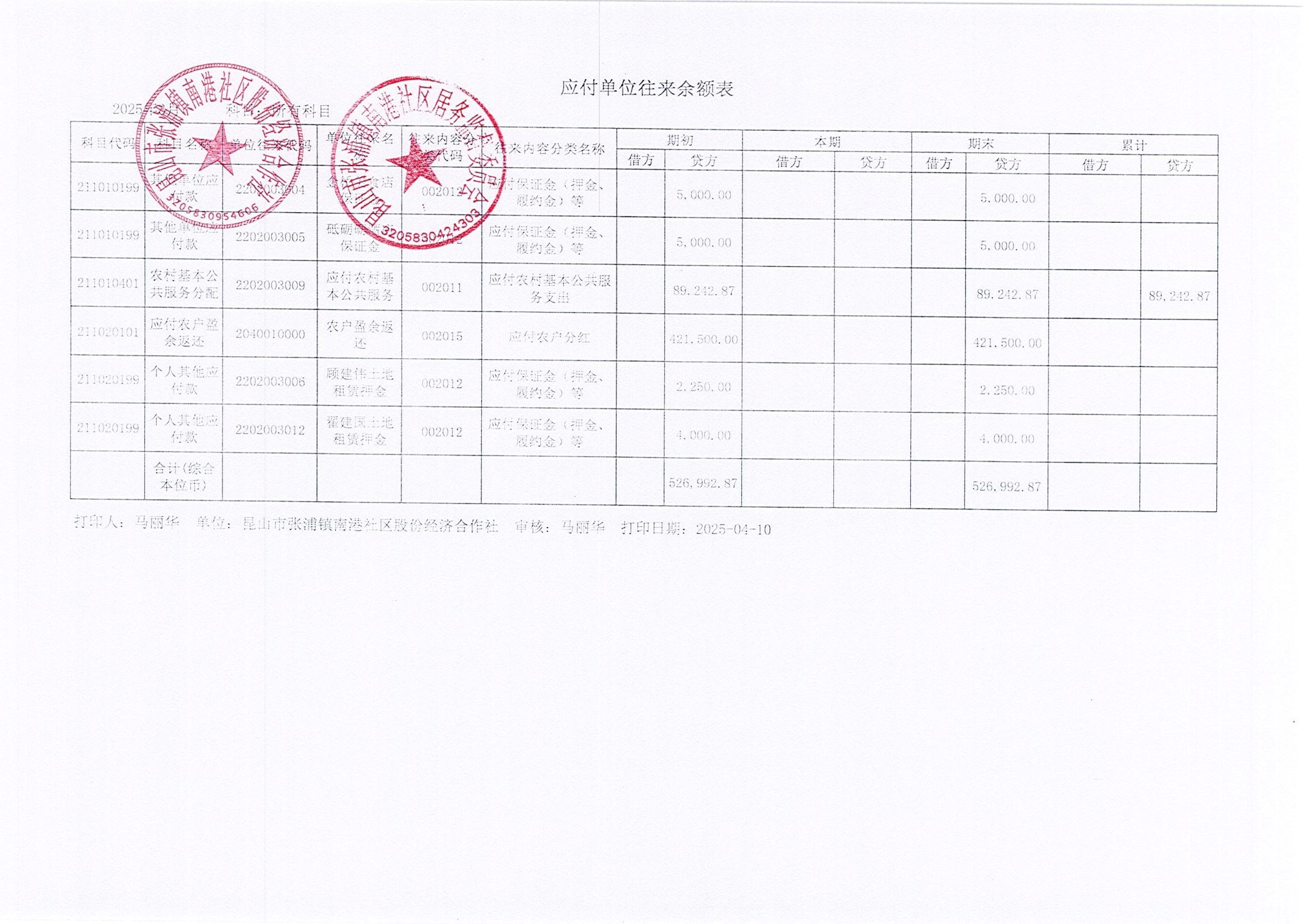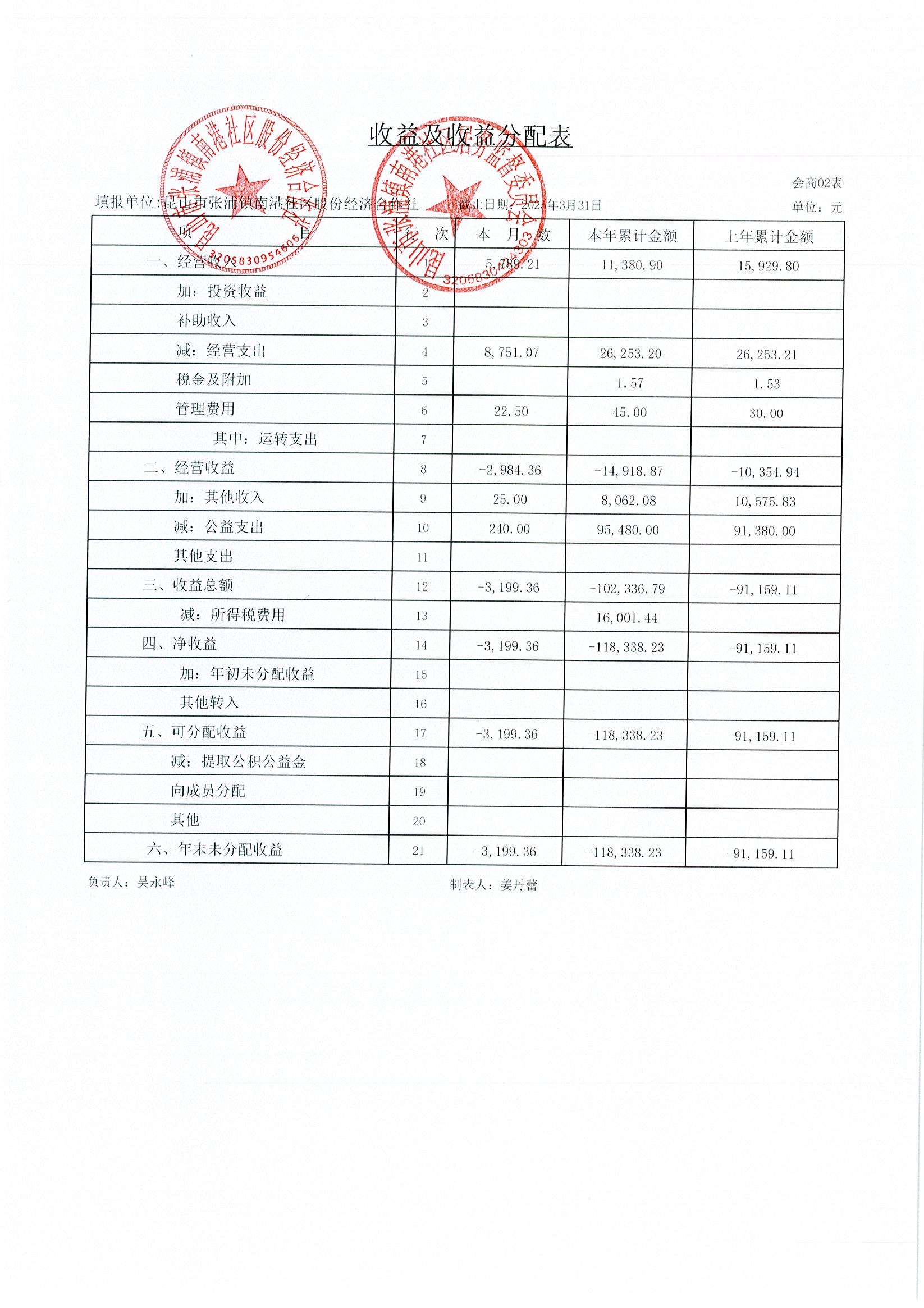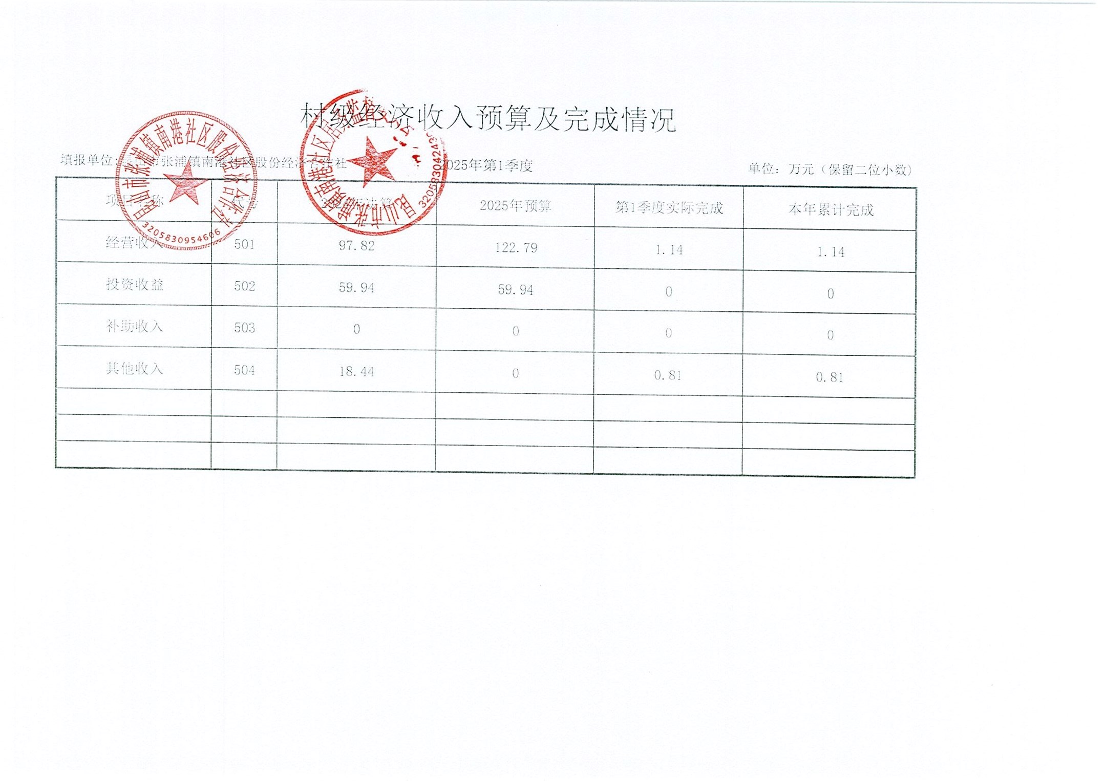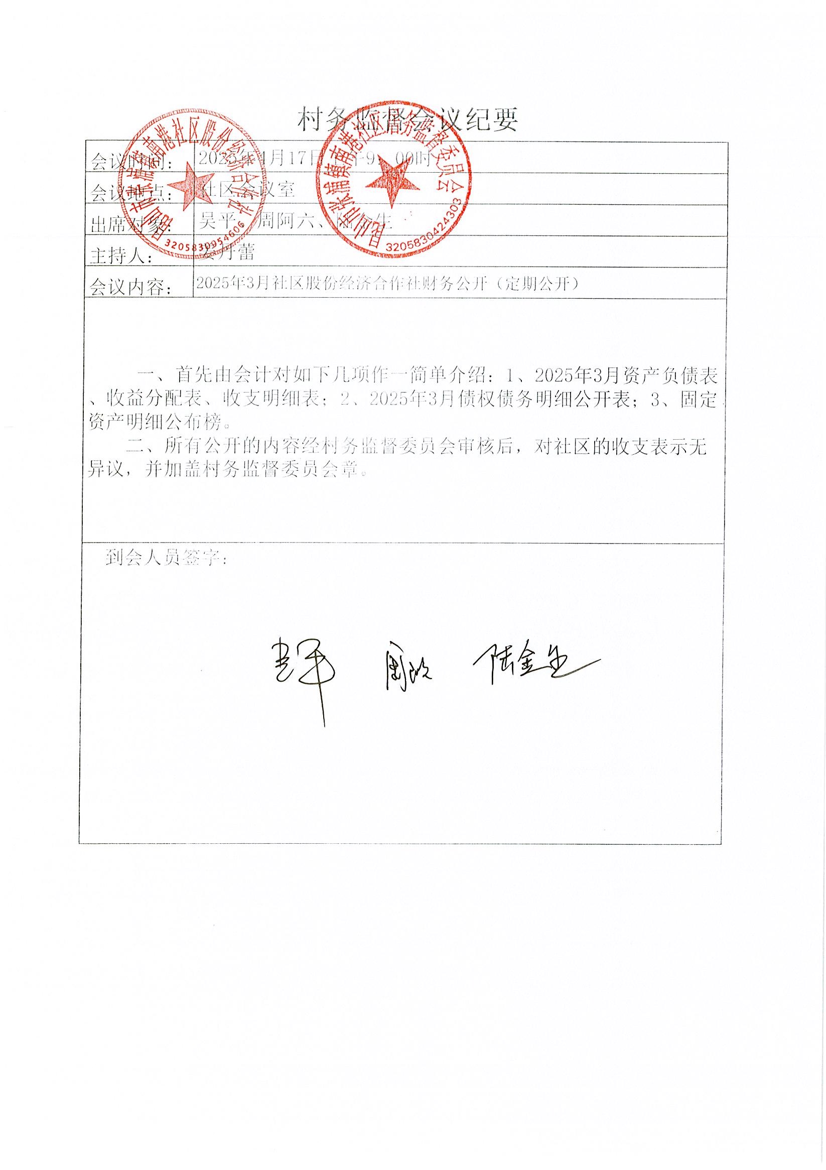 南港社区股份经济合作社2025年3月财务公开(定期公开)