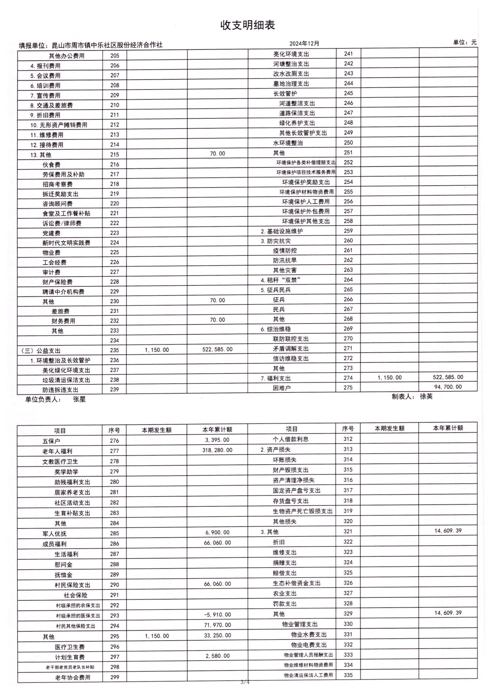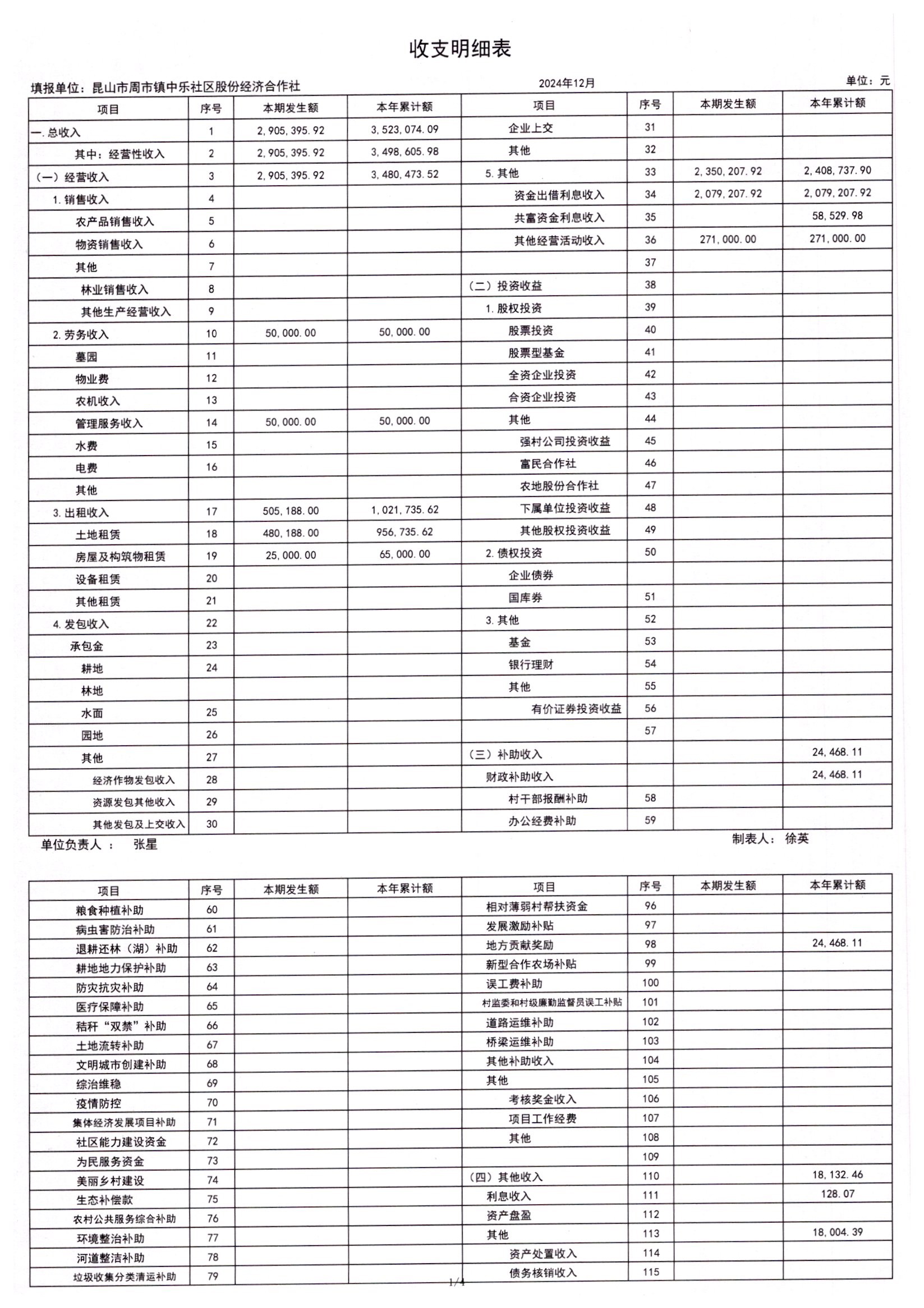2024年12月合作社财务公开