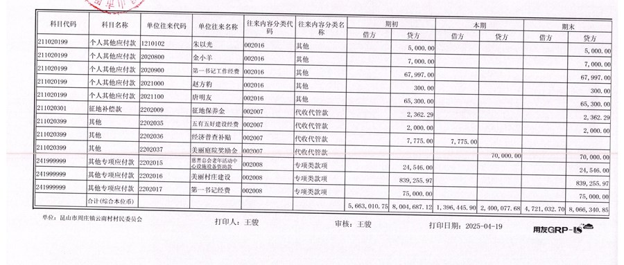 云南村2025年3月民主理财(村委会)2