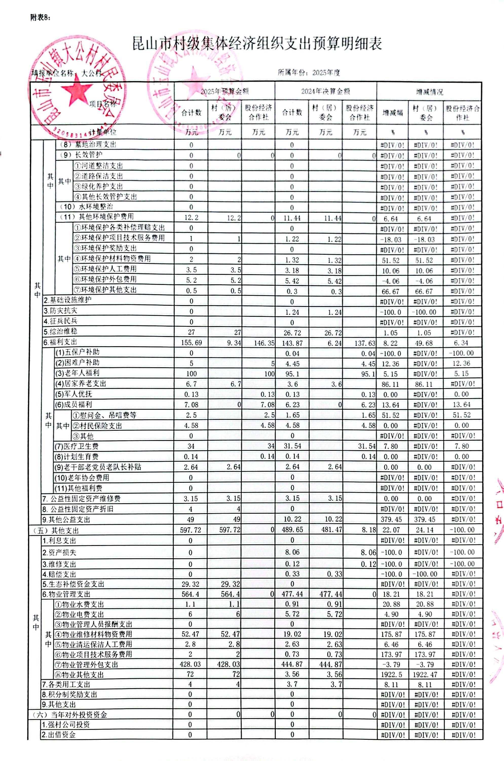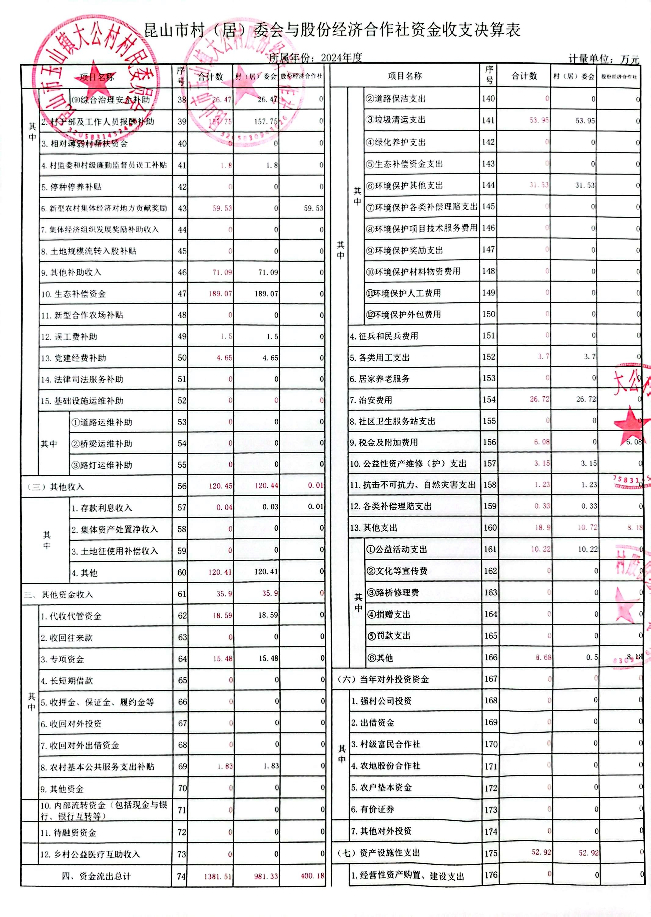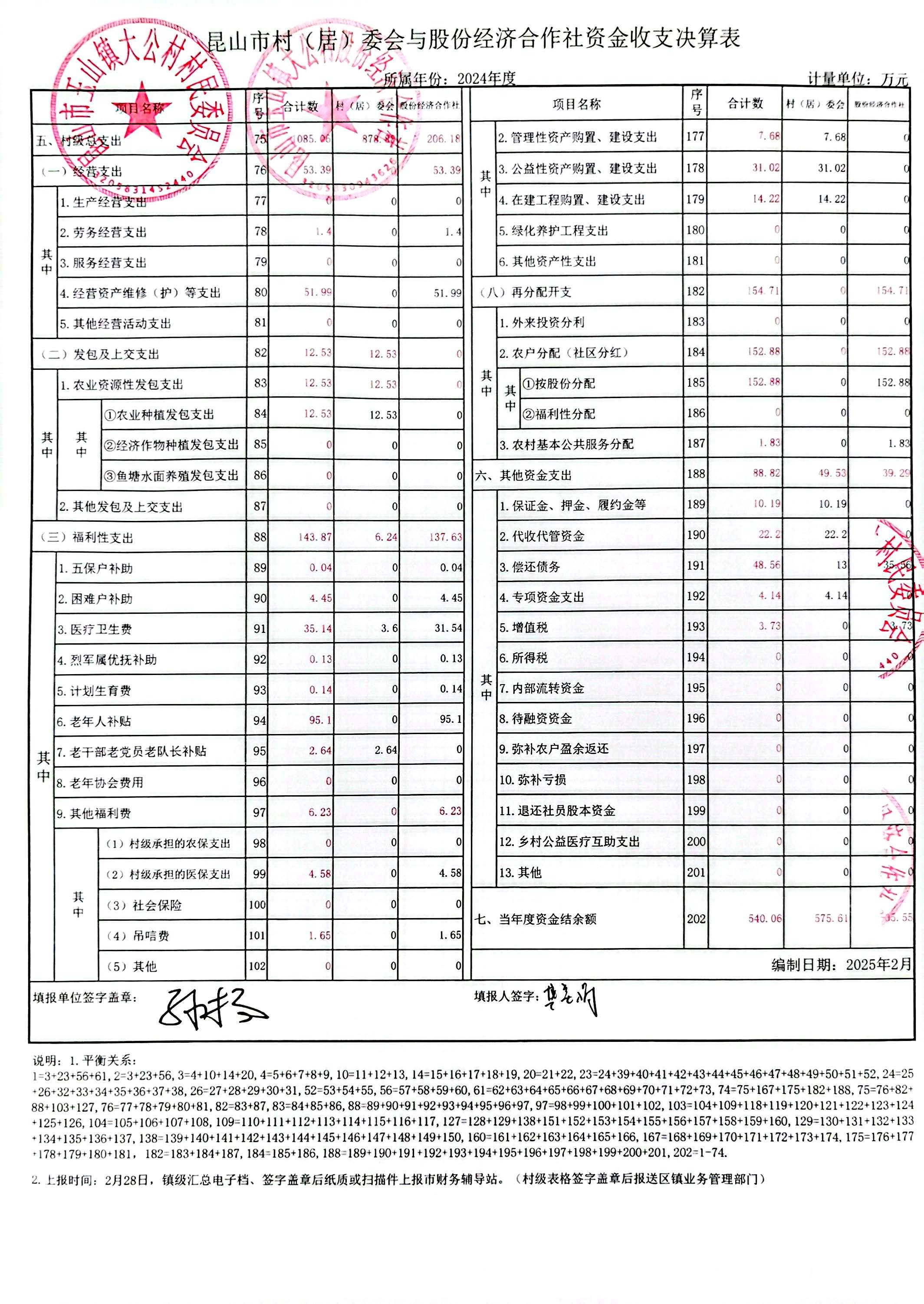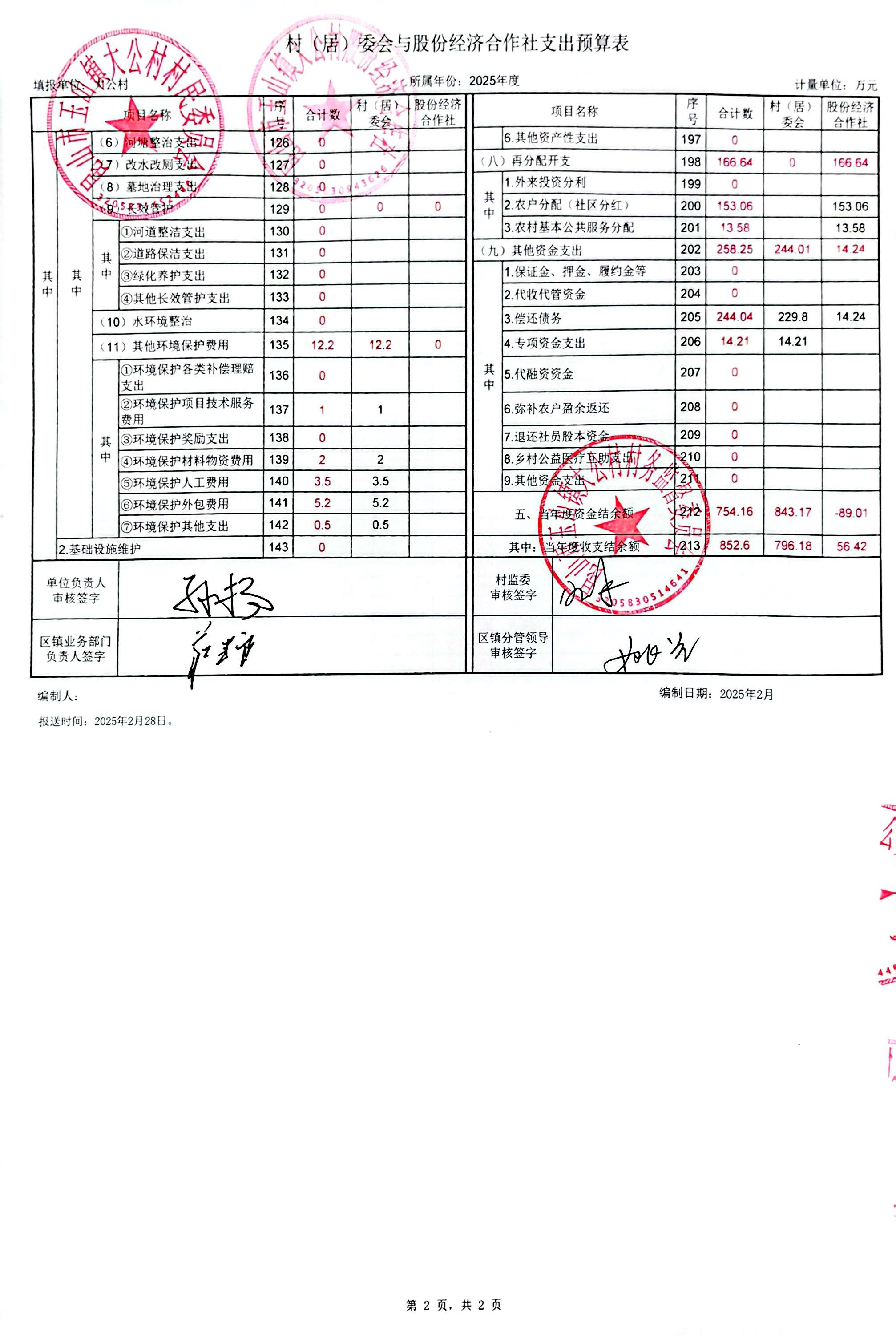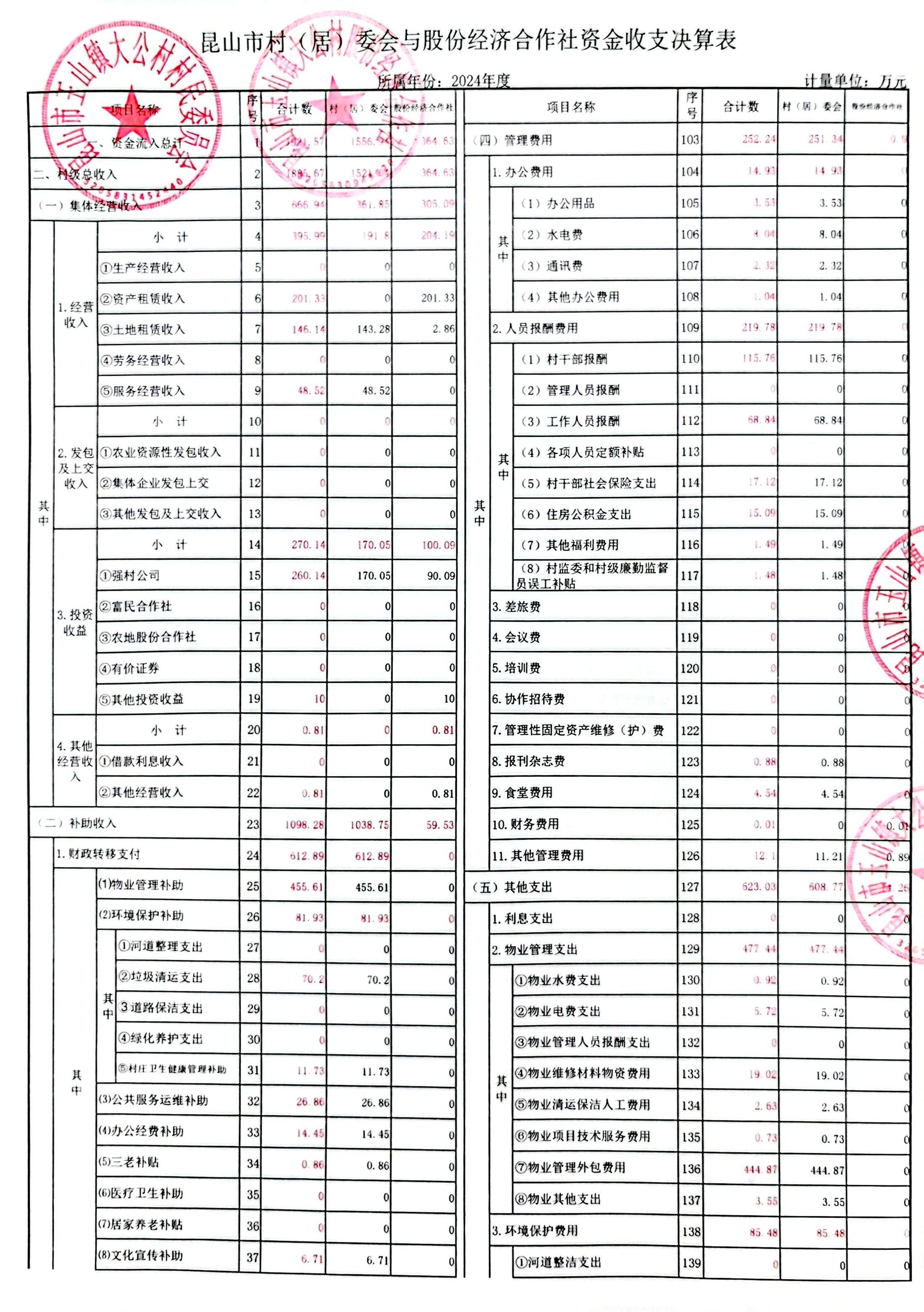 2024年大公村及合作社收支决算和2025年大公村及合作社收支预算