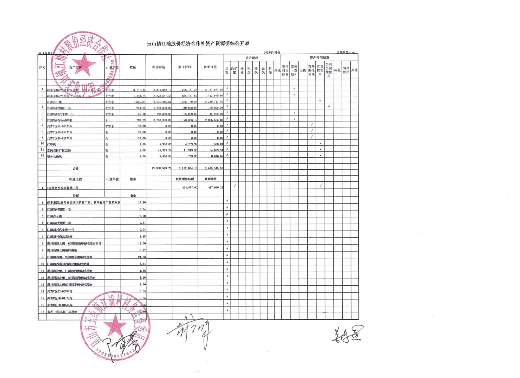 2025年5月份江浦村股份经济合作社财务公开-----资产资源明细公开表(4月)