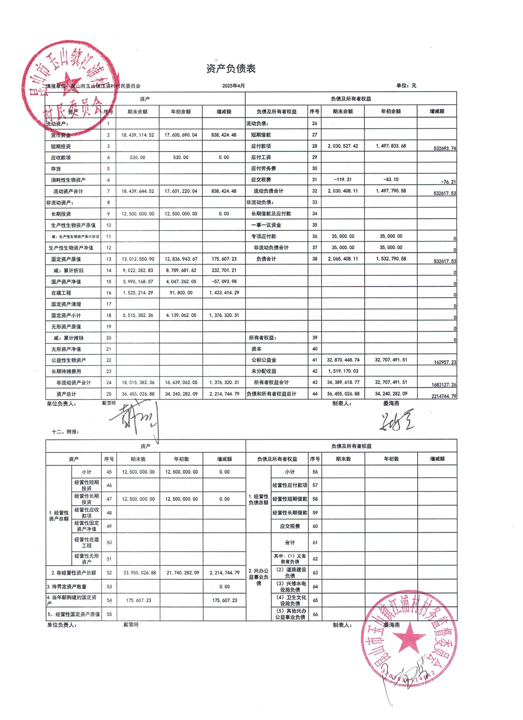2025年5月份江浦村财务公开-----资产负债表(4月)