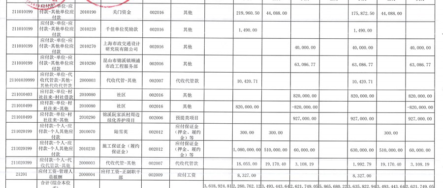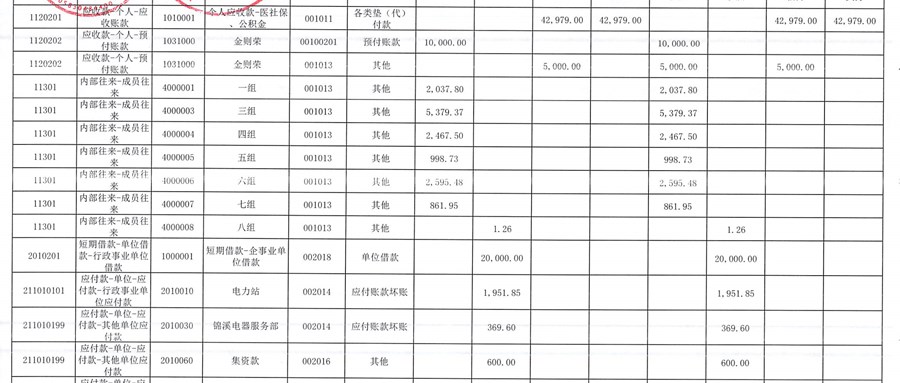 2025年4月份往来明细公开表(村委会)