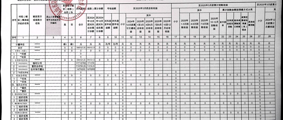 2025年第一季度农村集体资产经济合同收缴进度调查表